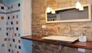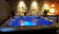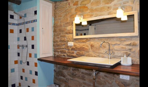On the ground floor, a small ‘separate’ apartment. There is an entrance through a large, beautiful double door - or directly from the street. Here is a double room with a large and very beautiful en suite bathroom. Next door, there is also a kitchen. On the same level, there is a jacuzzi area with an additional bath.