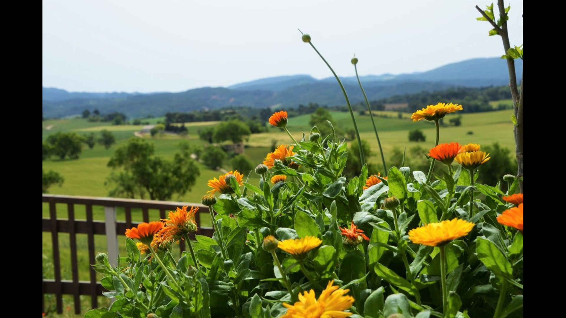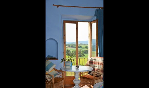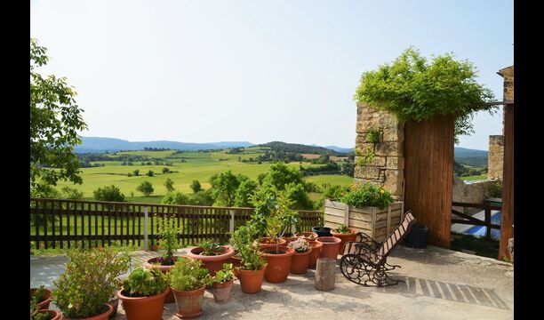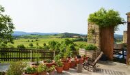 Another fantastic open terrace is located on one of the upper floors, which offers a stunning view of the surrounding countryside. There is also a seating area and sun loungers so you can enjoy both the view and the sun.