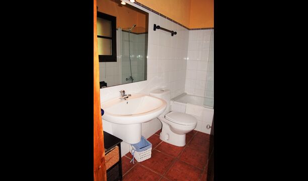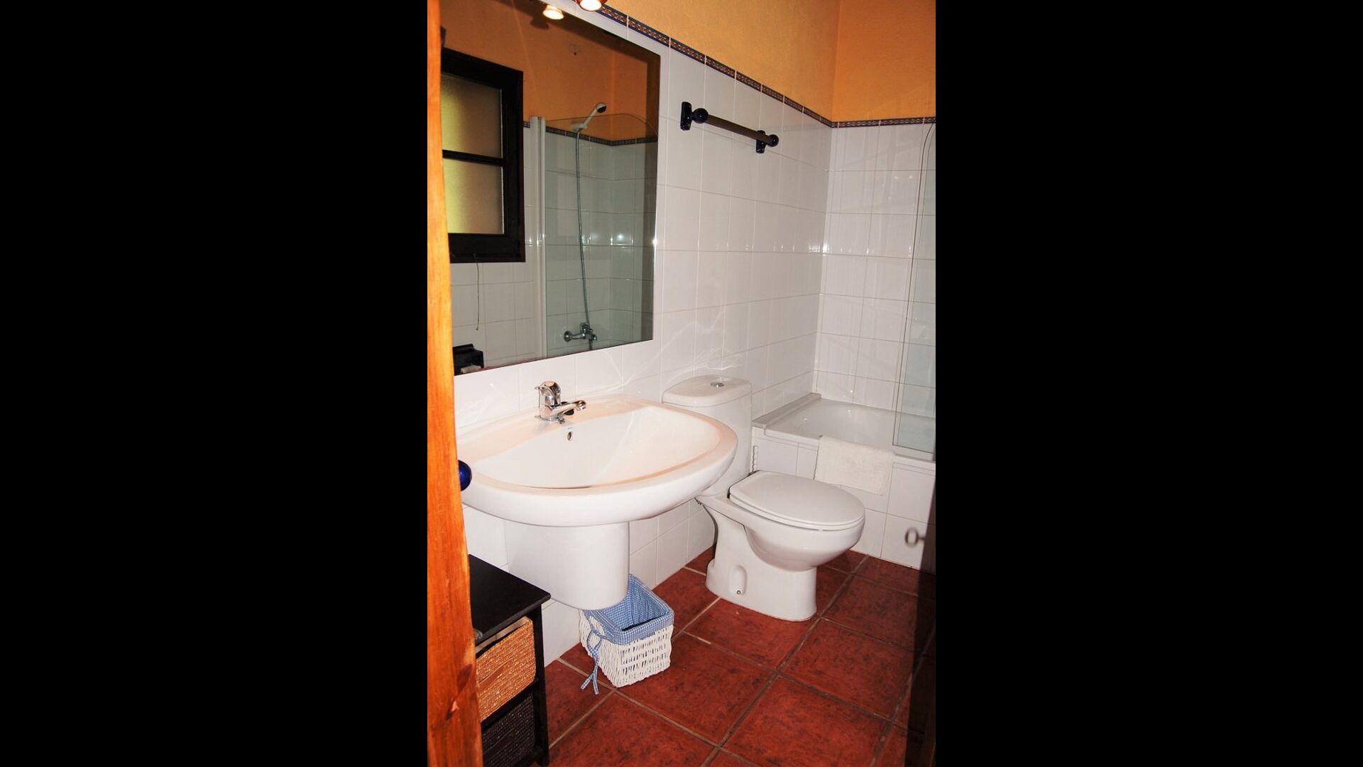 As the house has 4 double bedrooms and two bathrooms, it is perfect for two or three families, who like to spend their holiday together. The house has a fully equipped kitchen a spacious common area for dining and with a sofa corner to relax. It is equipped with TV and DVD.