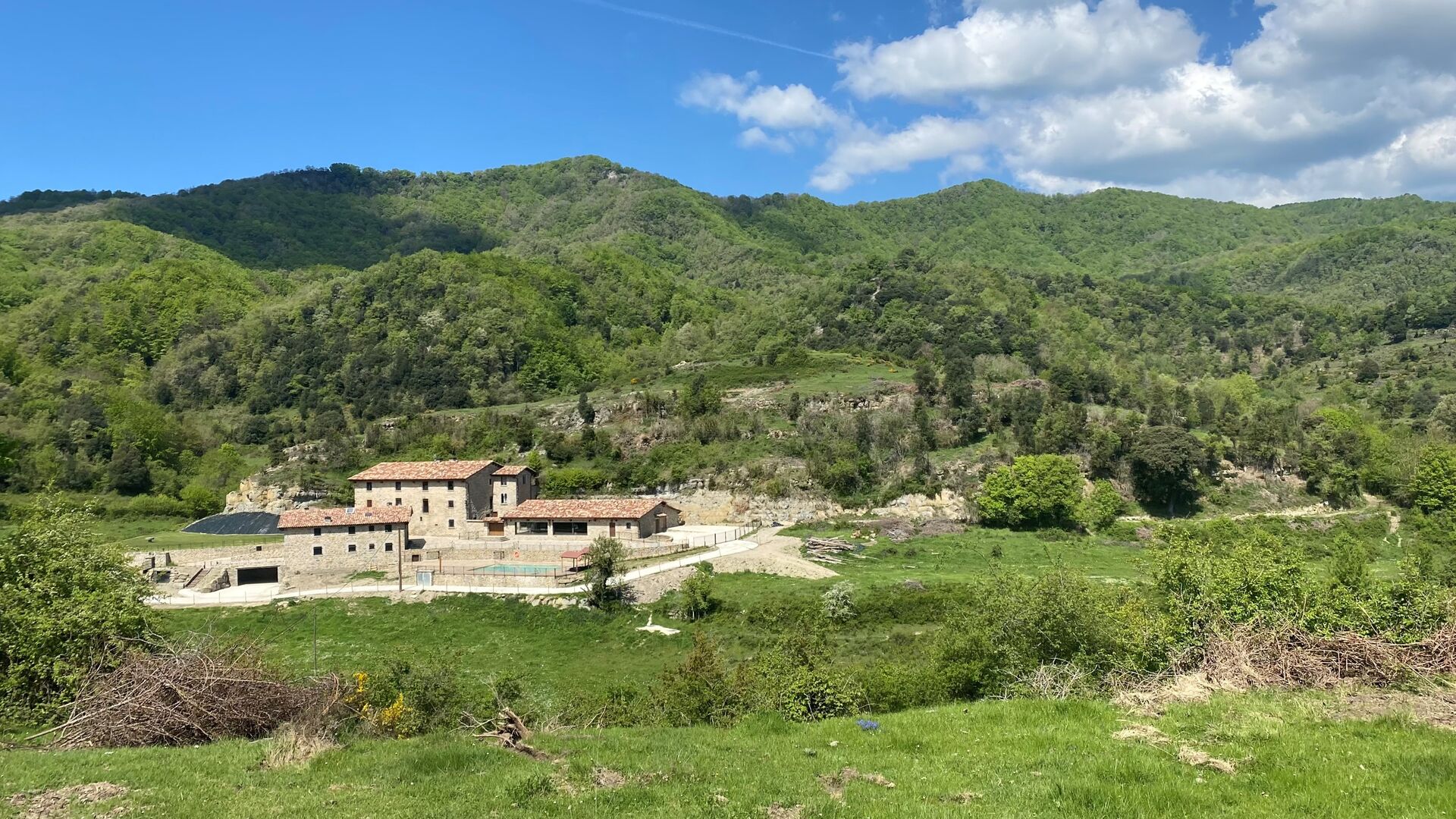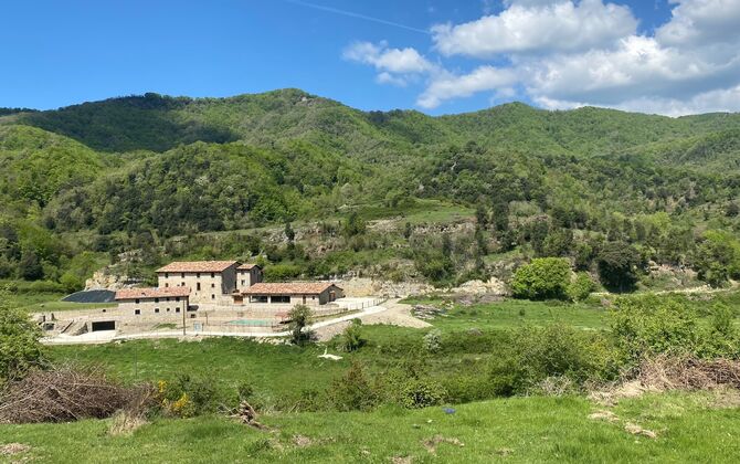 Can de Batiña is a beautiful limestone house in the mountains over Olot. Situated in tranquil nature, the only noise you might come across are the peeping birds, the little stream running below the house, or the cow bells from Eva's (the owner's) cows wandering around up the hill.