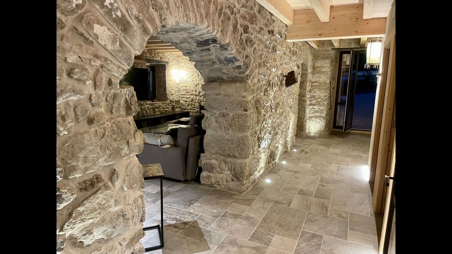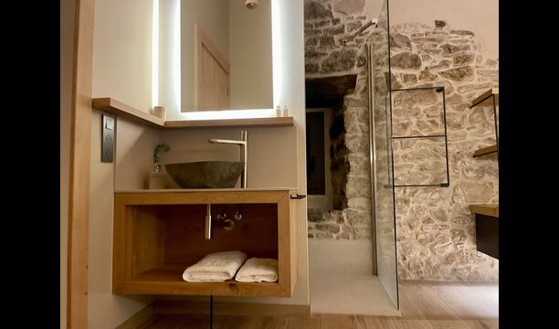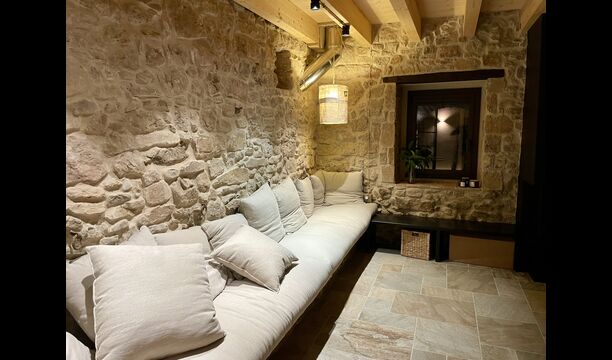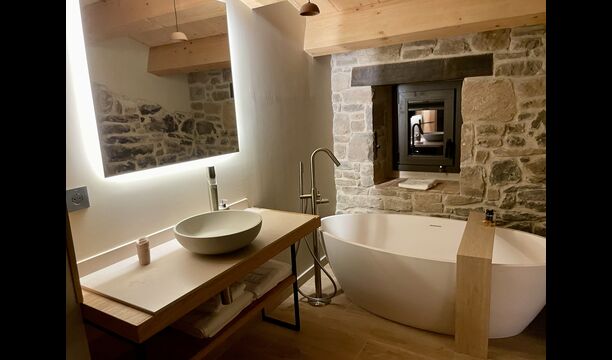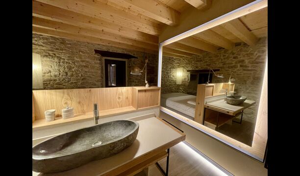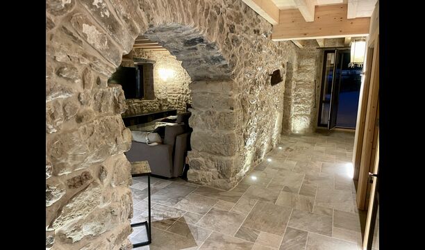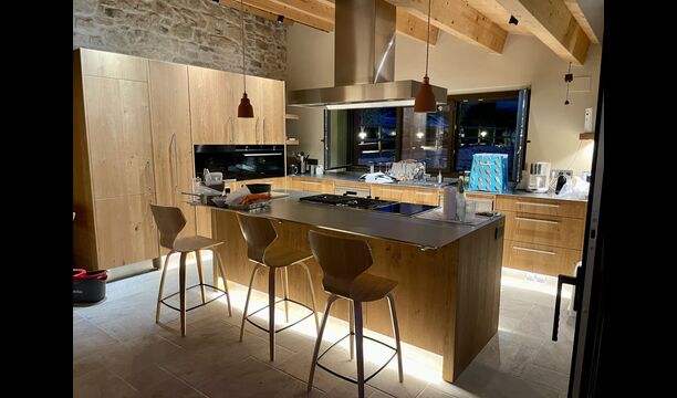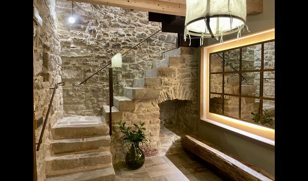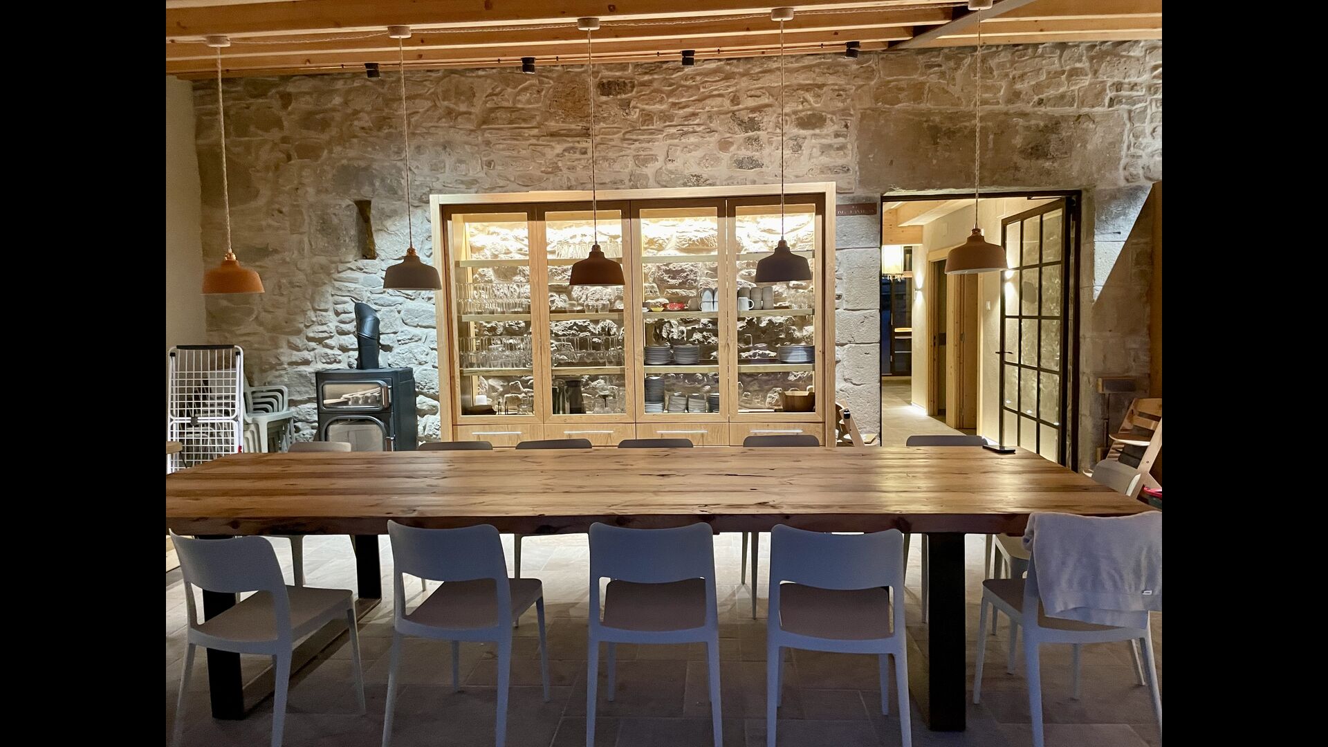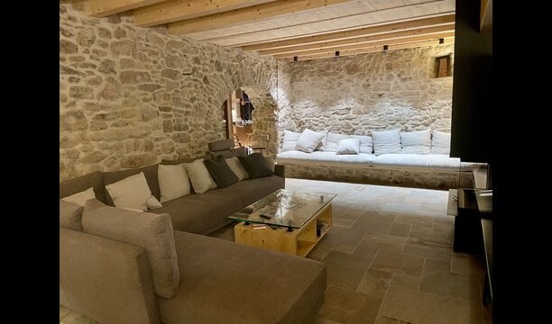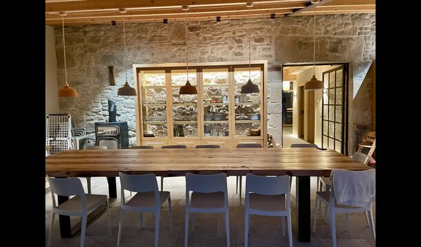 The house comfortably accommodates large groups of up to around 20 guests and offers six generous bedrooms, several bathrooms, a fully equipped kitchen, and inviting communal areas designed for shared meals and relaxed evenings. Central heating, internet access, and thoughtful interiors ensure comfort throughout the year.