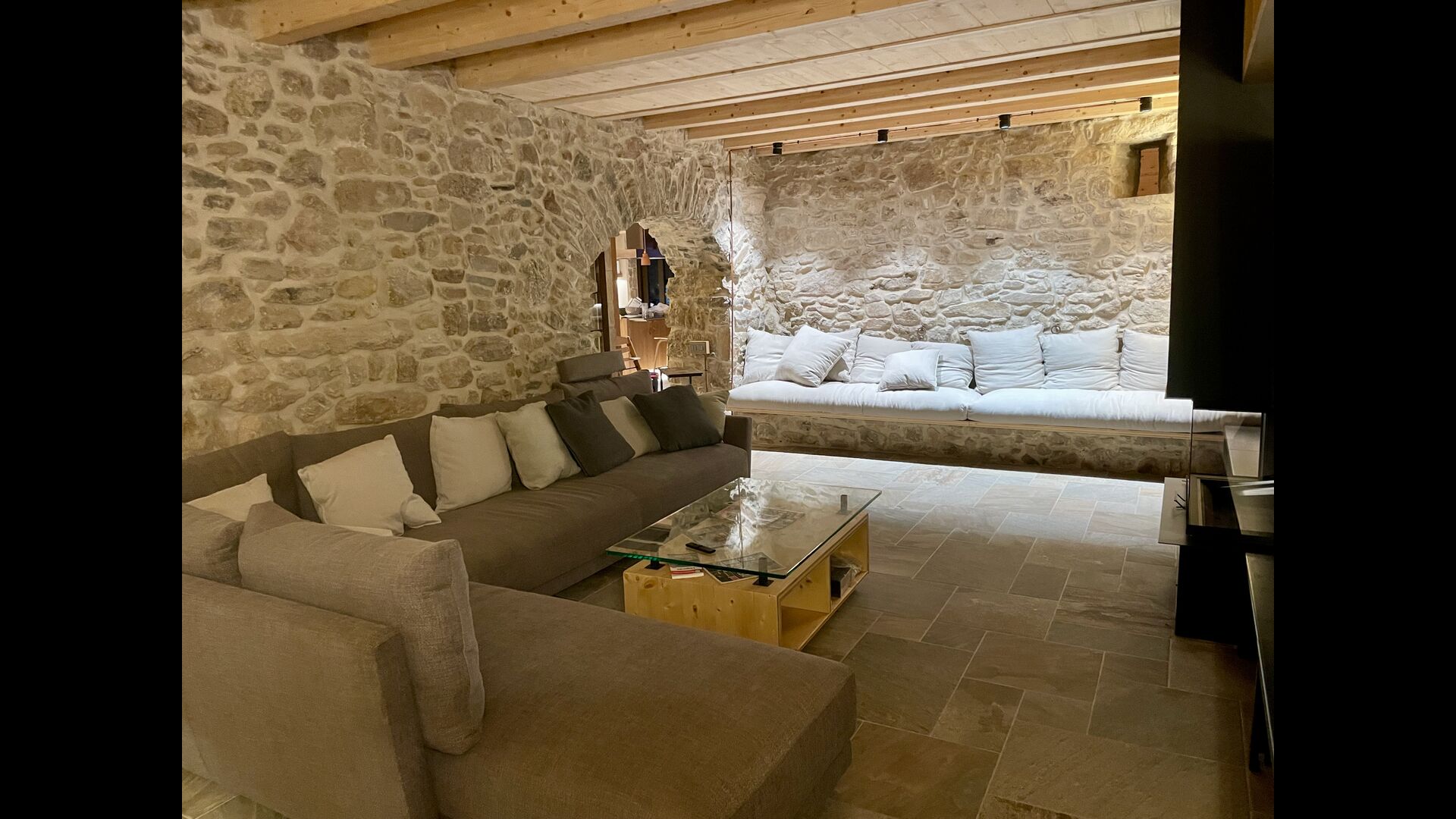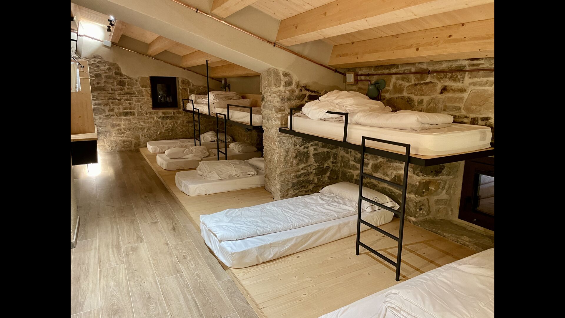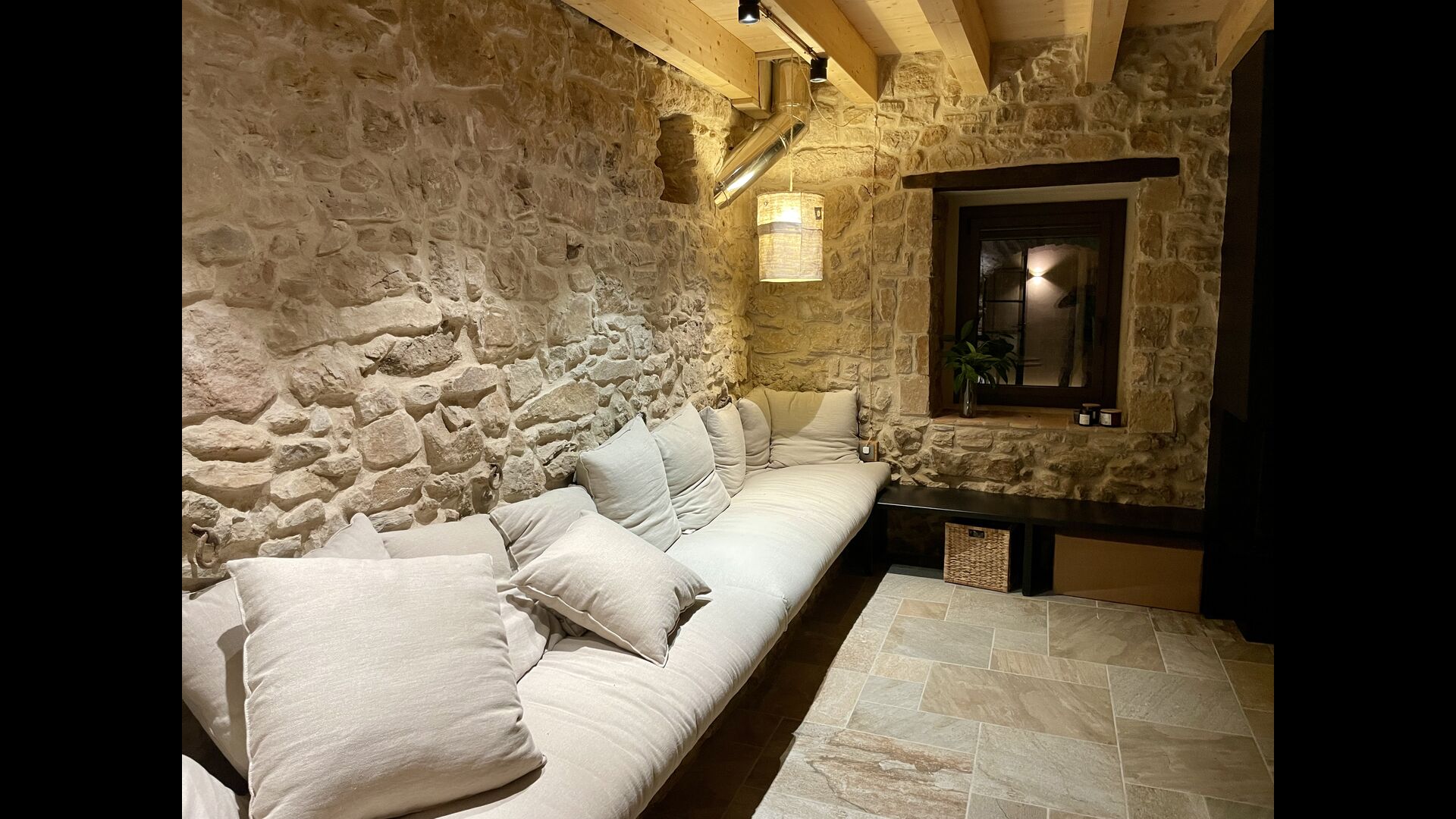 The house comfortably accommodates large groups of up to around 20 guests and offers six generous bedrooms, several bathrooms, a fully equipped kitchen, and inviting communal areas designed for shared meals and relaxed evenings. Central heating, internet access, and thoughtful interiors ensure comfort throughout the year.