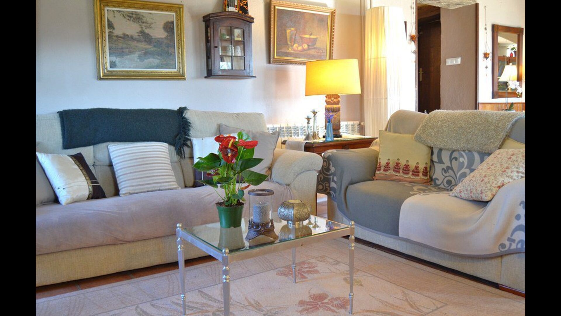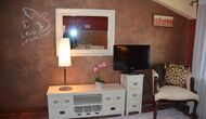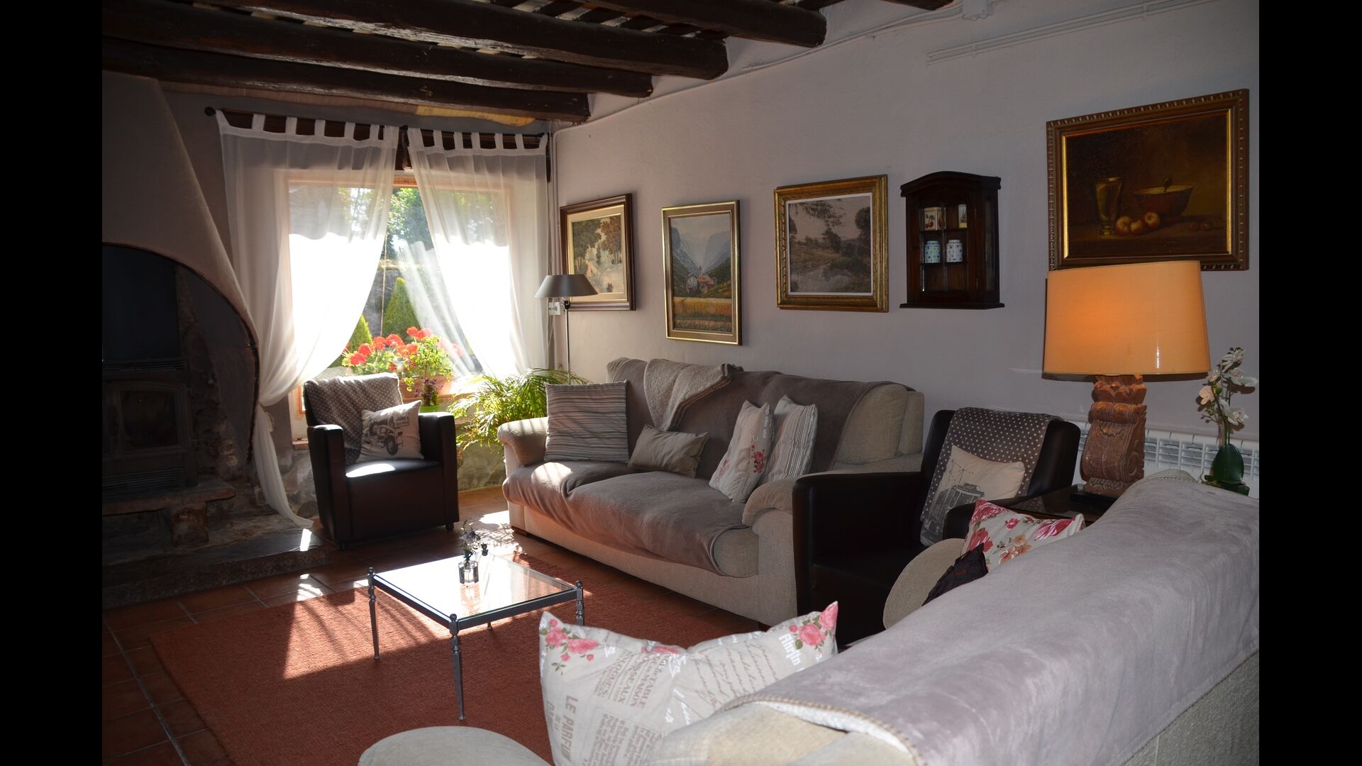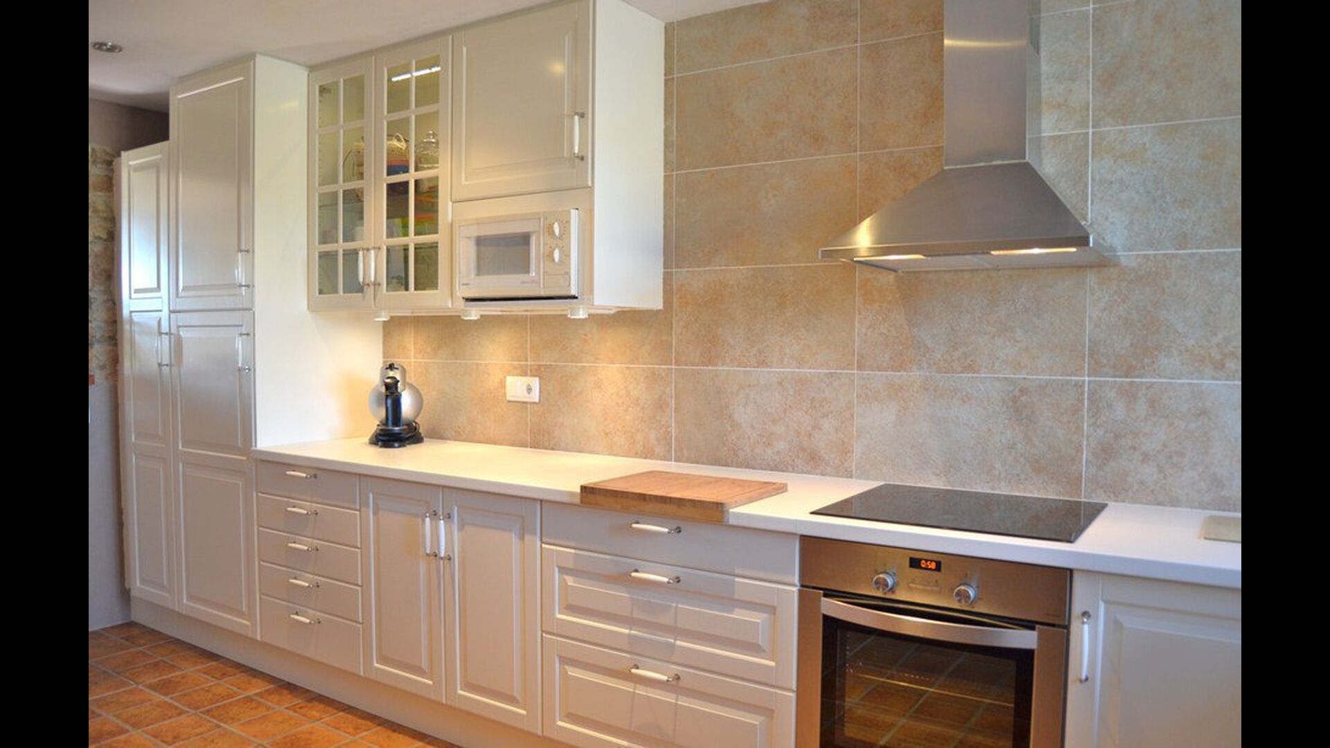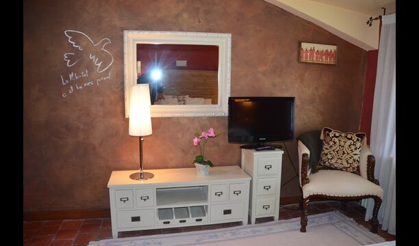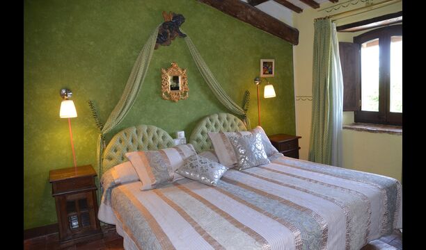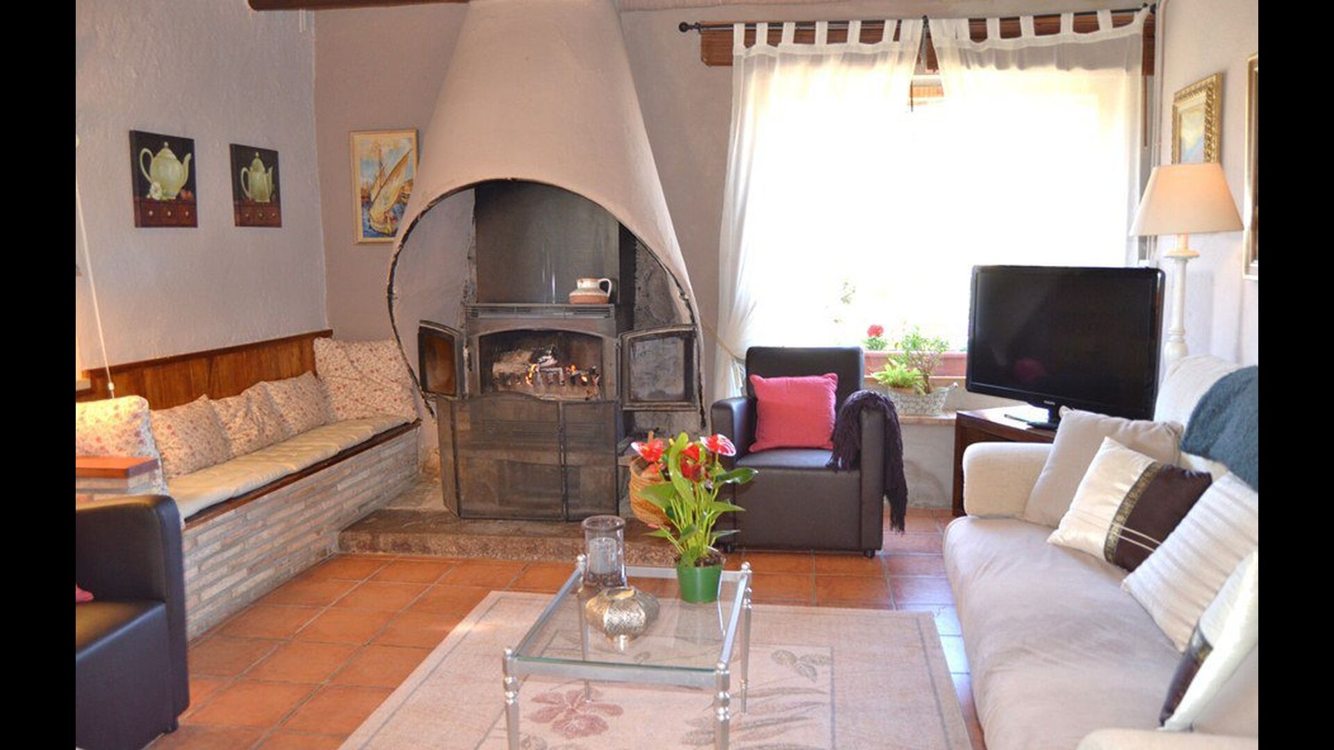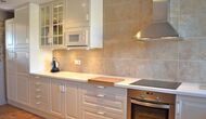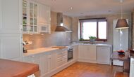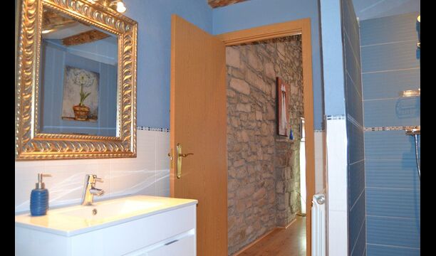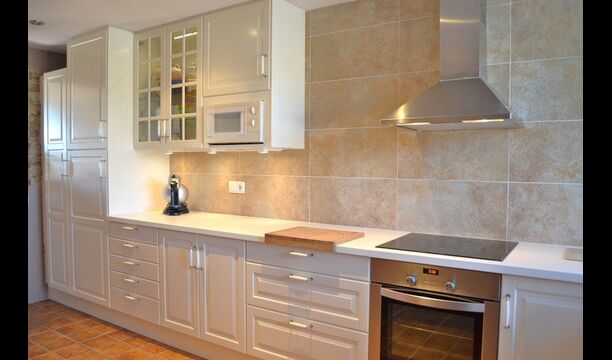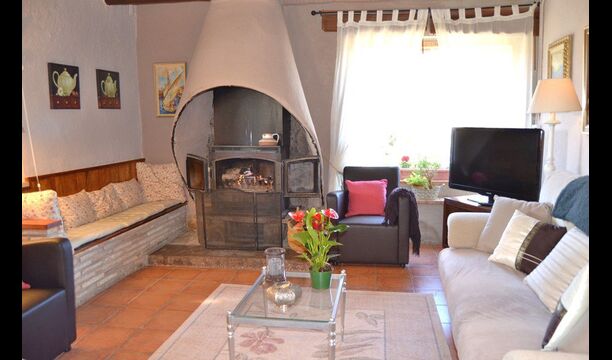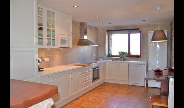 The beautiful living room with sofas and a fireplace is an extension of the house dining area that is decorated with the good traditional Spanish dining table. The kitchen is really beautiful and really spacious so it has plenty of space for the large holiday group. It has all modern amenities. These include refrigerator, freezer, good large oven, microwave, dishwasher, espresso and gas stove. The house has fast WI-FI, DVD and music system.