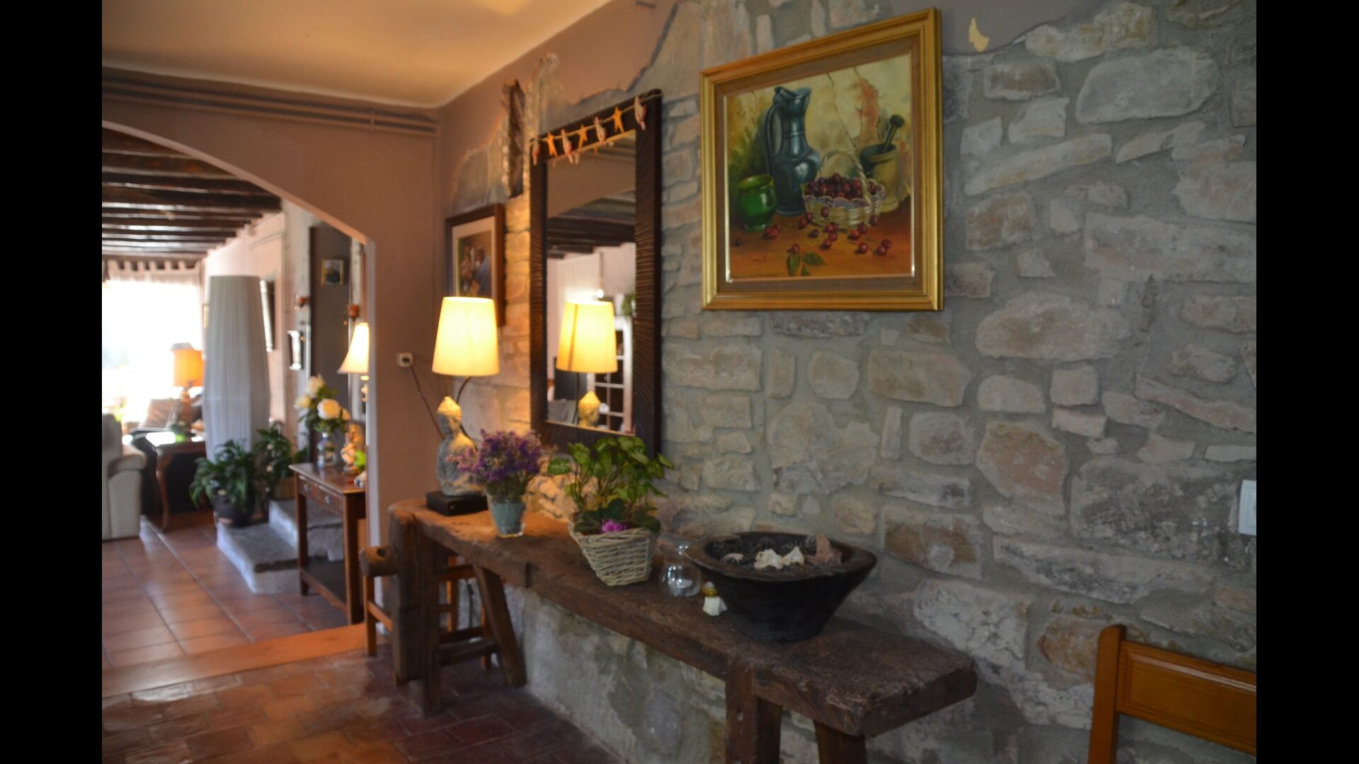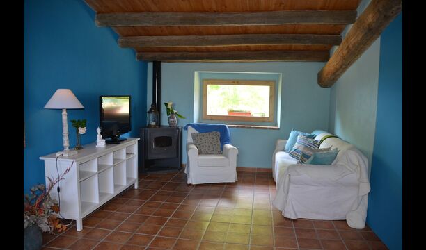 Can Salvatore was originally a gigantic main house (In Spanish a Casa Pairal), where it ,in old days, had a myriad of related houses out in the neighboring countryside. On Sunday up to 40 farm workers went to the main house, where they went to church and Sunday dinner was served. Today, there are arranged two holiday homes on the site and the three rear houses (not visible from the cottages) inhabited by the friendly catalan owners and their adult children. At a nearby piece of land, two cows, which is neither dairy or meat cattle, but bought for the holiday group's children, so they can enjoy themselves by visiting them.