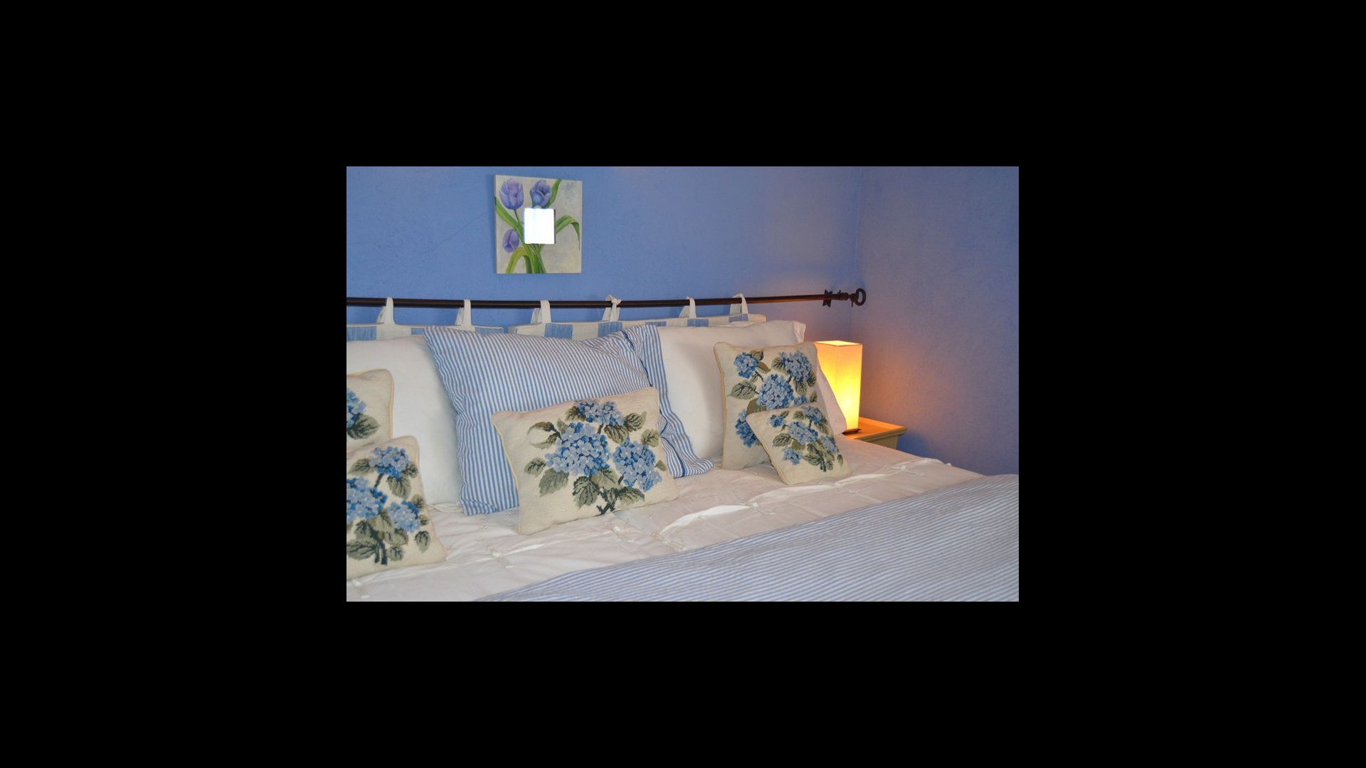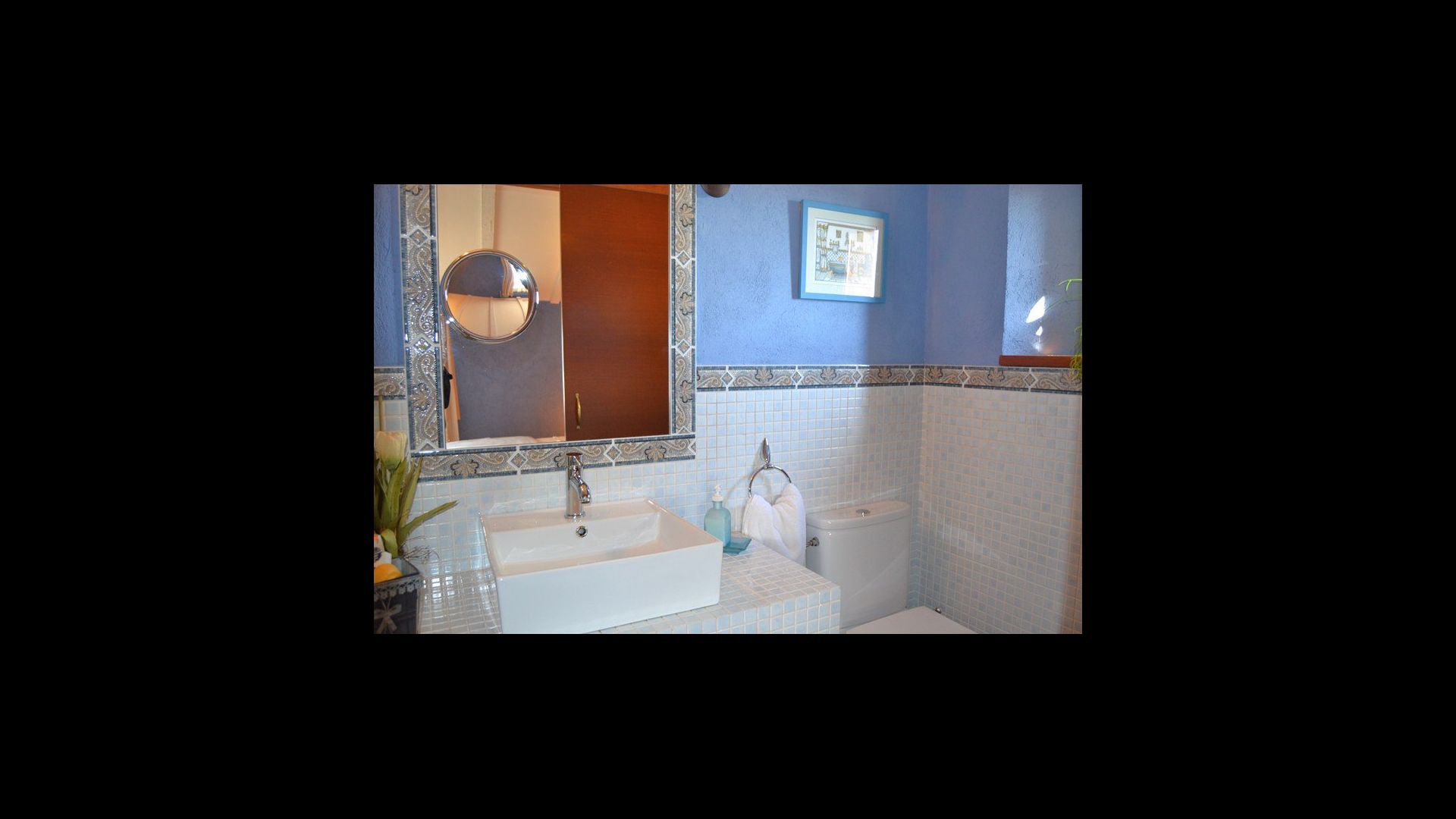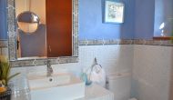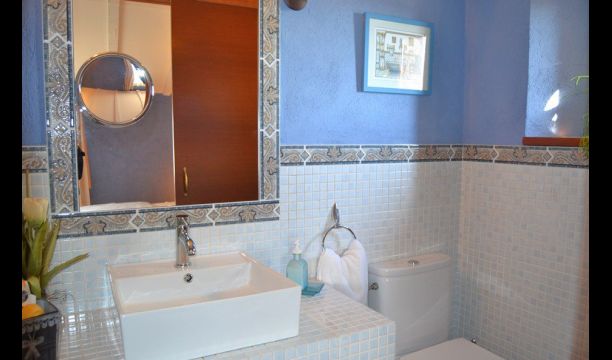 The villa is lovingly decorated and it has 5 bedrooms, which are all decorated with extraordinary materials and they have really gone the extra mile to make the rooms cozy. All 5 bedrooms have TV and as there are 5 bathrooms each room has their own. One of the bedrooms is a very nice suite with a smaller corresponding lounge area. Each room is decorated in a unique color, making each room very personal and each room has its very own charm.