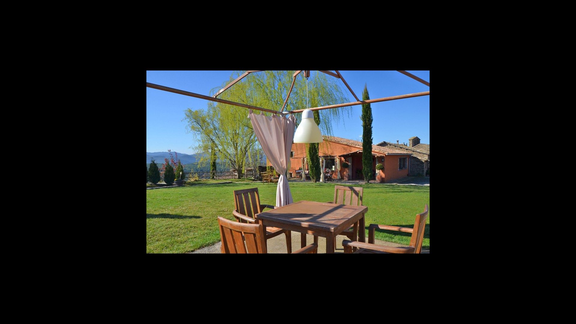 Can Salvatore - Vermela is a 250m2 house situated in beautiful surroundings on the top of a hill. On the ground lies a second holiday home, each with its own private garden, swimming pool, terraces and BBQ area. The only thing that the two holiday homes share is a playground which also has a table tennis. The location in the very heart of Catalonia is really ideal! It is 4.km. from the village Olost, 15 km. to the beautiful city of Vic, which has a fabulous market on Tuesdays and Saturdays, and there are just 75 km. to Barcelona and 100km. Costa Brava.