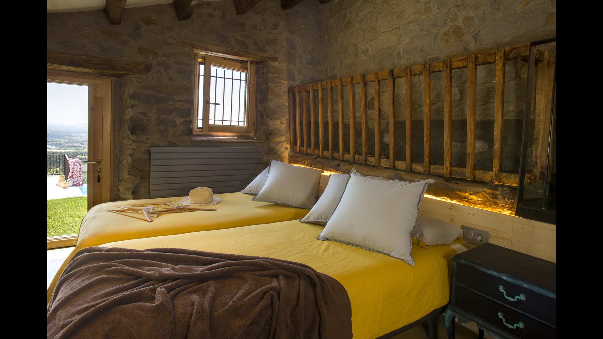 Casa Aires is a beautiful rural house with room for 8 guests. The lovely home is surrounded by forest, and is the ideal place for a relaxing holiday. The spectacular panoramic views of Pedraforca, the plain of Vic, Montseny and Cabrerès are truly fantastic. Even more, Casa Aires is charming and authentic, as the original construction elements, such as the Catalan stone walls and wooden beams. It is also designed with sustainability criteria and is accessible to people with reduced mobility.