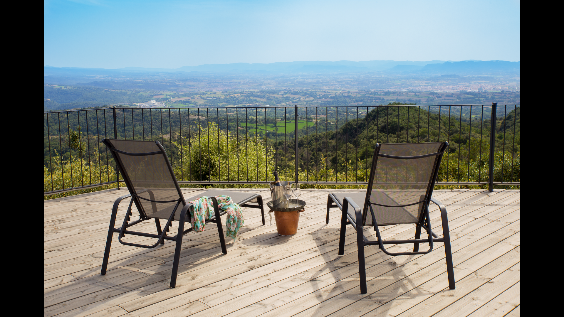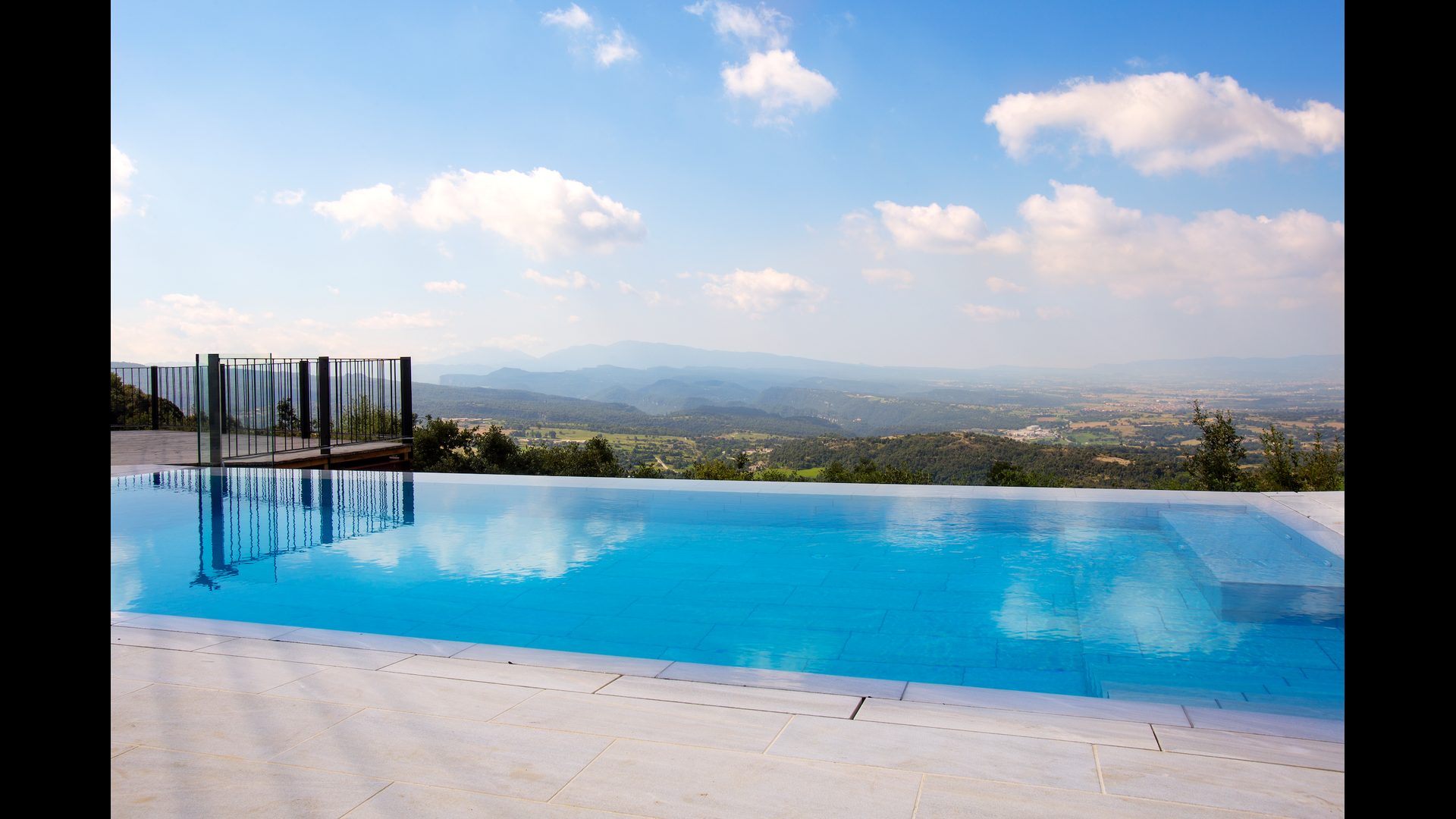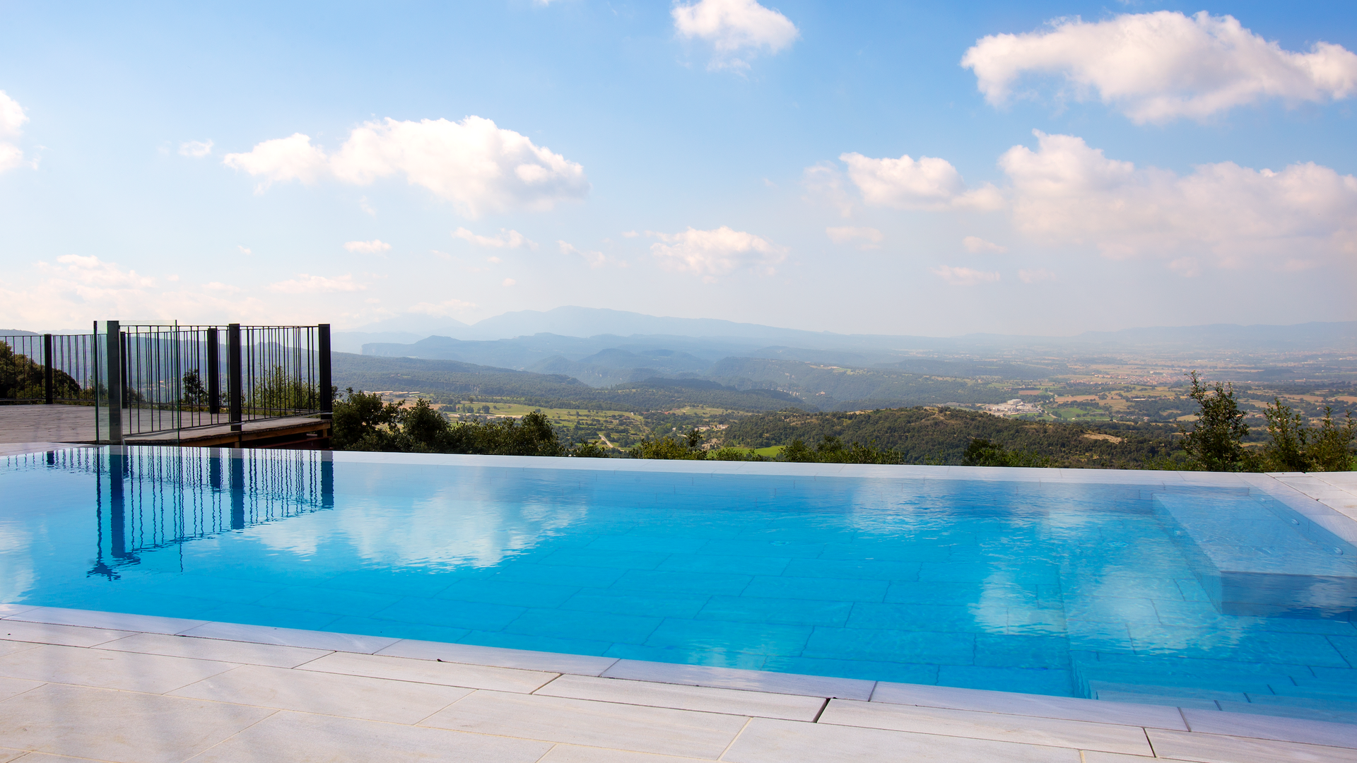 The stunning swimmingpool is located in the front of the house and has the same magnificent view, as the rest of the house. We imagine that you will probably spend the most of your holiday right here, watching the children play and swim the day away, reading books, and enjoying the Catalan sun rays. To the left of the pool you will find the BBQ area and the large terrace, where you can enjoy meals throughout the day whilst admiring the green and lush landscape.