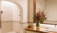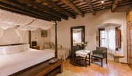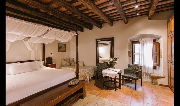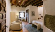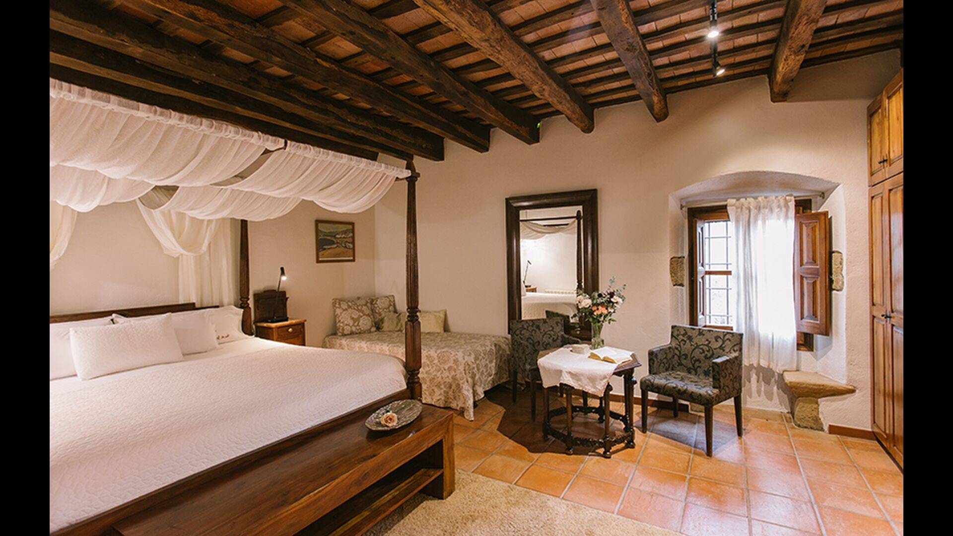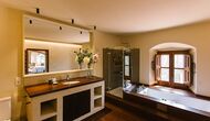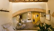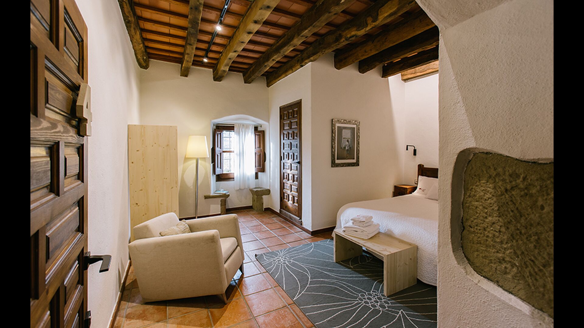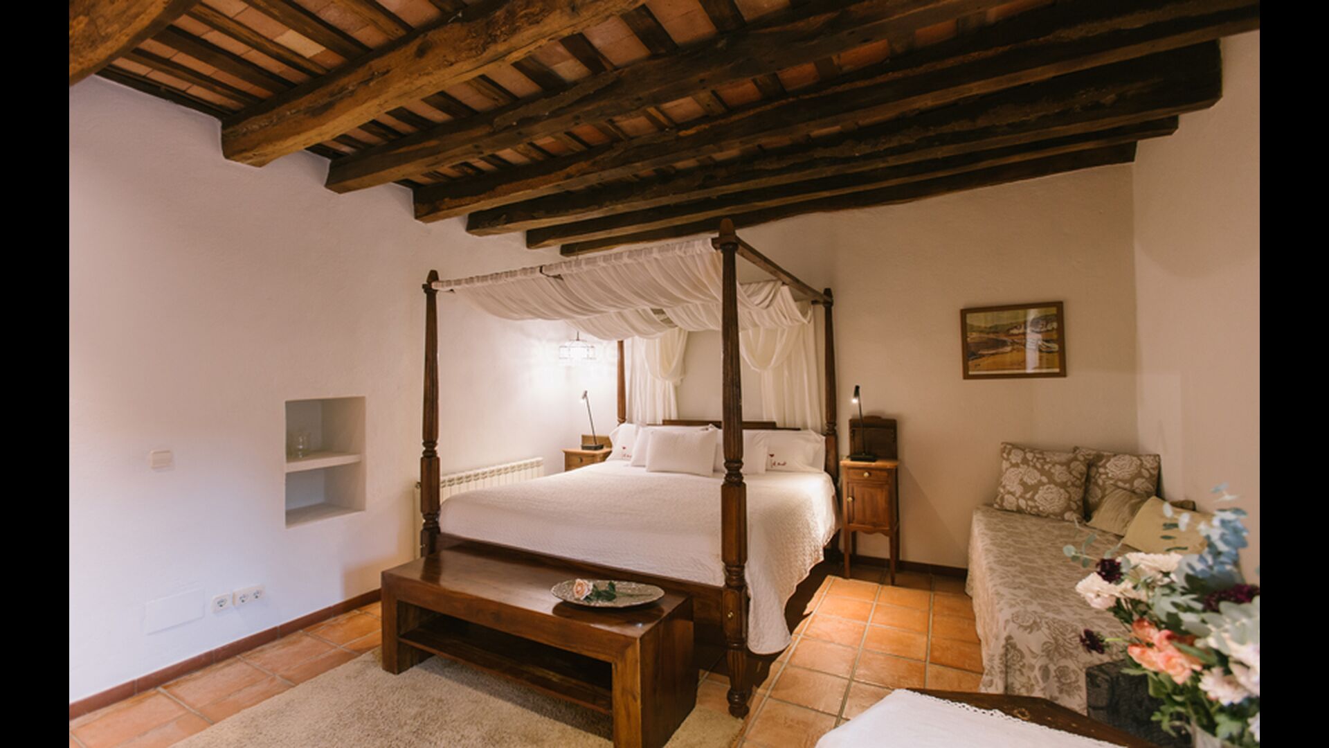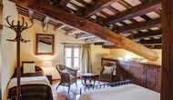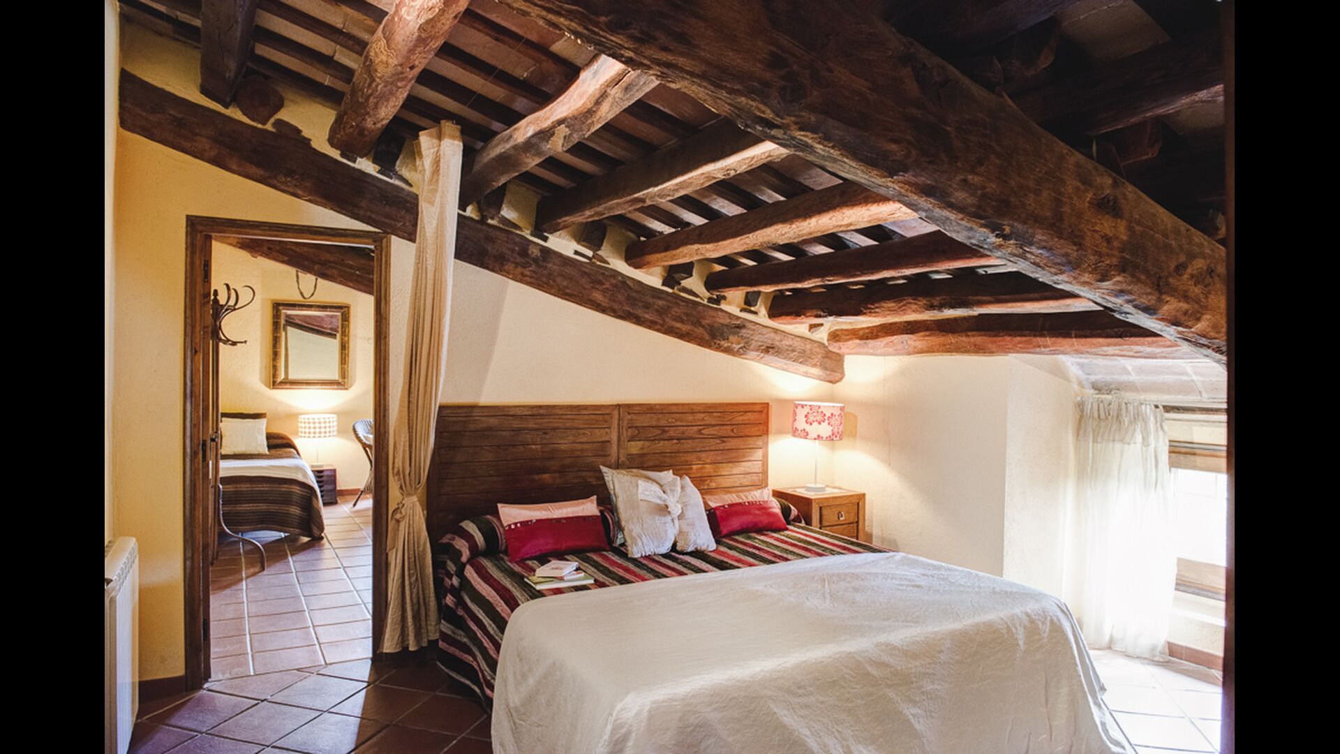 The second floor contains a lounge study with open fireplace. From there, you have access to two double rooms with bathrooms and one triple room and one double room with one bathroom to share.