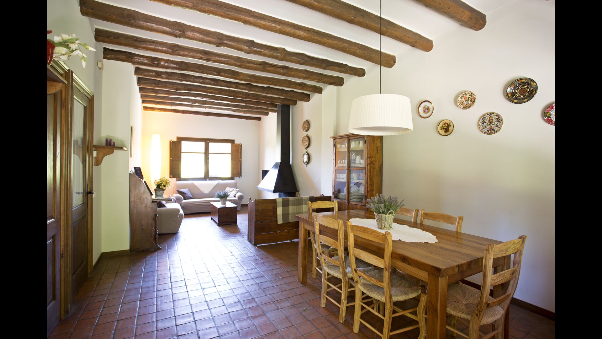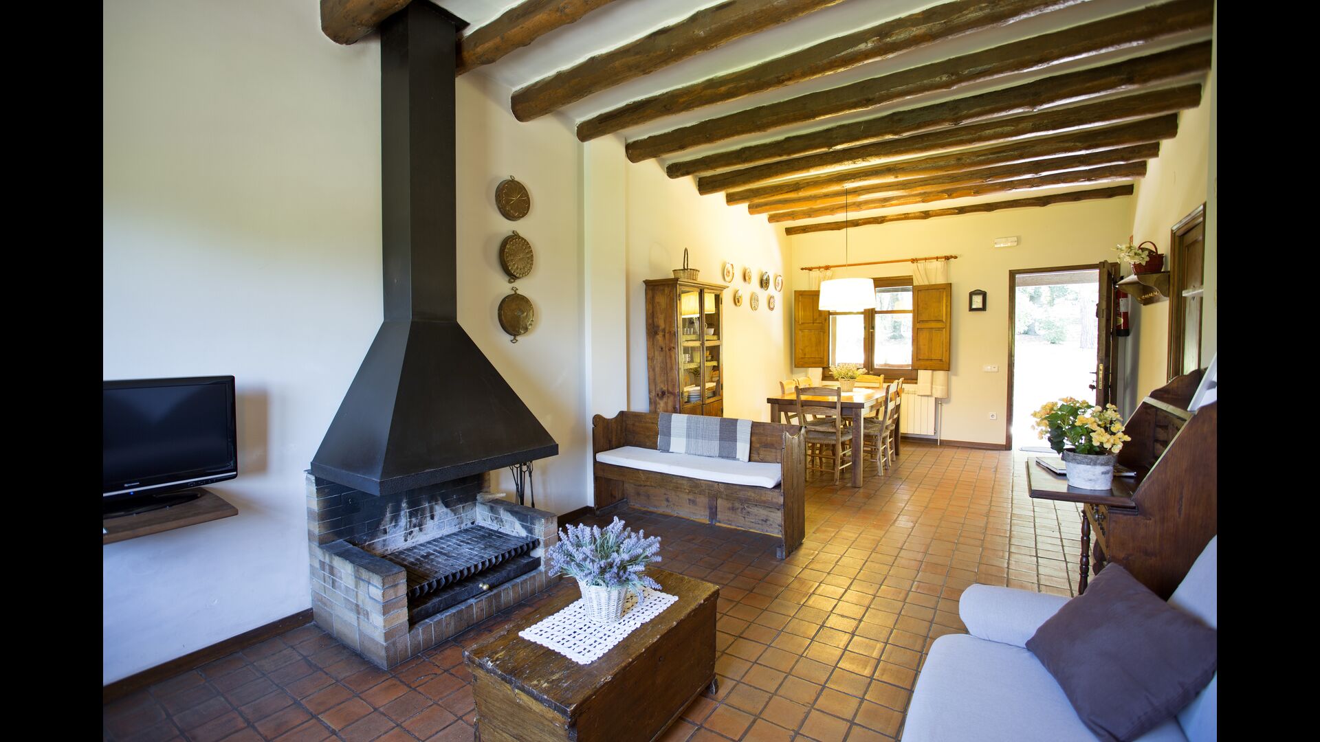 The house is situated in walking distance from the town-centre with shops and some cafés and restaurants. Also, there are buses leaving every half an hour to the regional capitol Vic, only 7 km. away. In Vic there is an excellent tourist office, and the city is in itself worth a visit, not at least on market days. Within 10 km. there are e.g. golf courses, tracks for walking, and Barcelona is only about 1 hour drive away.