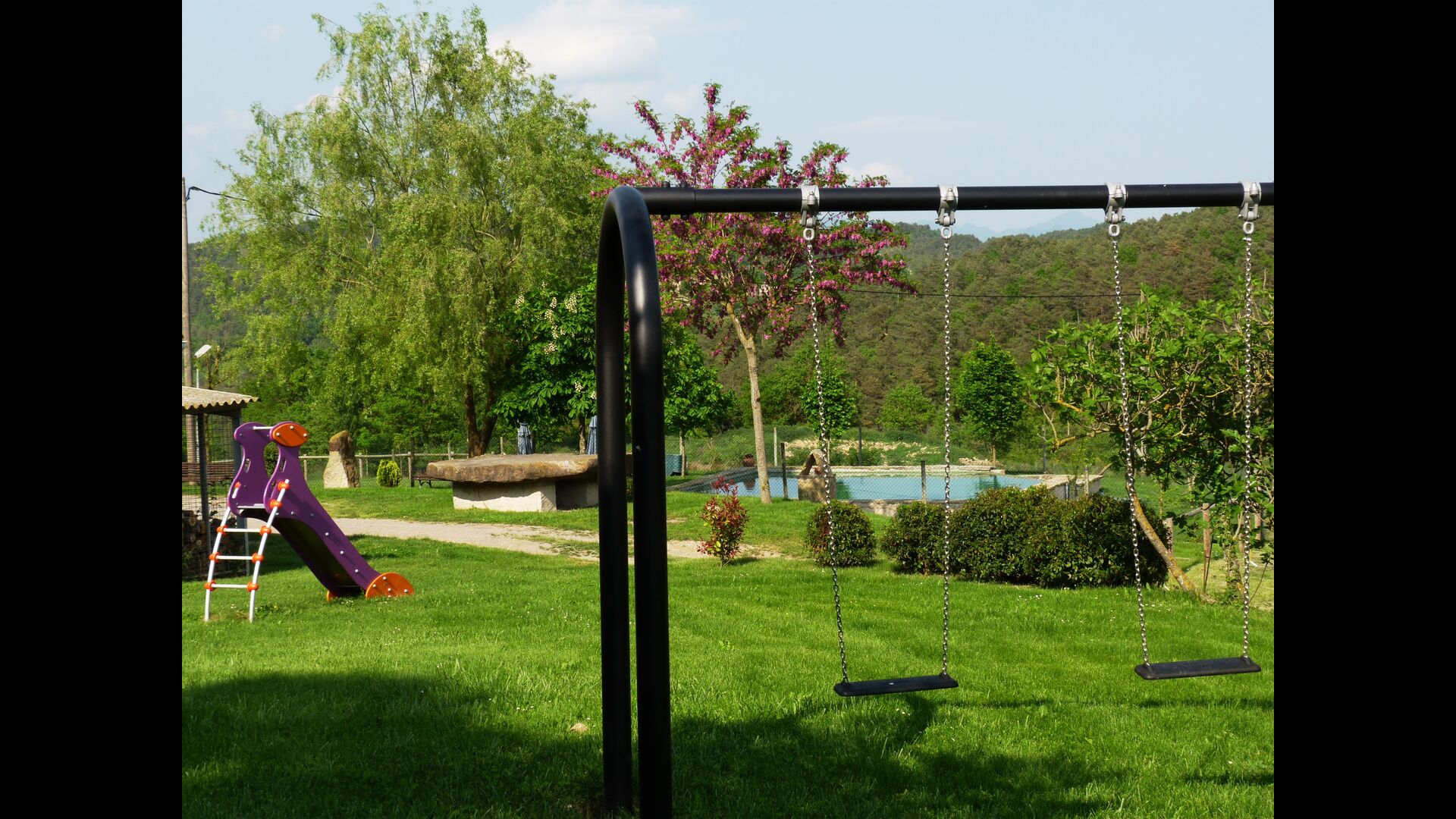 Casa Vinas Grandes - Bajo is the lower floor of Casa Vinas Grandes. The home has a capacity for 10 guests. Casa Vinas Grandes is situated in peaceful and green surroundings in a valley in the Osona region between the Pyrenees and Barcelona. It is an authentic Catalan house, with loads of Catalan country charm. There are no nearby neighbours and around the house, only green surroundings and plenty of space. The large grounds have several nice spots in the sun or in the shade, where you can relax and take in the beautiful surroundings.