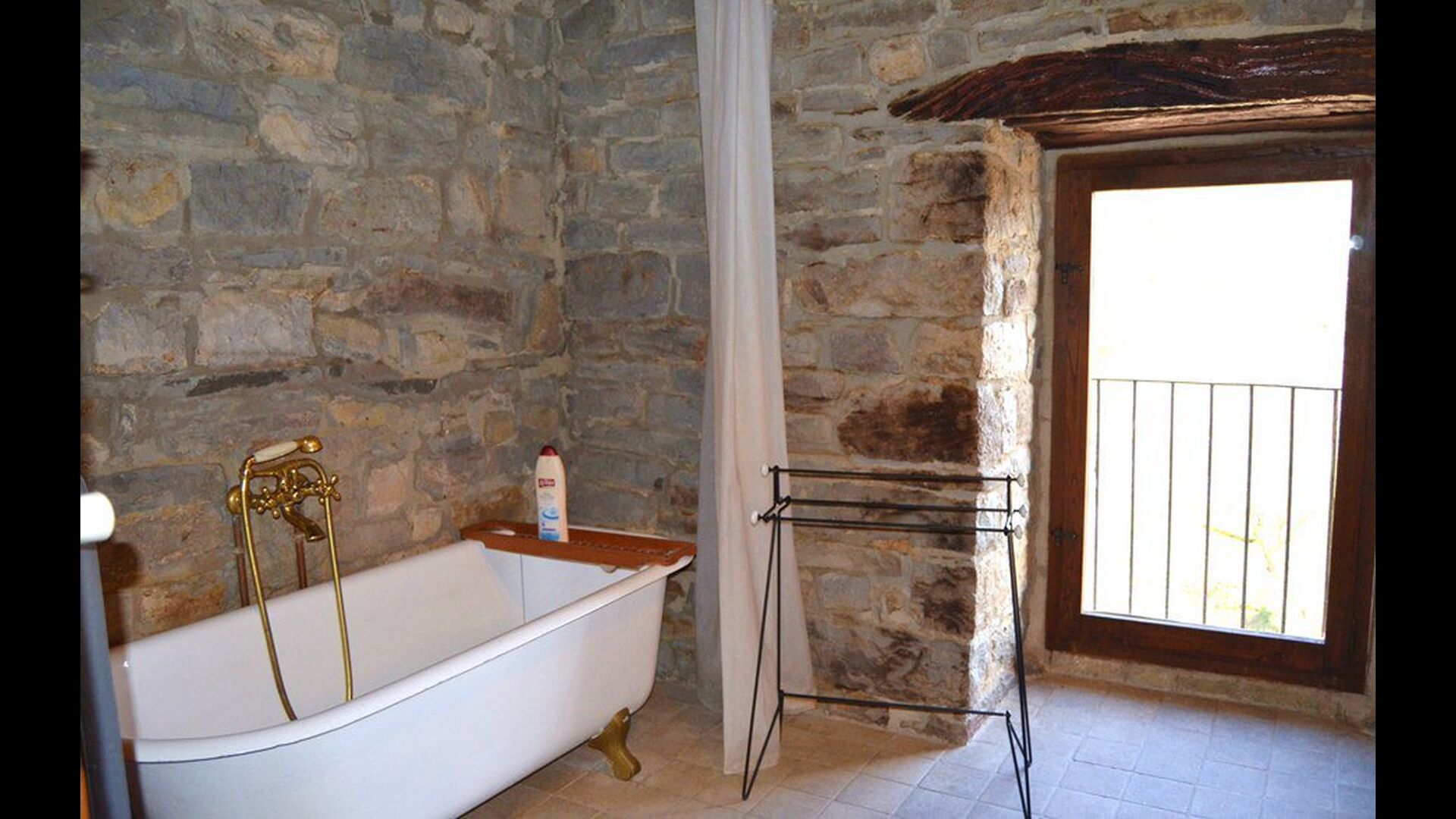 From this plateau you move up through a more narrow staircase. On top of the tower there are plateaus with a bathrooms with bathtub, a double bedroom, another bathroom with bath, one bedroom with bunk bed and at the very top is another double room, witch has what may be the most beautiful view in the area. At the top you will come up to the terrace of the tower. From here you can sunbathe or sit on the benches and think of the ancient…. or simply fully enjoy the excellent views.