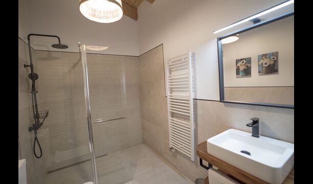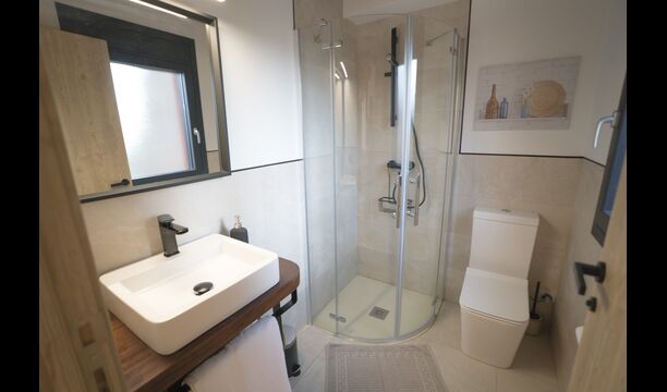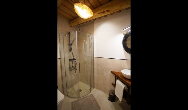 With a total of 6 bedrooms, 2 of which are double and 4 of which are triple, each space has been designed to offer comfort and ensure an unforgettable stay. Three of these bedrooms have private bathrooms to ensure your privacy. Additionally, we have a guest bathroom in the spa area, as well as a bathroom on the second floor and a third bathroom on the upper floor.