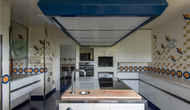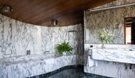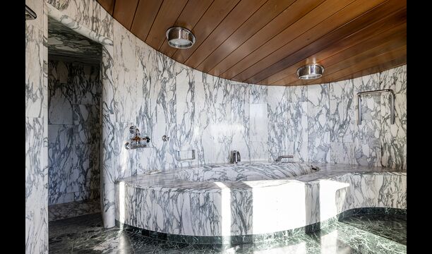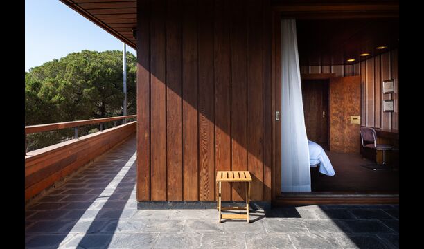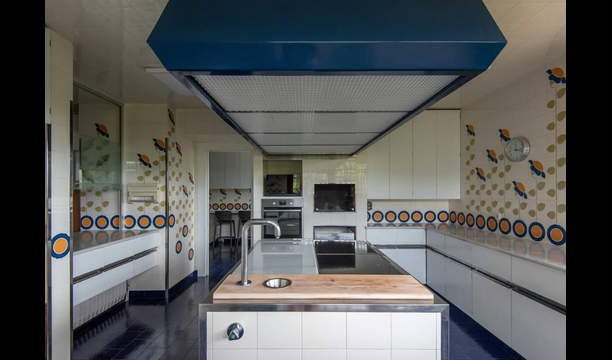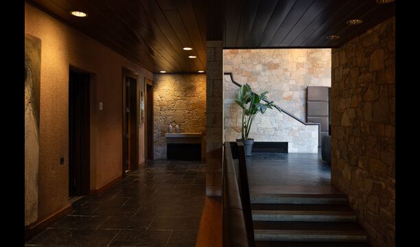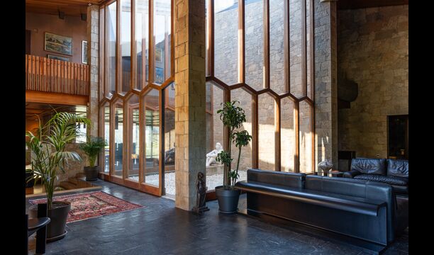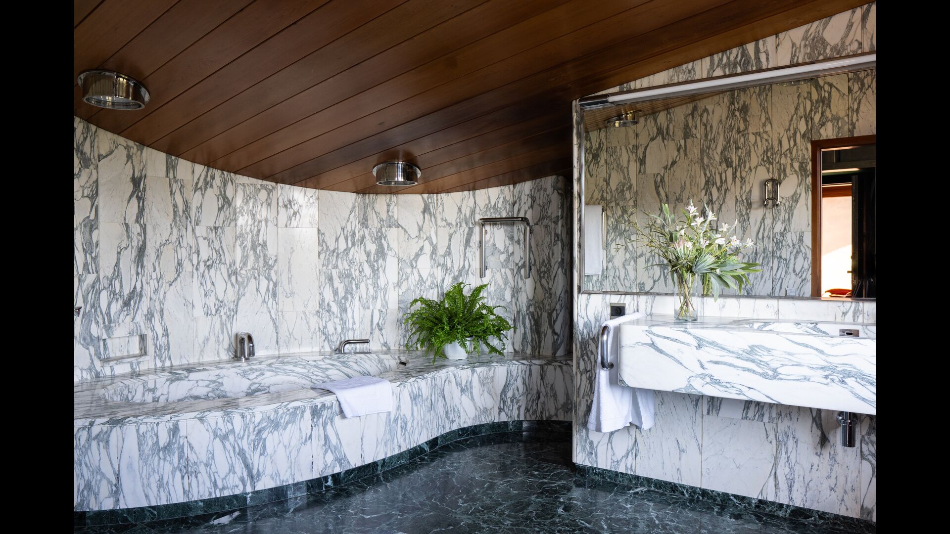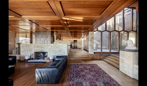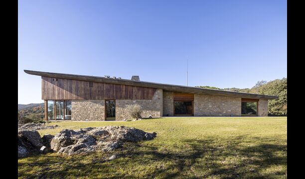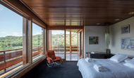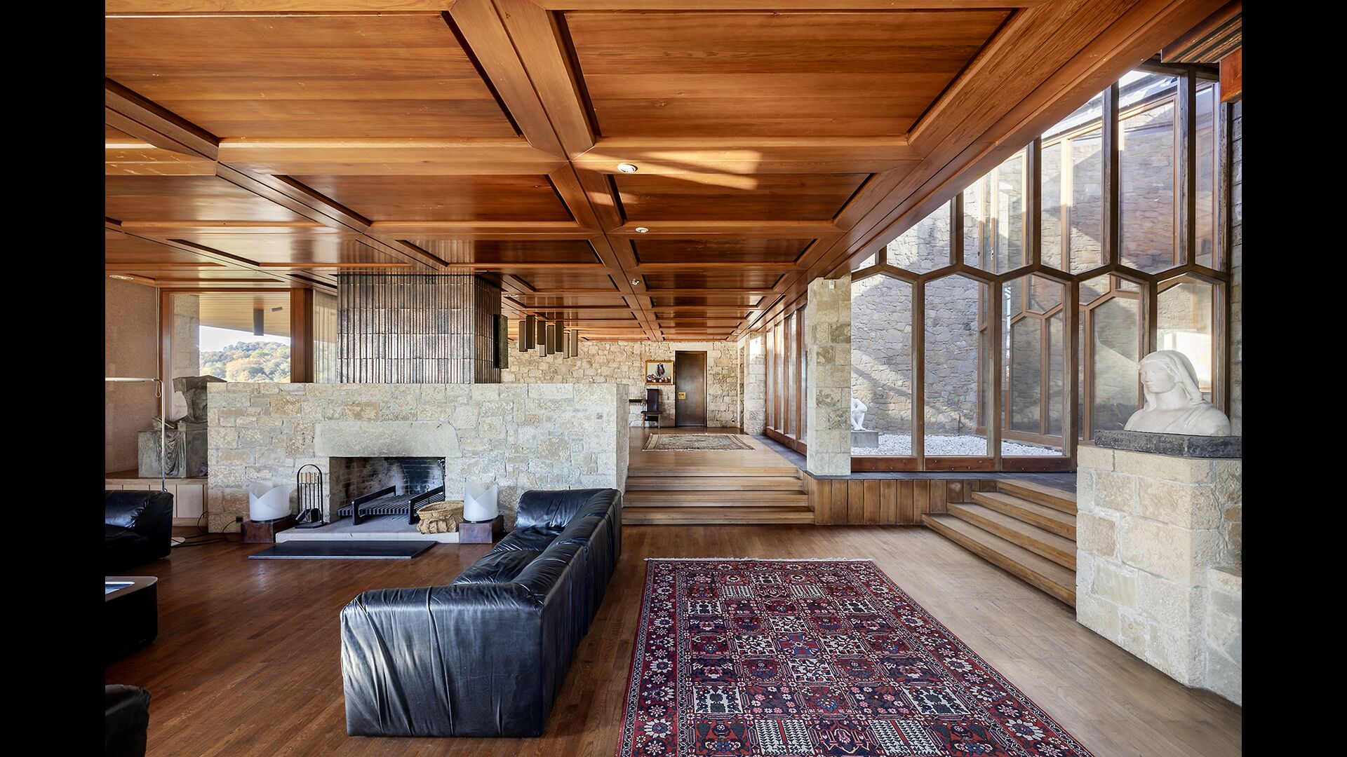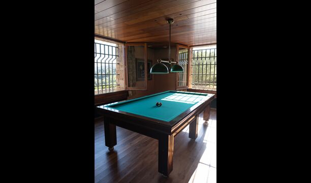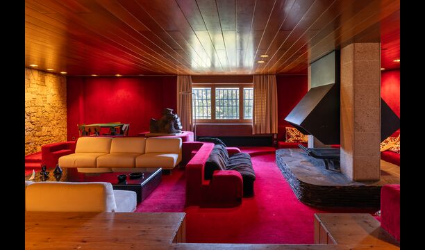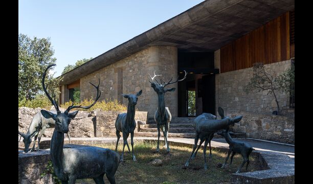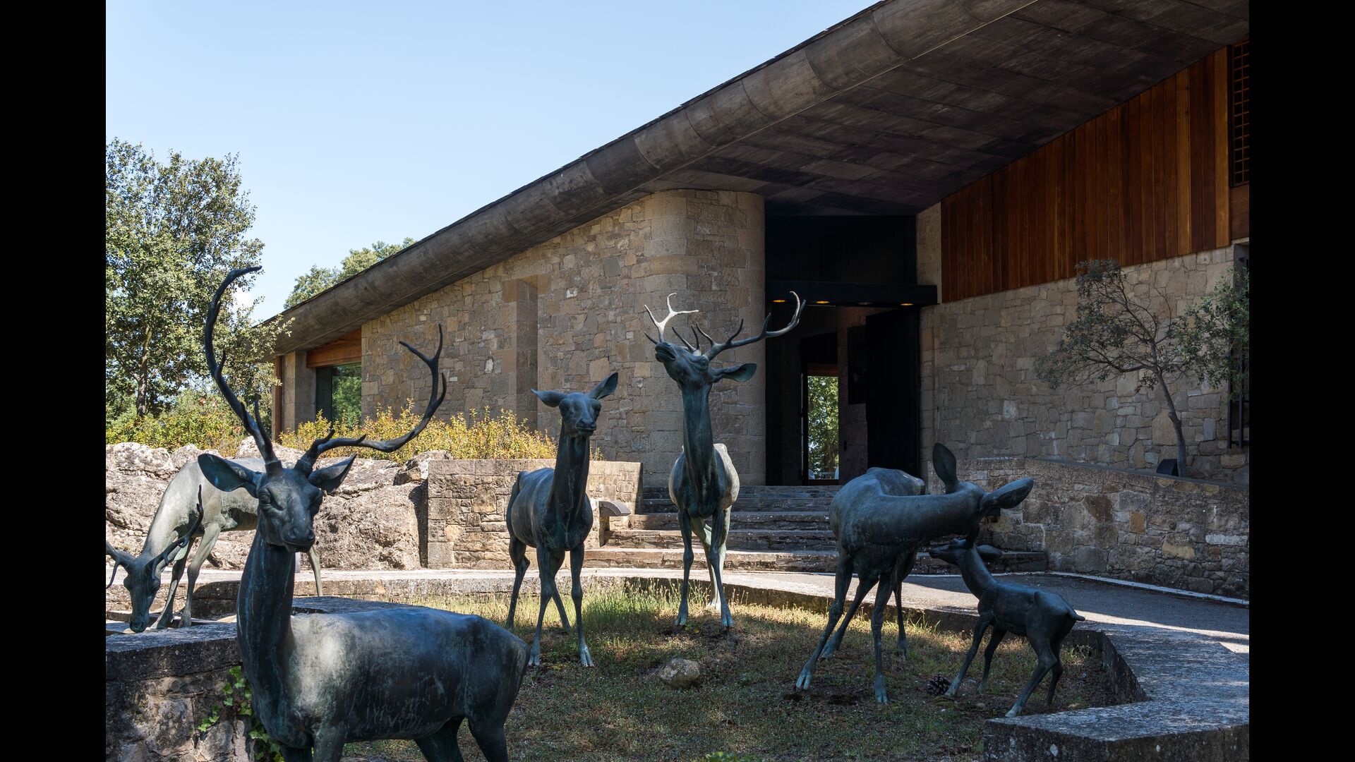 Inside, the house features inviting common areas, including a cozy lounge with a large fireplace, a private office space, and various terraces to take in the tranquil views. The combination of art, architecture, and nature makes this estate a perfect place to relax, work, or celebrate a special gathering.