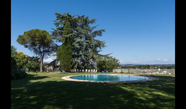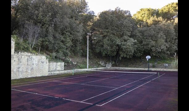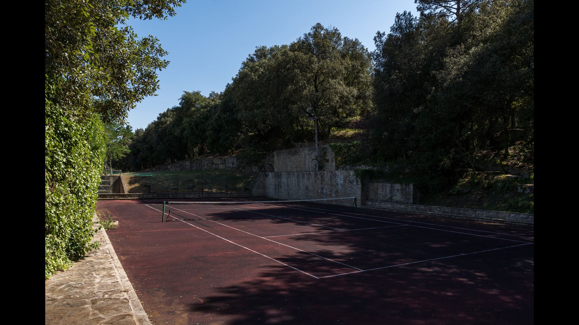 The large outdoor areas are one of the highlights of Masia de Cubric. Guests can enjoy a round swimming pool, perfect for cooling off on warm days, or make use of the private tennis court for some active recreation. Multiple terraces and seating areas provide space to unwind and soak in the spectacular natural surroundings.