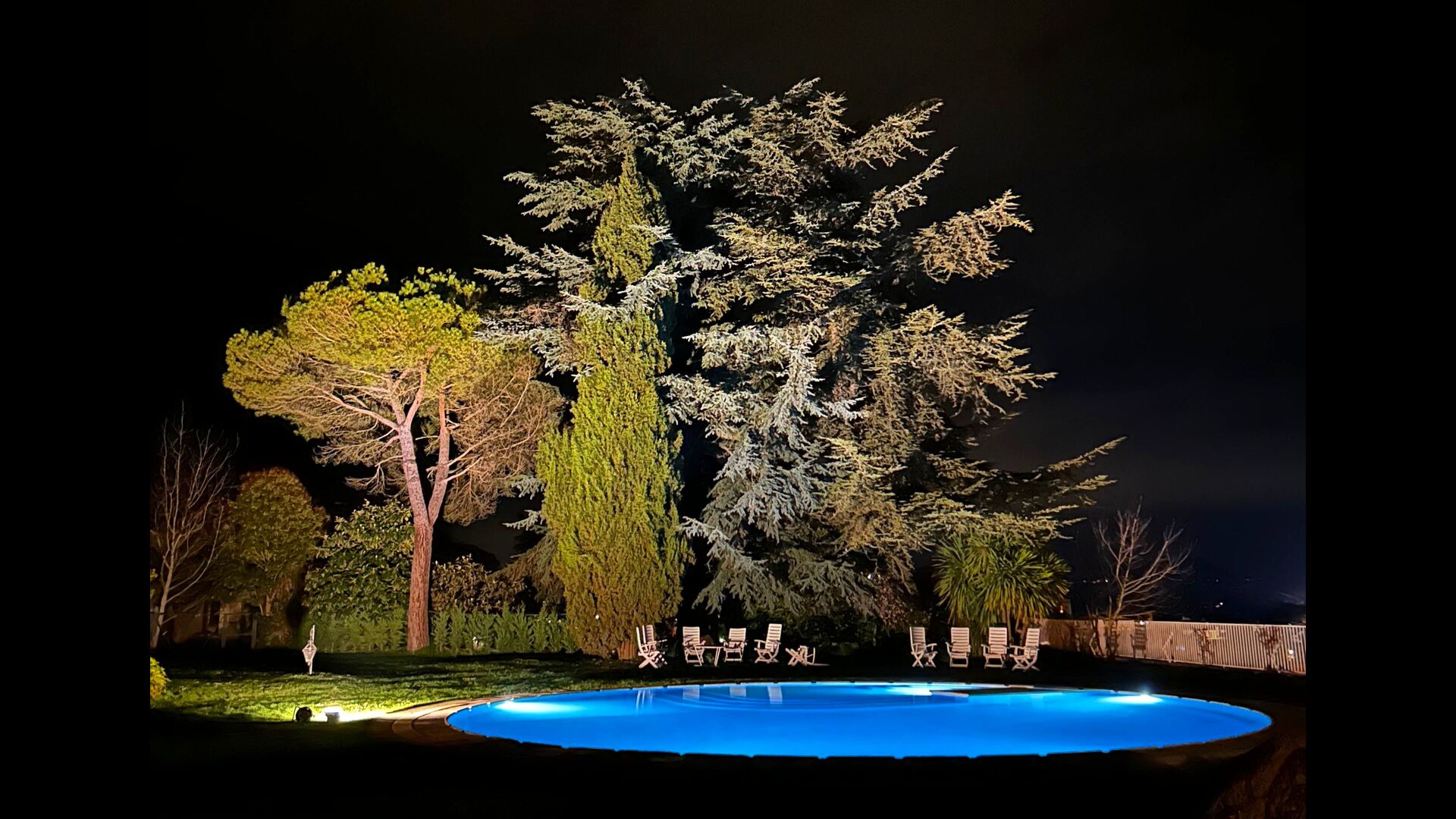 This elegant countryside villa accommodates up to 18 guests, featuring 9 spacious bedrooms, each with its own private en-suite bathroom, ensuring comfort and privacy for all. The home blends modern design with artistic touches, featuring sculptures and paintings that enhance the sophisticated atmosphere.
