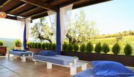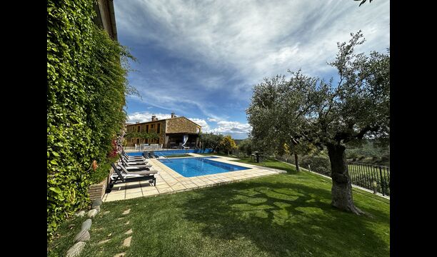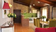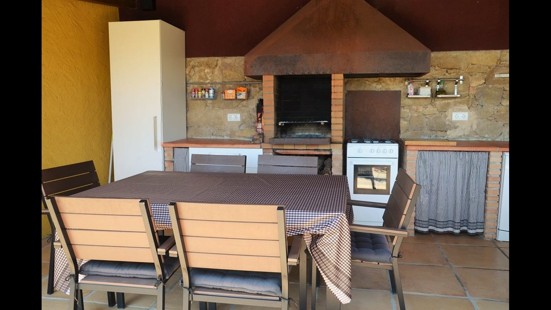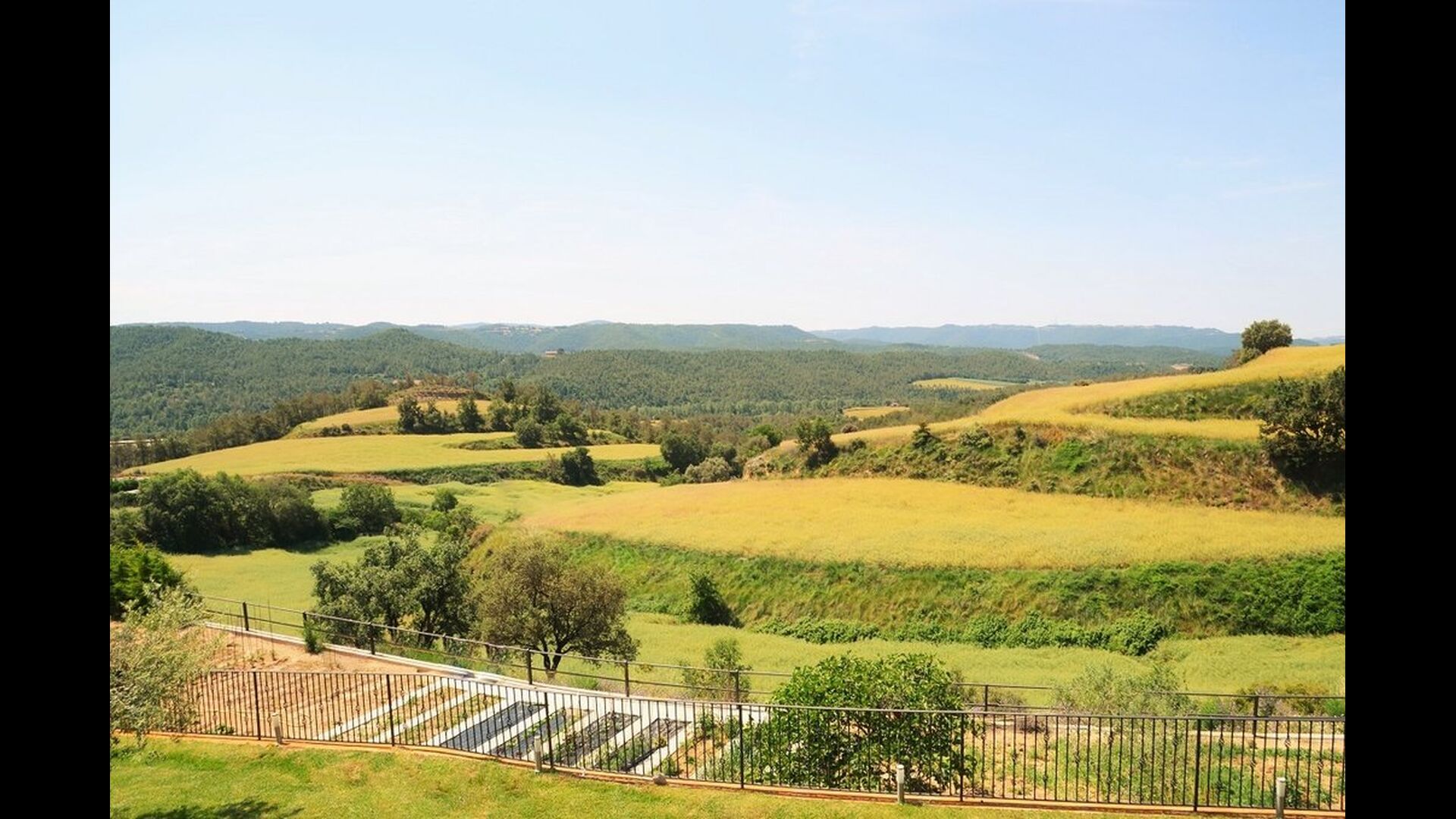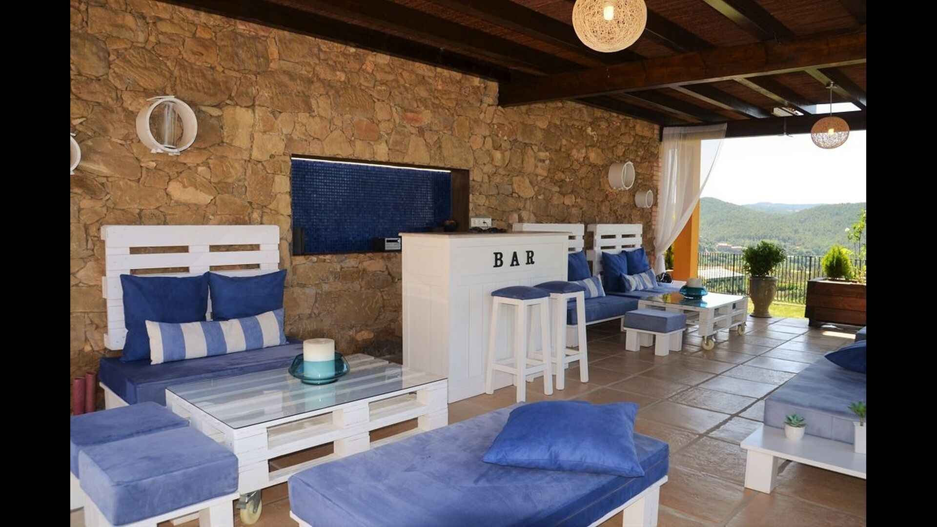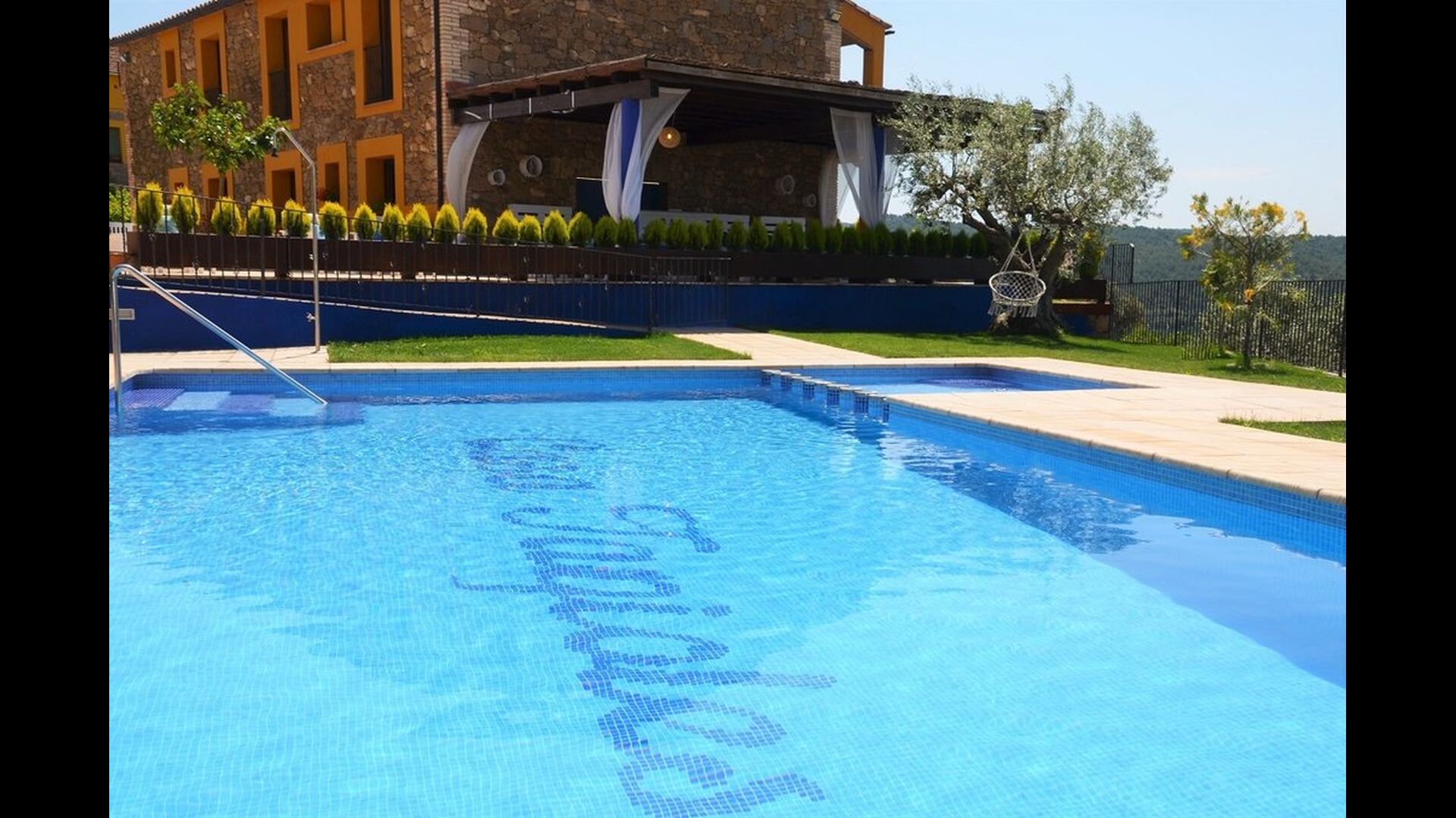 Casa Tagiales is a house with 330 m2 of space, which has been optimized to the wonderful Catalan summer through a wide range of chill-out zones and several outdoor facilities spread all over the large ground. Read a book in one of the smart hammock-chairs hanging from the trees, lay on one of mattresses on the terrace with music and bar within short range or make use of the Catalan sun from the deck chairs, etc. – the possibilities are endless. If the heat gets to you, keep in mind that there’s a large 10x5 meter pool right in front of you; of course fenced off and with an extra, shallower part for the younger ones in the group, so everyone can utilize the refreshing water. Talking of the smaller ones, there’s also a playing area with a trampoline, a sandbox, a slide and swings. Around and about the ground you’ll find multiple terraces, from where you’ll be able to enjoy the exceptional view of the surrounding Catalan countryside, where farmers farm and cows graze. A quite big part of the view actually belongs to the house – the ground stretches over an incredible 100 hectares.