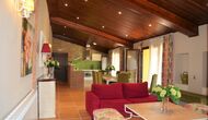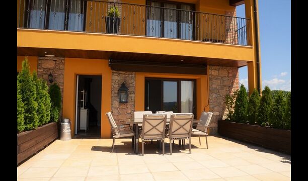 The fact, that the house is somewhat divided into 3 parts is ideal for the large groups, as it allows for you to withdraw yourself back into your own private part to relax a bit. Every one of the 3 parts also have own facilities, such as kitchen. The rooms come with 7 bathrooms, whereas 3 of them are ensuite. There’s also, as an extra luxury, a large balcony on the first floor, which comes with a fantastic view. Moreover, a couple of the bedrooms on the first floor has their own French balcony. There’s multiple living rooms in the holiday house where sofas and TV are included. In addition to this, the house also has its own washing machine and tumble dryer.