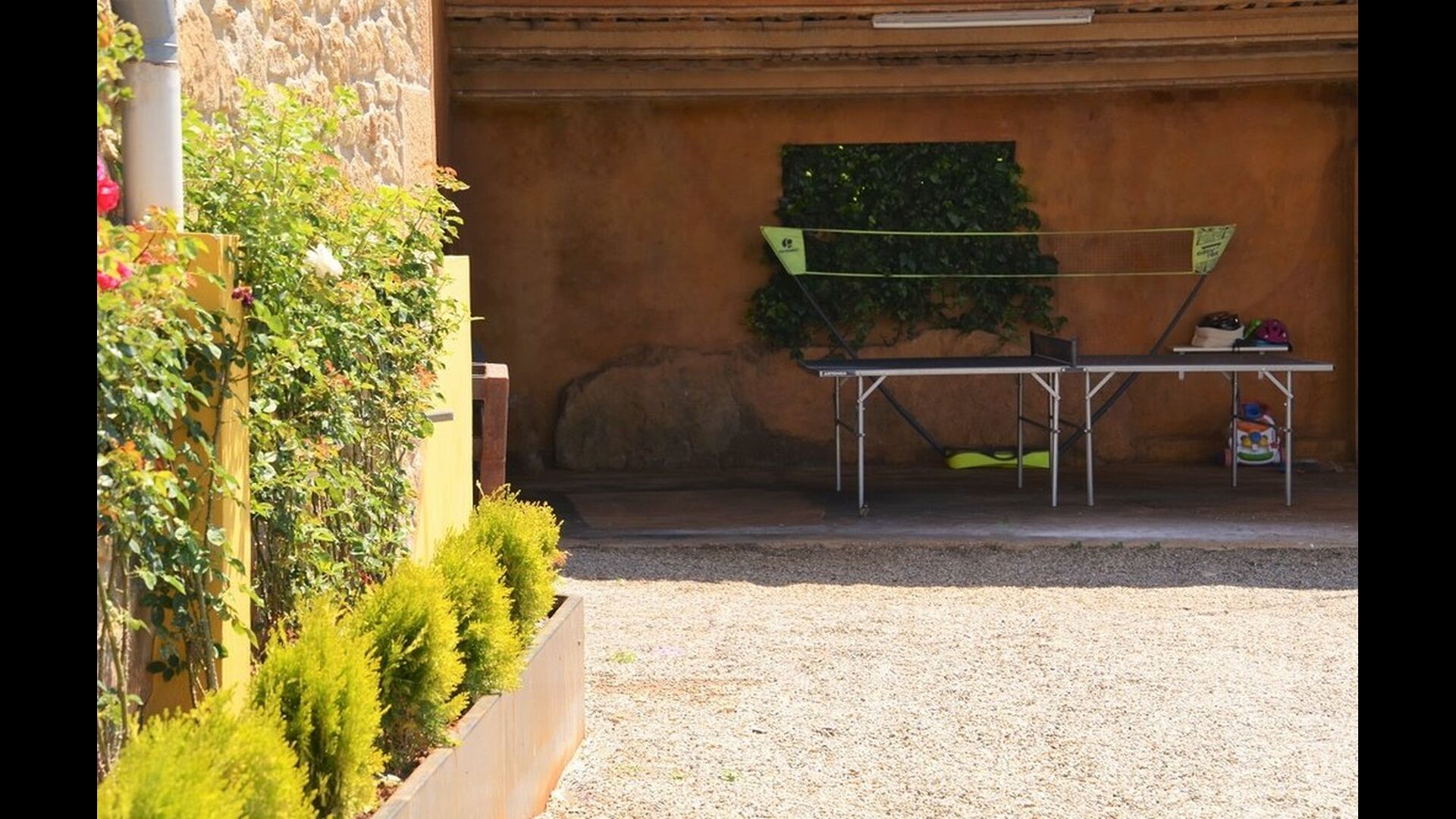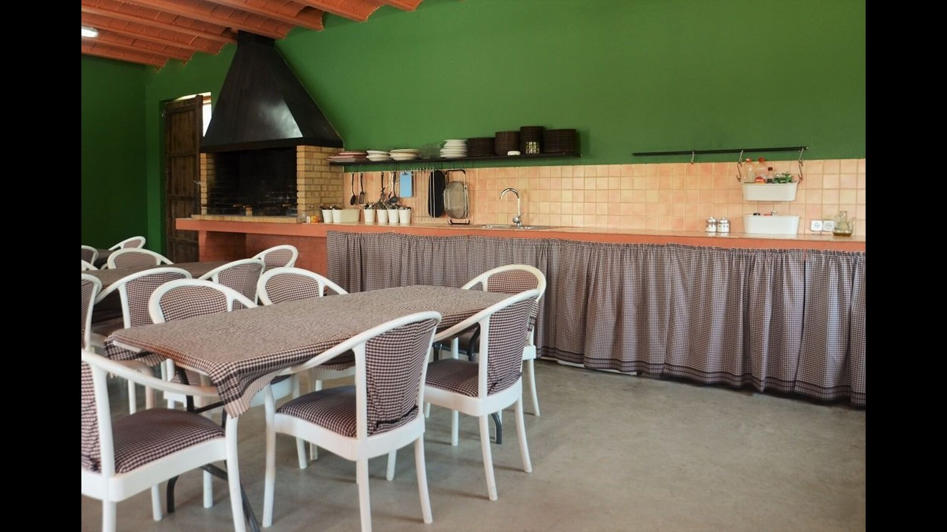 On top of this, there’s a great, big hall next to the pool with barbeque grill, fridges, a fully functional kitchen with hotplates, a microwave etc. as well as dining tables. The tables are easily movable, so there’s always the option to move them outside to eat if you wish. In addition, there’s a sofa area and a play area along with a table football. The toilets and bath in the hall also opens up for an early arrival, so the owners can prepare the villa while you make use of the numerous facilities till the house is ready.