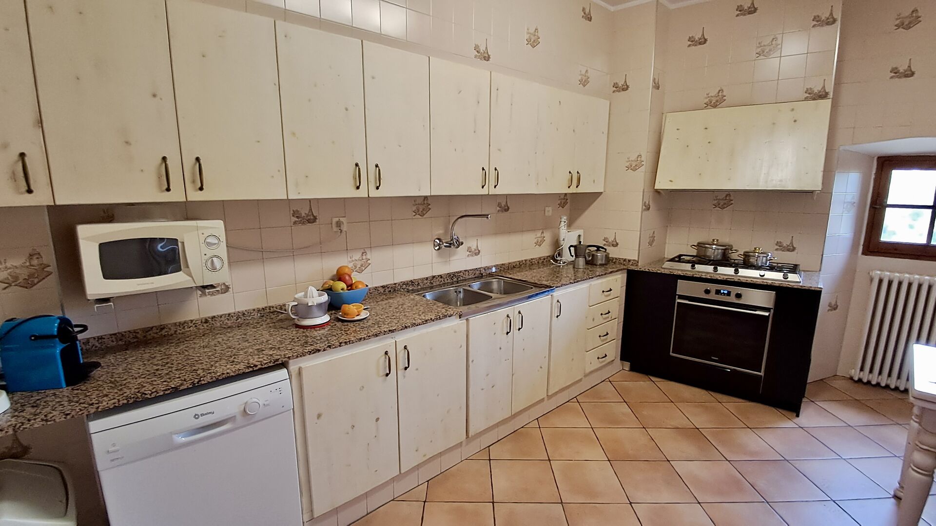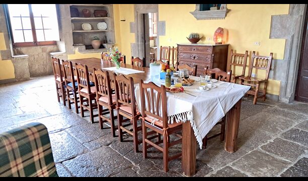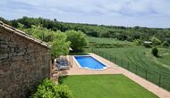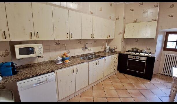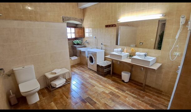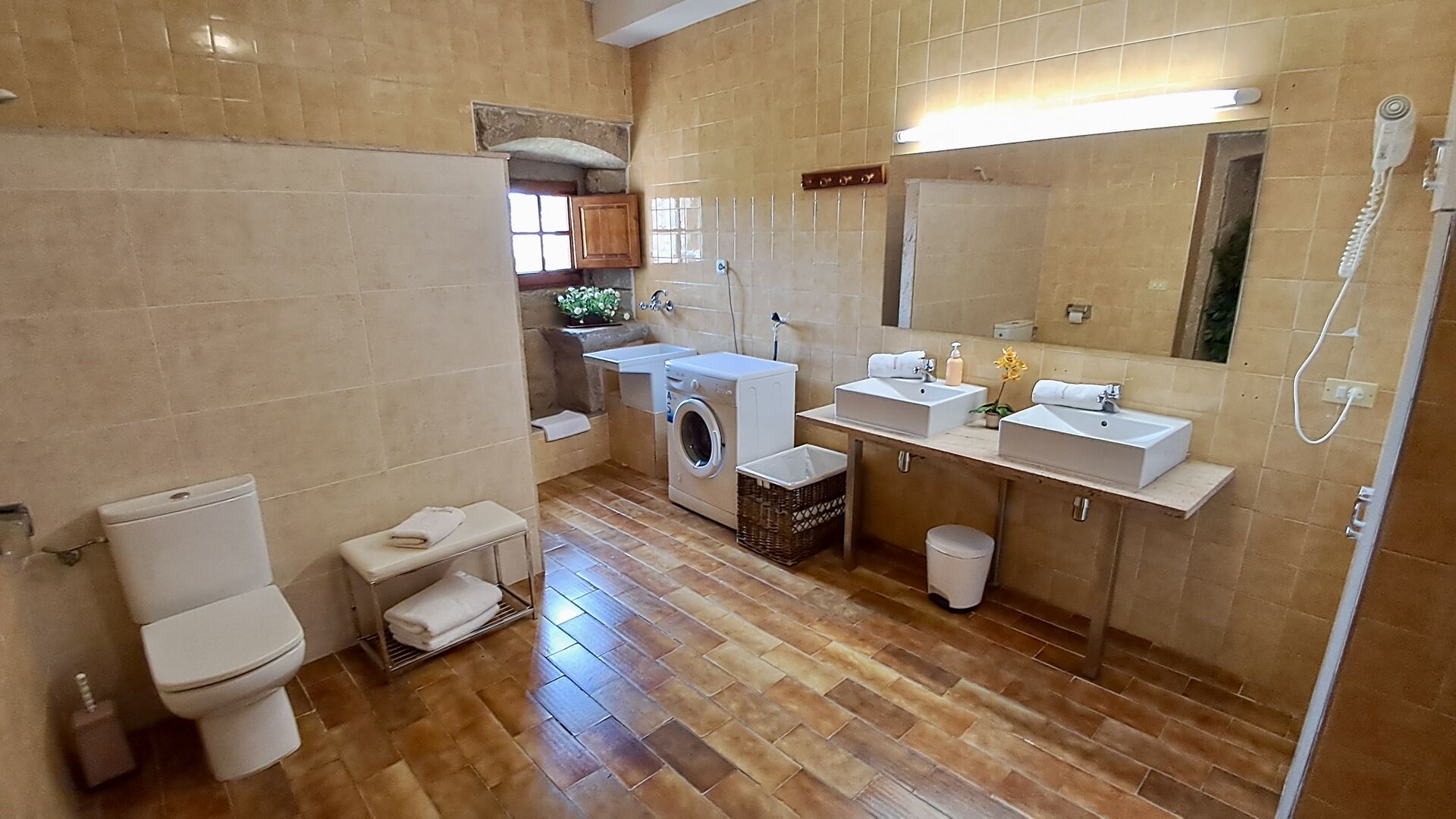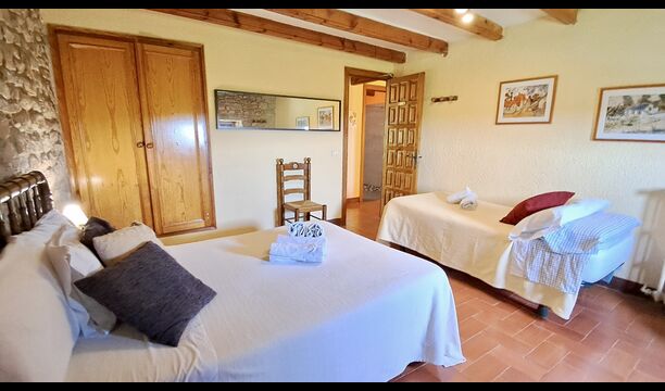 The house is constructed with typical materials such as limestone walls and tiles inside, keeping the house cool even on the warmest summer days. Distributed on two floors, there are in total 6 bedrooms. Three of the bedrooms are three-bed rooms and three are double rooms. There are three bathrooms for your disposition .