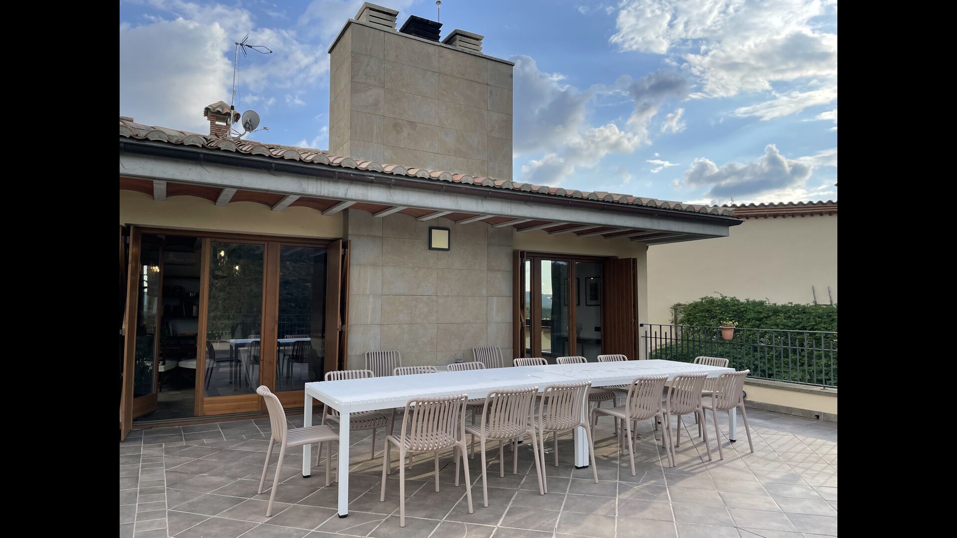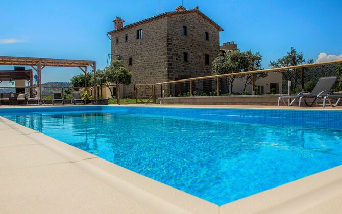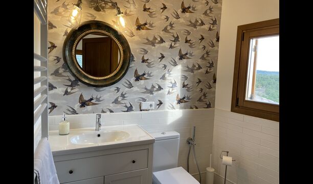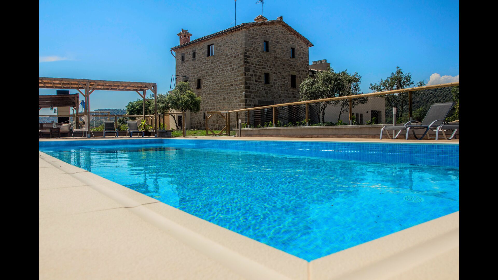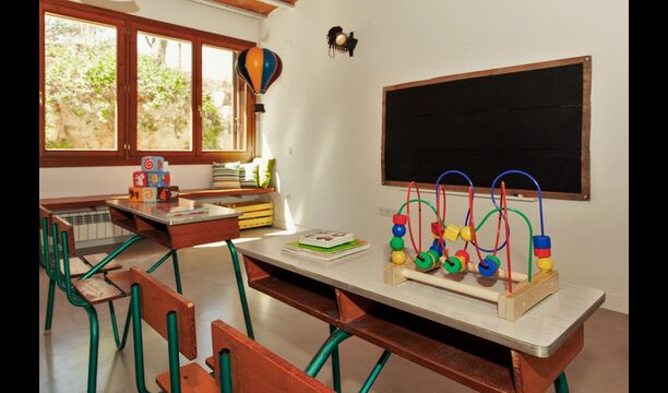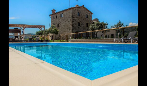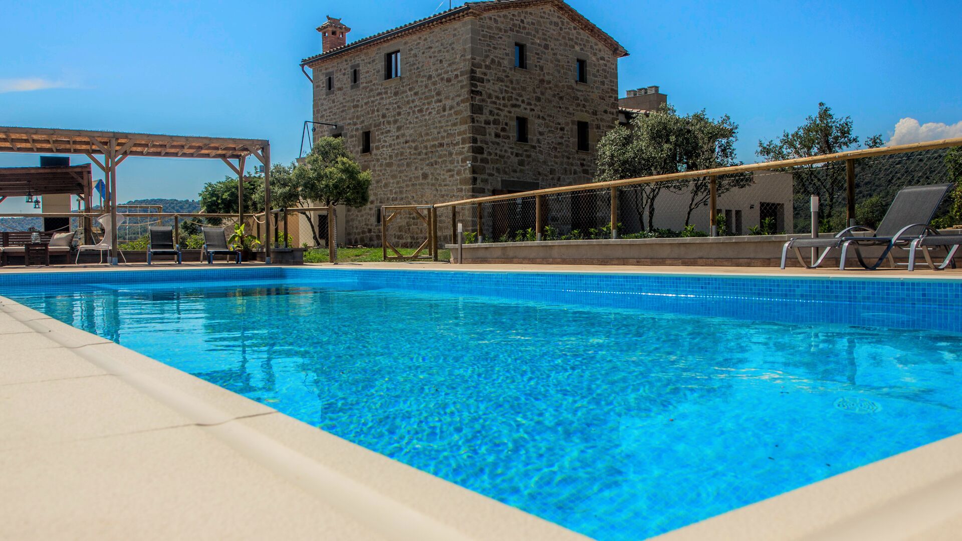 From the terrace you can enjoy the impressive views of the green Catalan hills. The outdoor meals can be enjoyed at the long dining table on the great terrace. Home cooked meals can only be recommended, as the white modern indoor kitchen is also complemented by a luxurious, covered outdoor kitchen. El Riberella is furthermore extremely family friendly. In the holiday home there is a small playground with a slide and swings and you can keep an eye on the children when they are swimming and playing in the fenced swimming pool area.