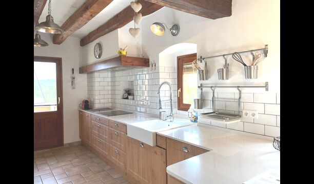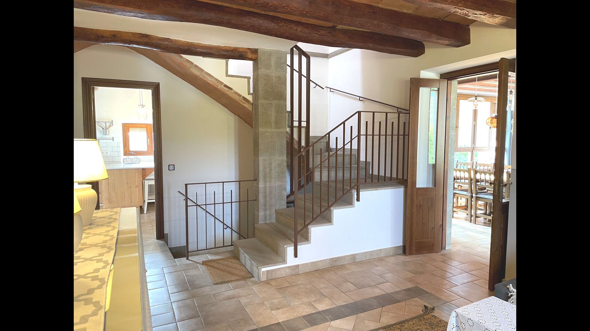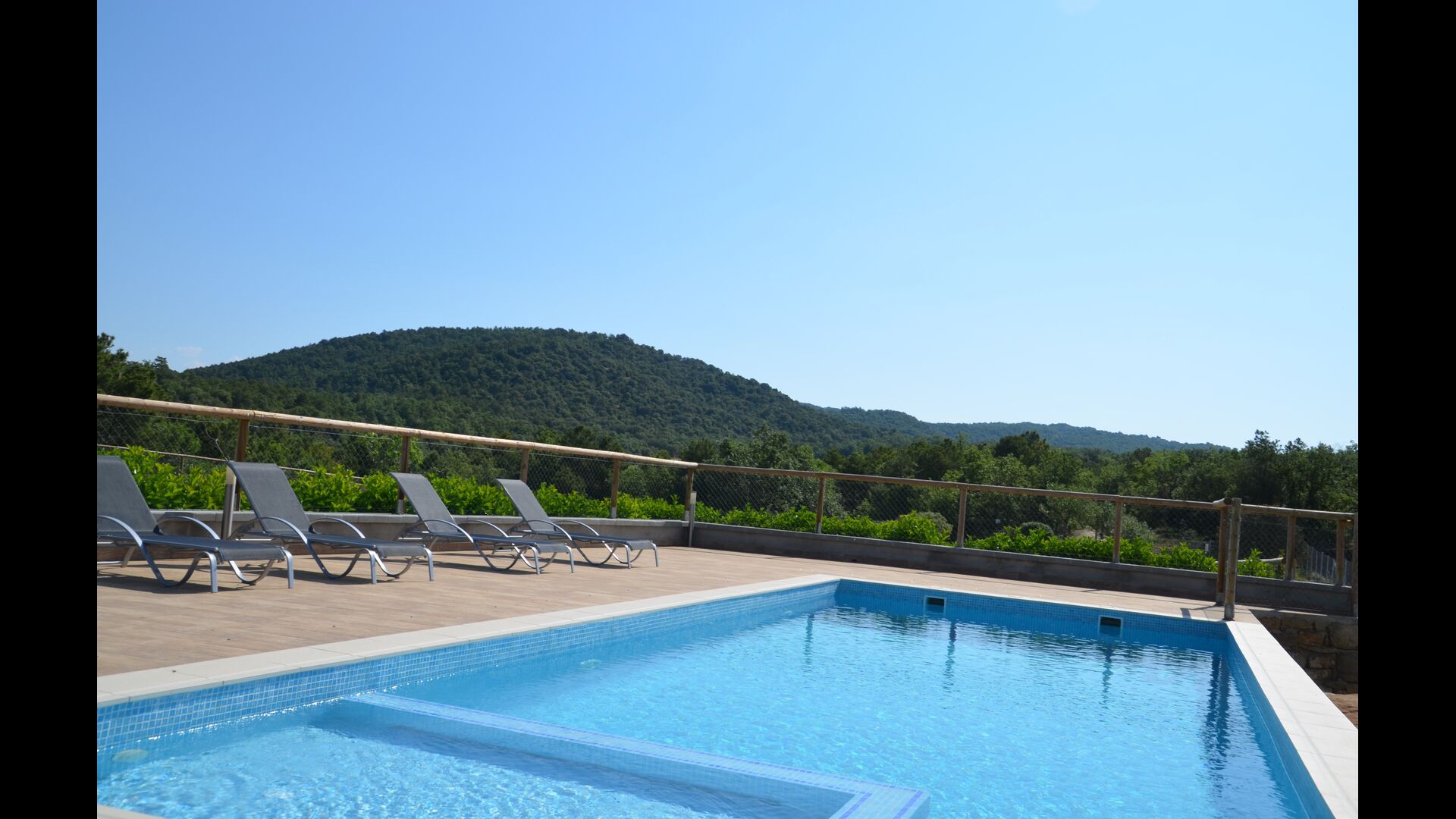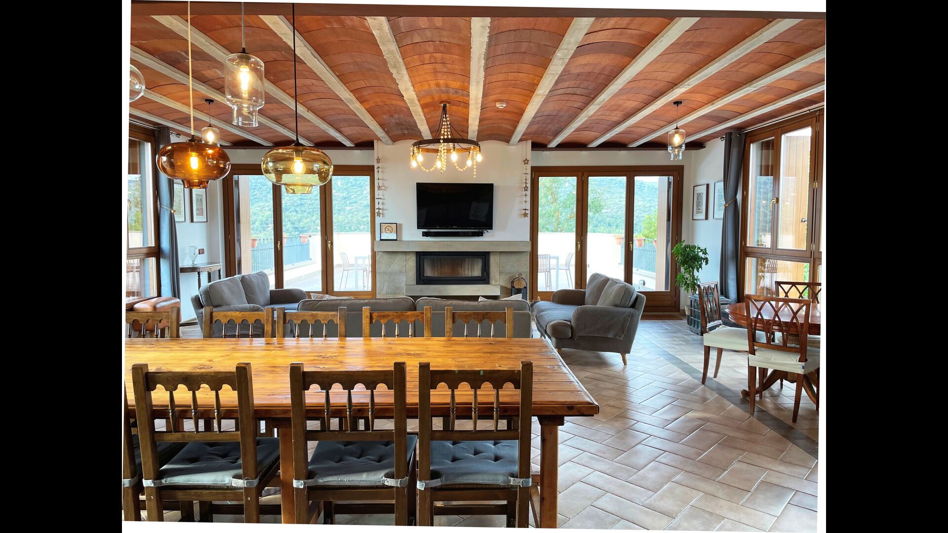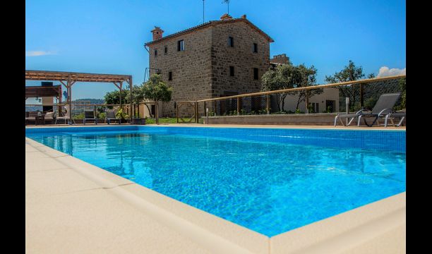 From the terrace you can enjoy the impressive views of the green Catalan hills. The outdoor meals can be enjoyed at the long dining table on the great terrace. Home cooked meals can only be recommended, as the white modern indoor kitchen is also complemented by a luxurious, covered outdoor kitchen. El Riberella is furthermore extremely family friendly. In the holiday home there is a small playground with a slide and swings and you can keep an eye on the children when they are swimming and playing in the fenced swimming pool area.