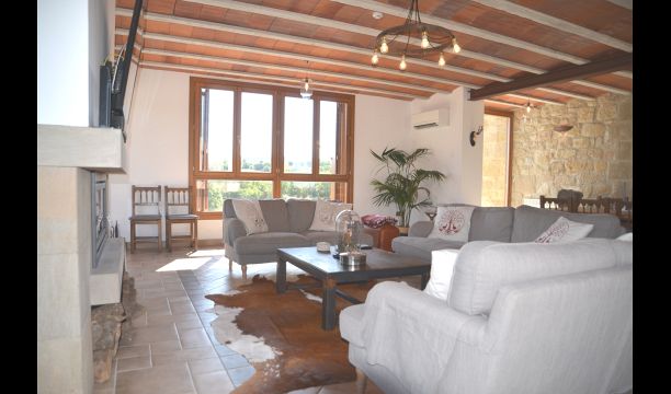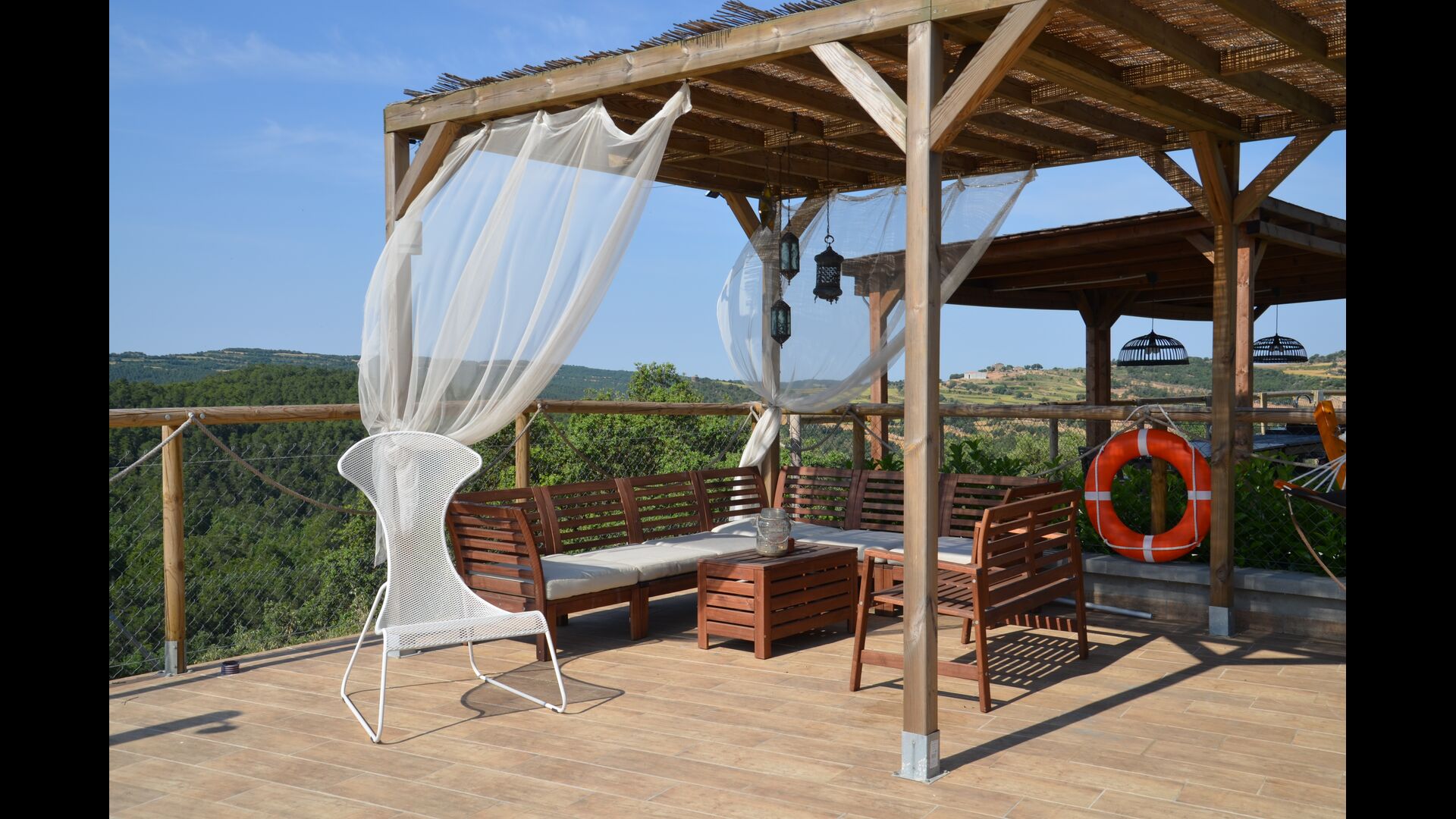 El Riberella has a nice big room, with huge windows that make the room bright and spacious, and here indoor meals can be enjoyed at the dining table. In the bright living room, which can be cooled down by the air condition, a cozy sofa area is arranged where you will be able to relax and for instance play games in the evenings. The living room has an exit towards a large terrace, which among other things features a long dining table, a swing bed and incredible views.