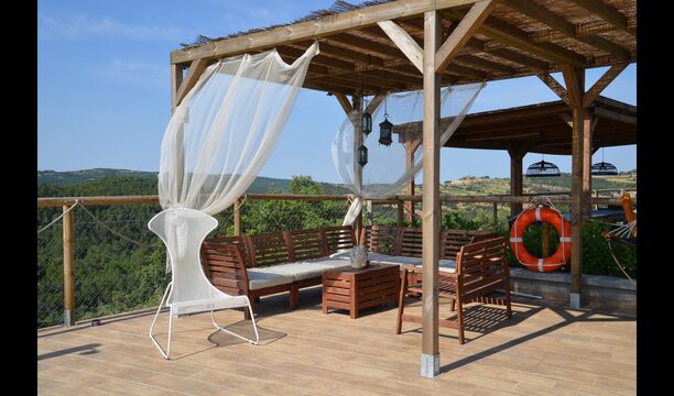If you book for 13 persons or less, this part will be closed, so you will never share the property with another group.