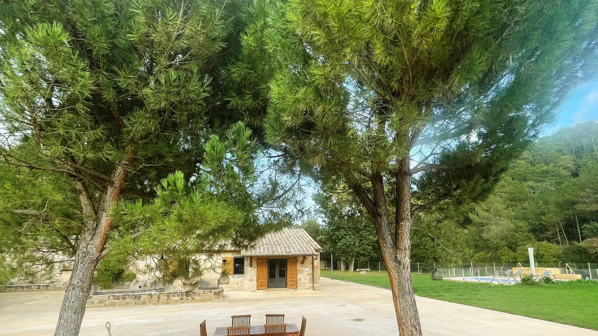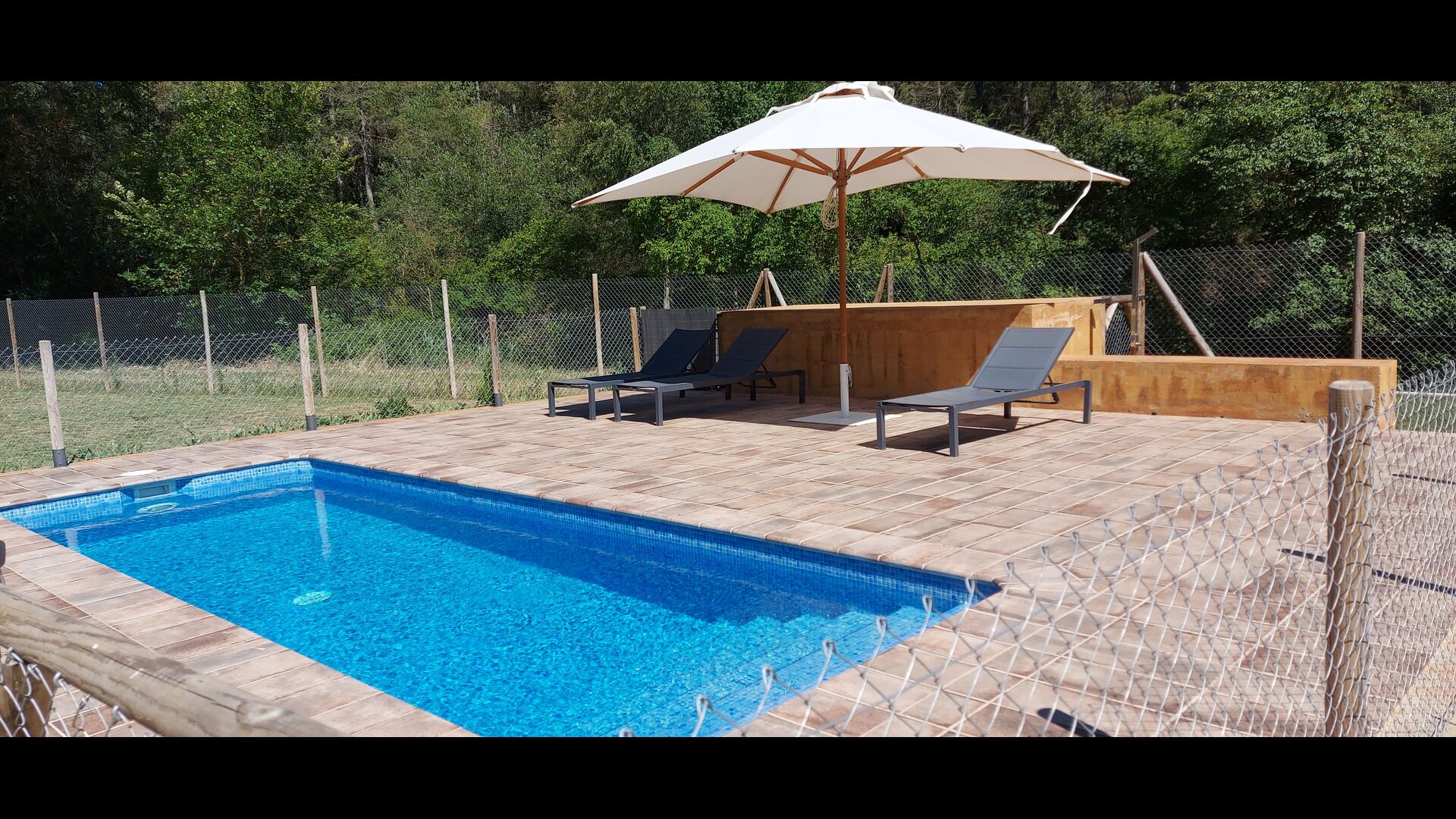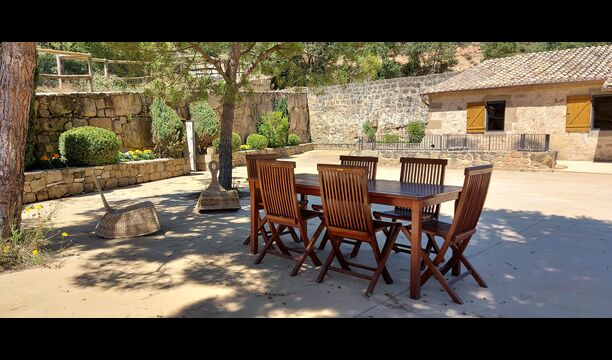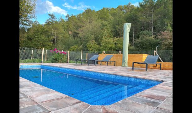 In the middle of the garden, you find the fenced pool area, where you can relax at the sun loungers or have dip to cool down in the warm Catalan summer. As the swimming pool has roman steps, it is also ideal if you have small children, so they can enter the water in their own pace and play.