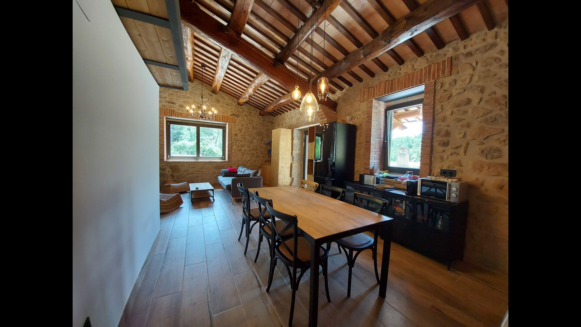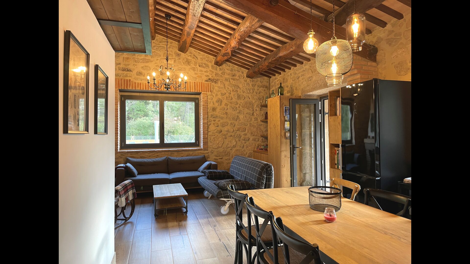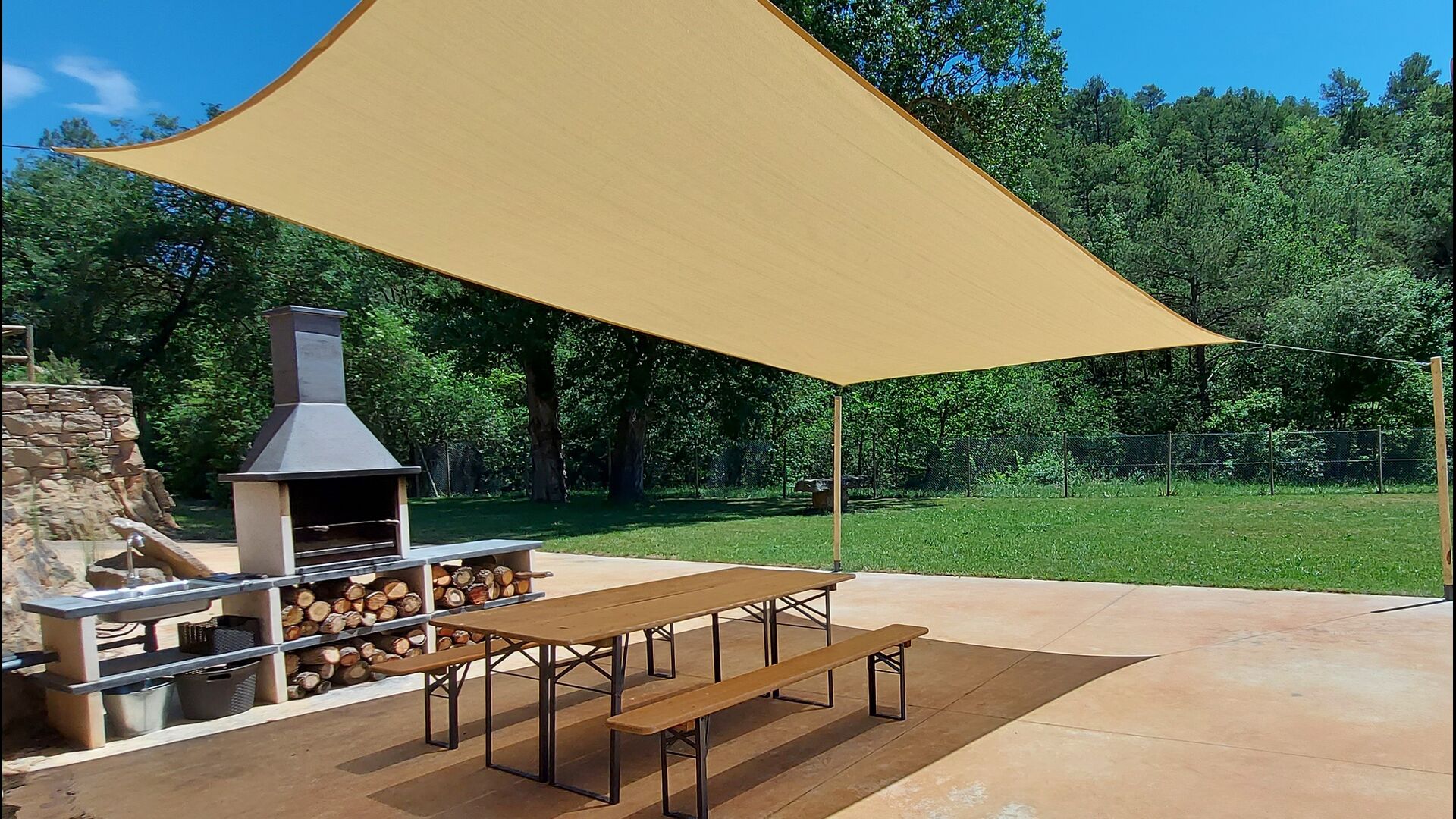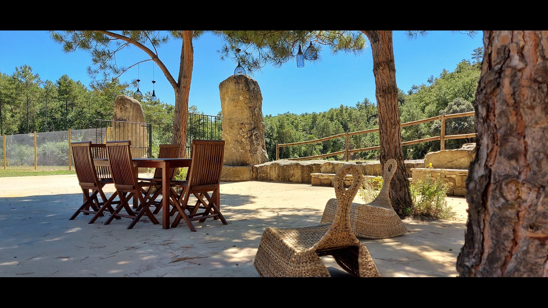 Outside the house, you will have the garden table, which you can easily move, so you can basically have your meals where you prefer. It could be in the shade under one of the trees, by the swimming pool or next to the barbecue, if you like a nice barbecue dinner. There are also some arm chairs, so you can relax with a book.