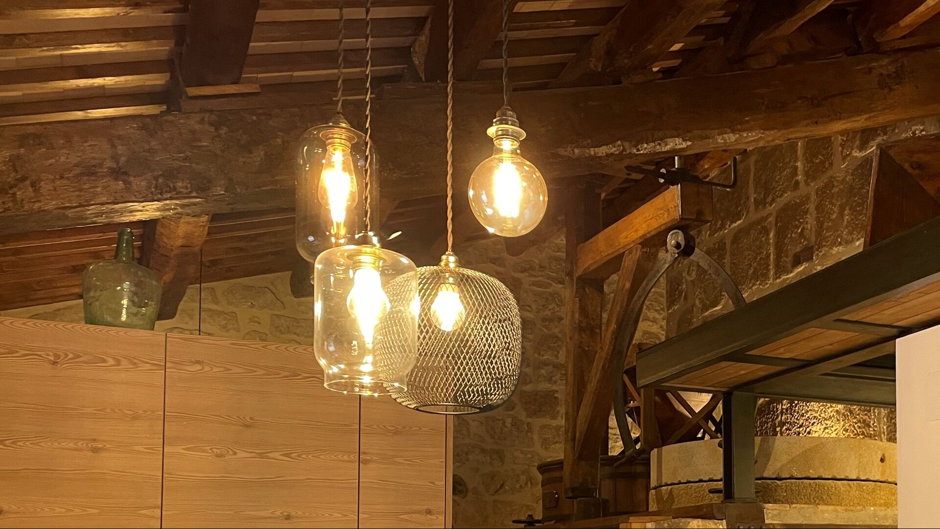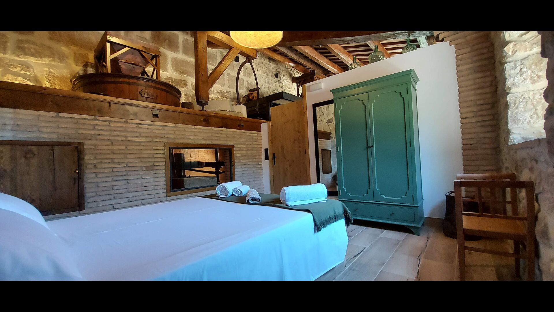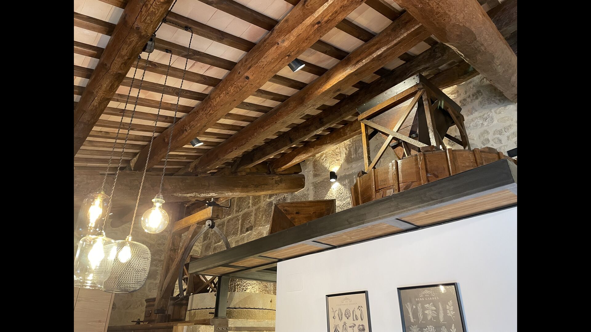 The mill is from 1888 and was made to make flour. If you fancy technique, it is amazing how the old machinery of the mill has been preserved. It is covered by glass, so you can see all details, and Josep-Mari will be happy to show you how it worked in old days. Moreover, it has been done in away, so it contributes to the feeling of being in a holiday home with a lot of history and now of high quality.