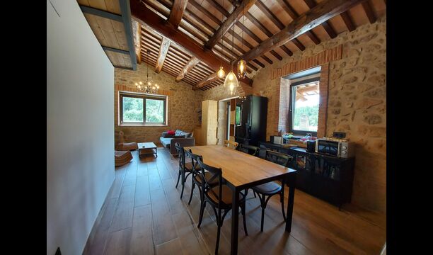 Molina Petita Pobia is a spacious place for a family looking for peace, swimming pool, and spacious surroundings. The big property around the little mill is ideal for playing for instance football or badminton. It is also dog friendly, as the entire property is fenced, so your dog can also enjoy life and you will not have to worry that it escapes on an adventure.