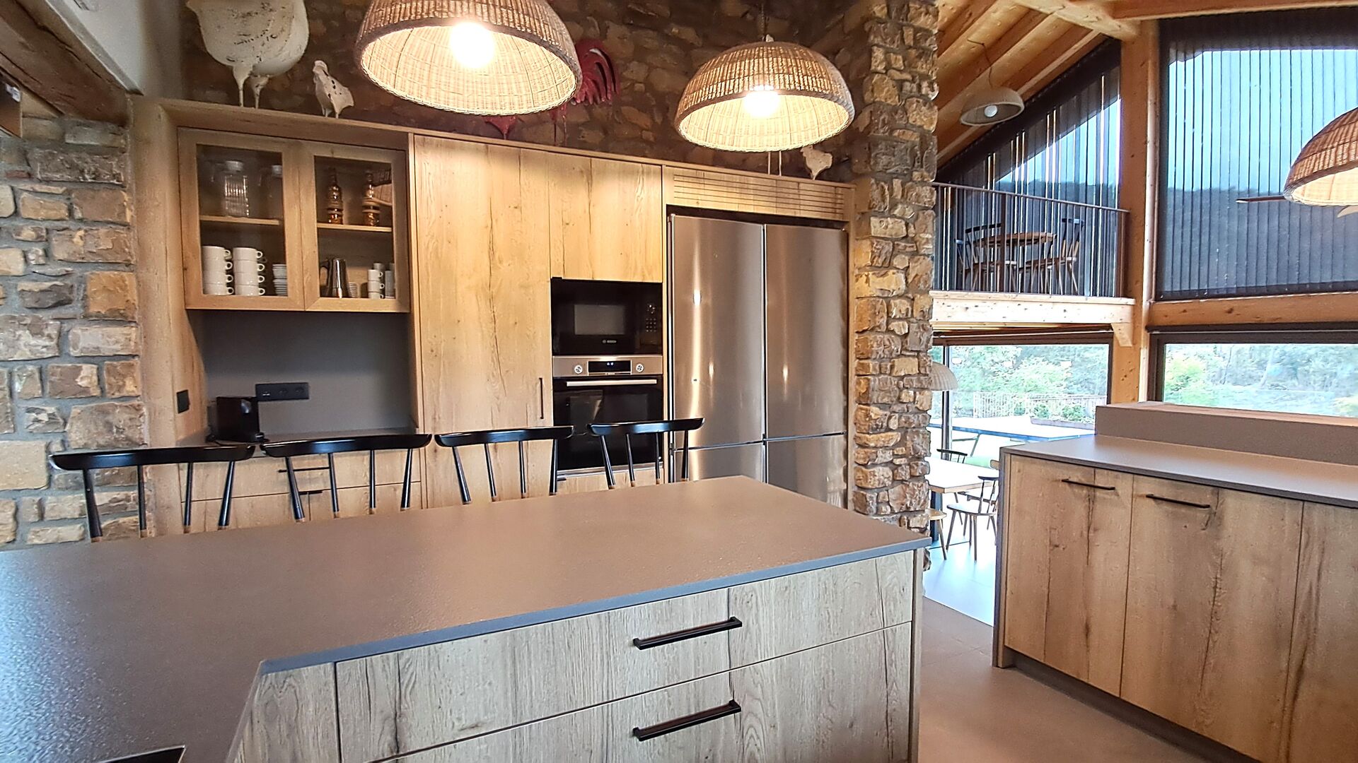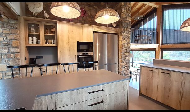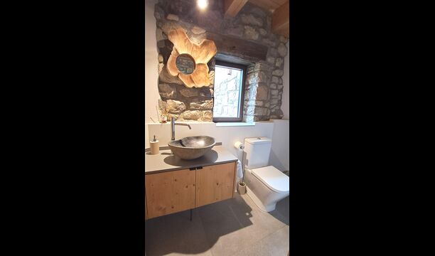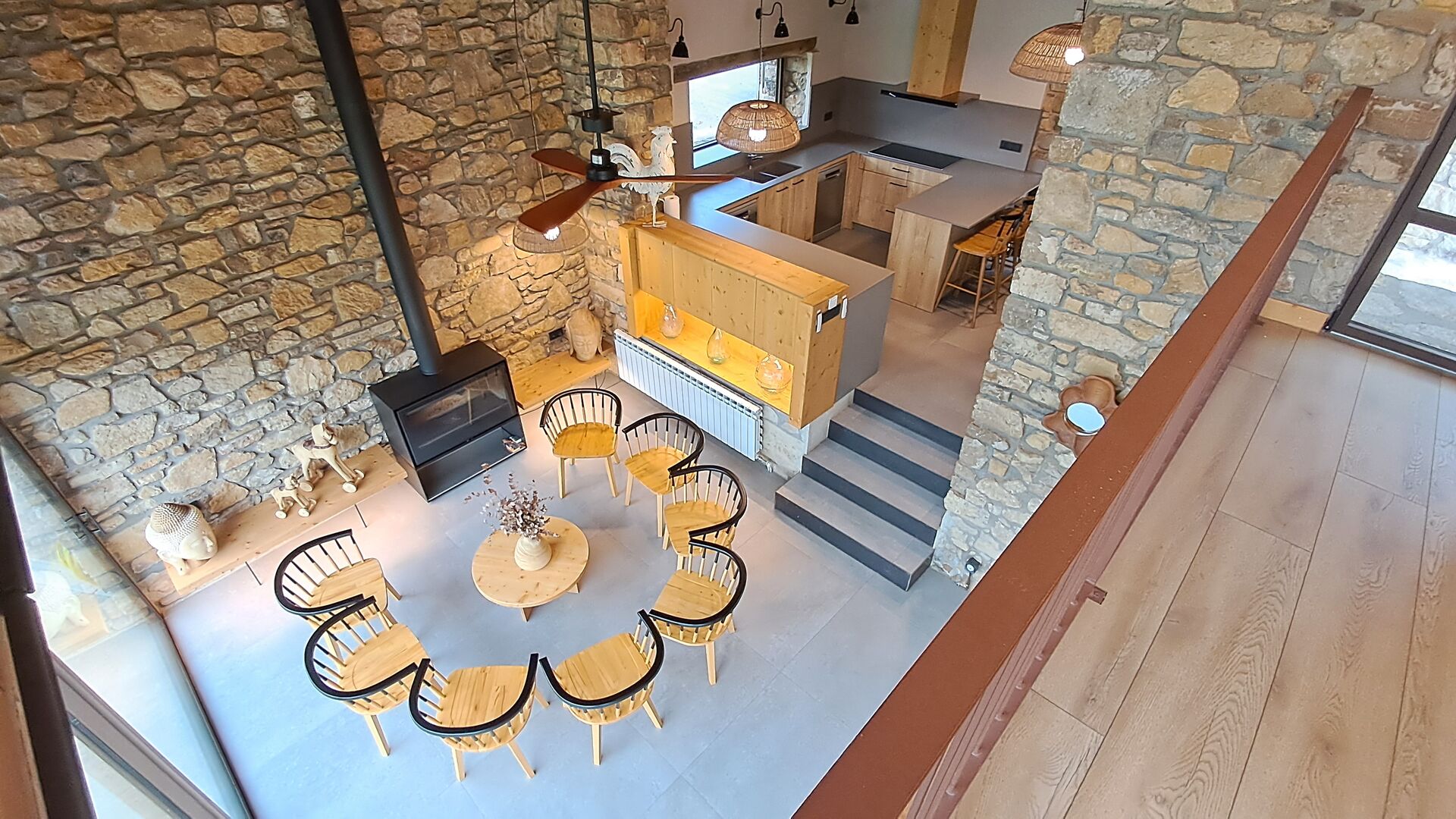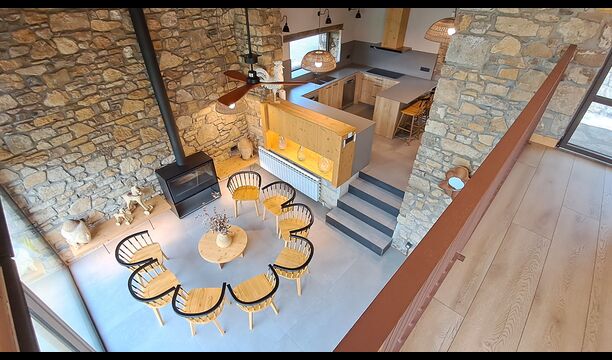 With capacity for up to 22 guests, the property features 9 spacious bedrooms, each with its own private bathroom, including a family suite that adds up to a total of 10 welcoming rooms. Warm wood tones, carefully selected natural materials, and refined details create an atmosphere that feels both elegant and homely.