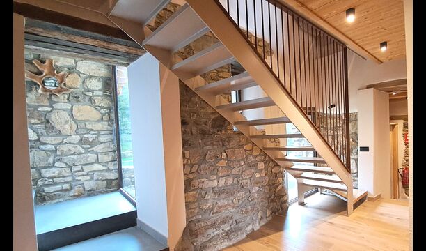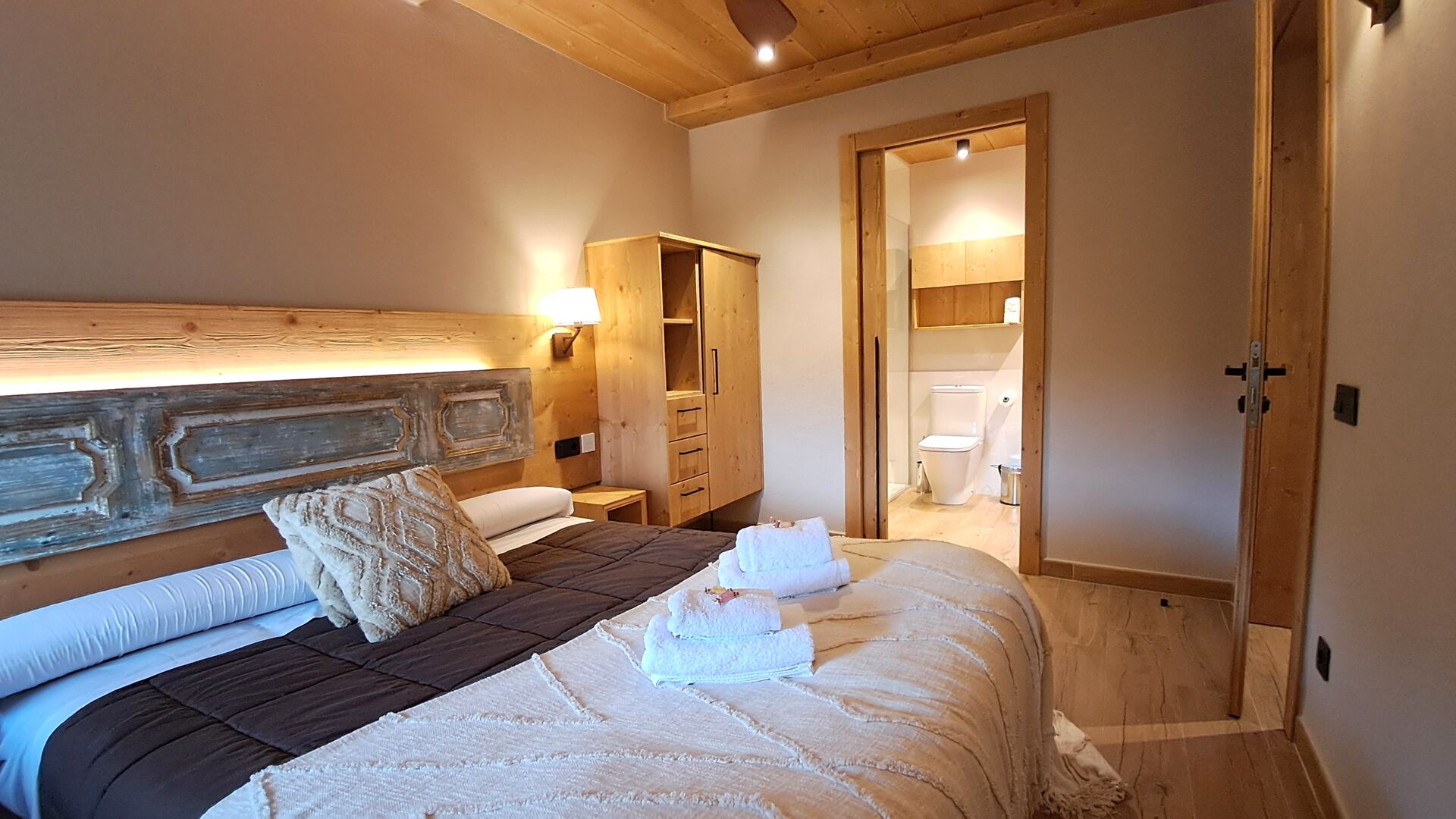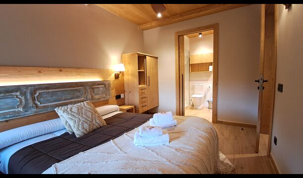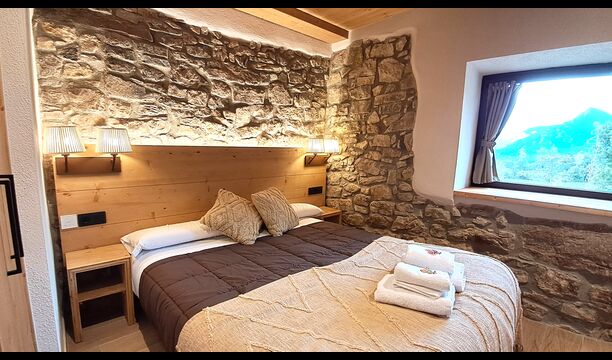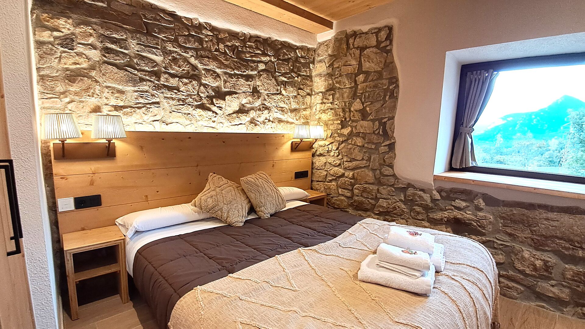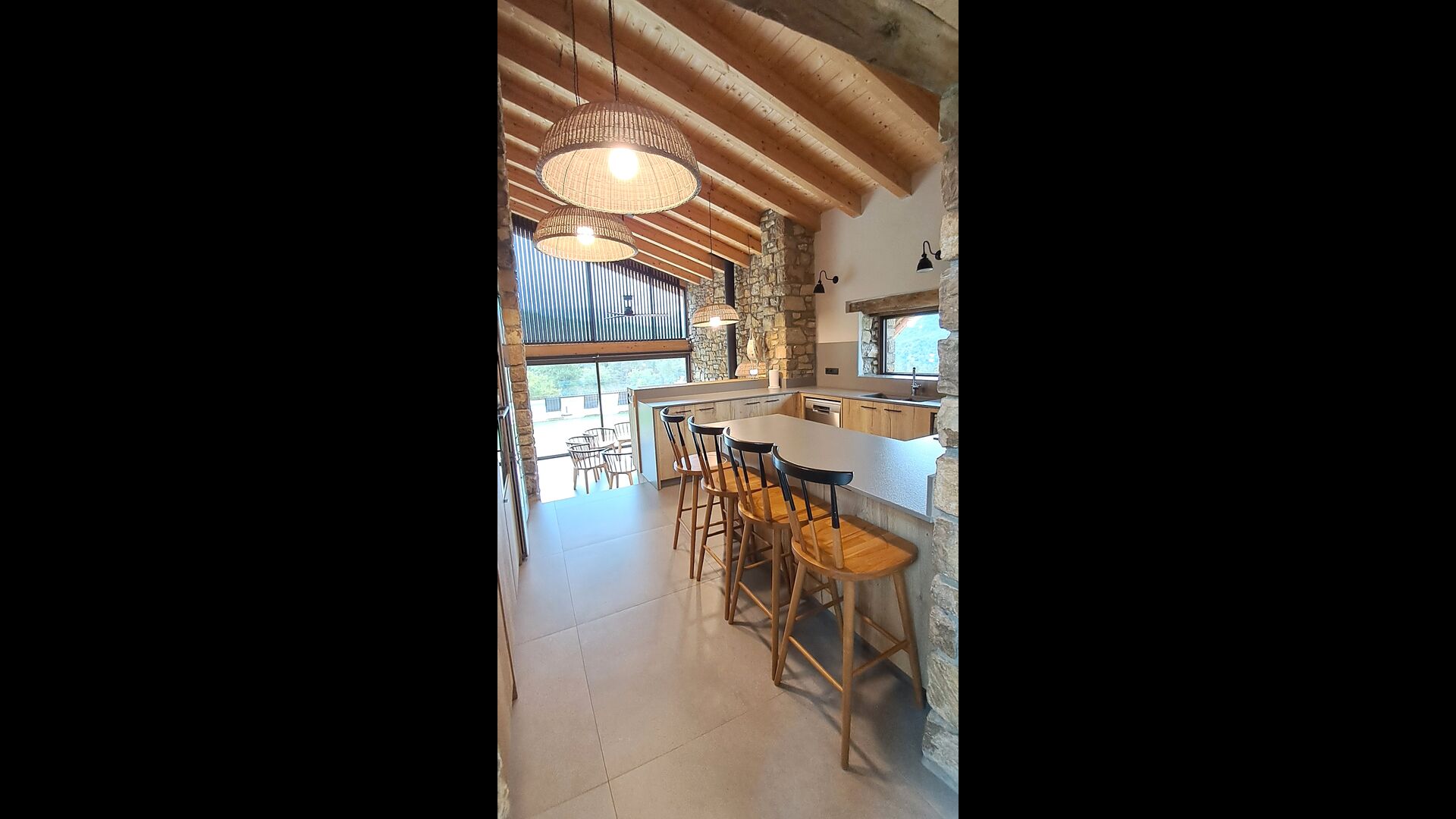 The private swimming pool and spacious garden offer unobstructed mountain views, while the barbecue area and sunlit terraces make it easy to savor every moment in the fresh mountain air. In winter, the experience becomes magical with the outdoor jacuzzi, where up to eight guests can relax while admiring the snow-covered peaks of the Pyrenees.