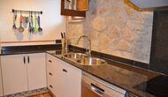 Behind the dining table, there is a well-equipped kitchen: Here you have many facilities that include oven, dishwasher, washing machine, and microwave oven. The kitchen is new and modern and there is nothing stopping you from cooking a great meal.