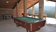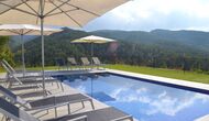 The house is constructed on a hillside, and the fenced pool area is situated above the house, to benefit maximum from the stunning view. Attached to the house, there is a covered terrace with barbecue, and above the terrace, the game area.