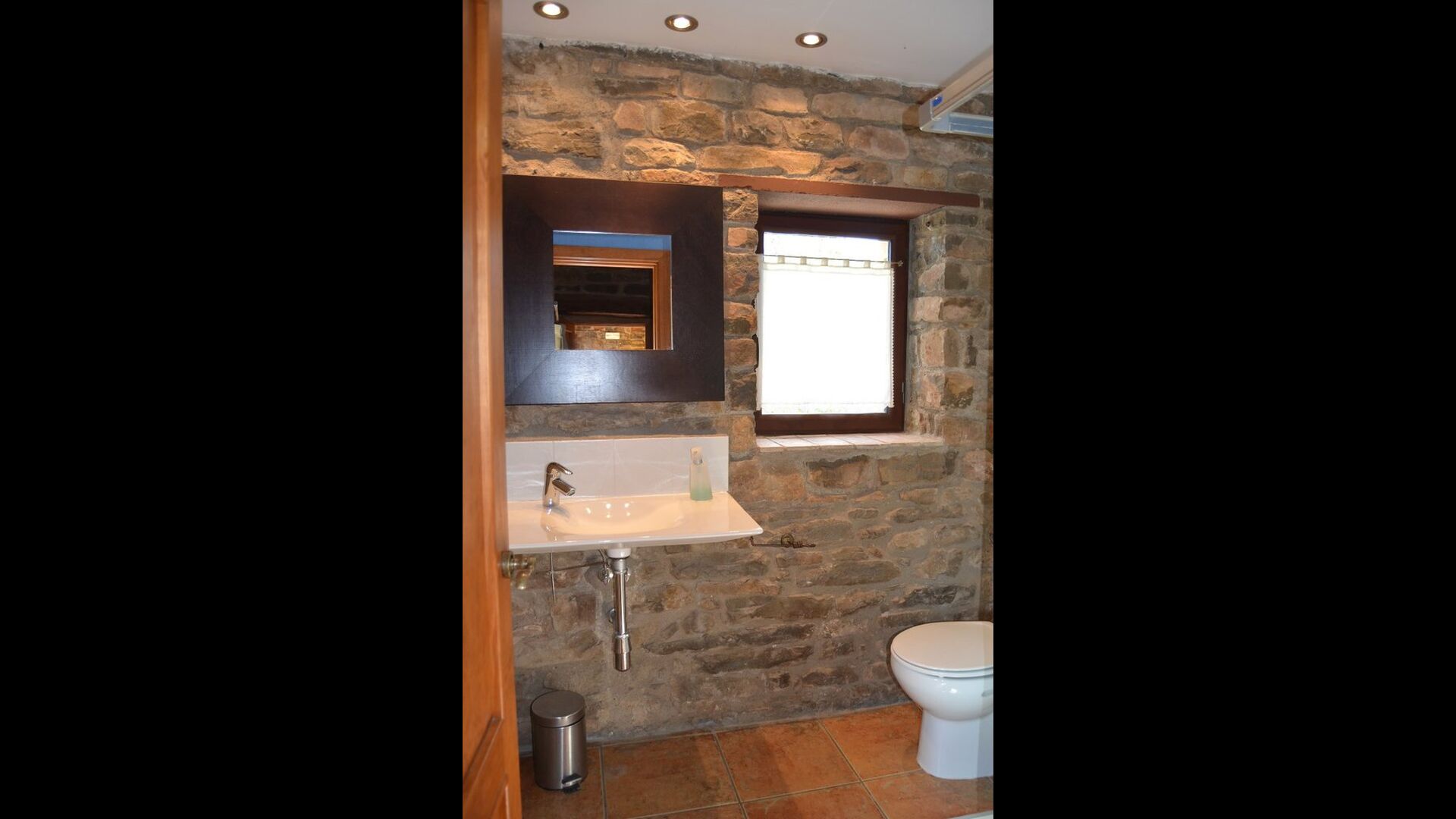 When you enter the ground floor of the house, you find a beautifully reformed holiday home with a lot of atmosphere from the stonewalls and the heavy ceiling planks. The furniture is modern, and there is a large sofa corner with TV and DVD and in connection the large dining room with a long dining table and the modern and very well equipped kitchen with dishwasher, oven, ceramic hotplates, fridge, freezer, microwave and much more. Also in the ground floor, there is a double room and a bathroom adapted for disabled, and a triple room.