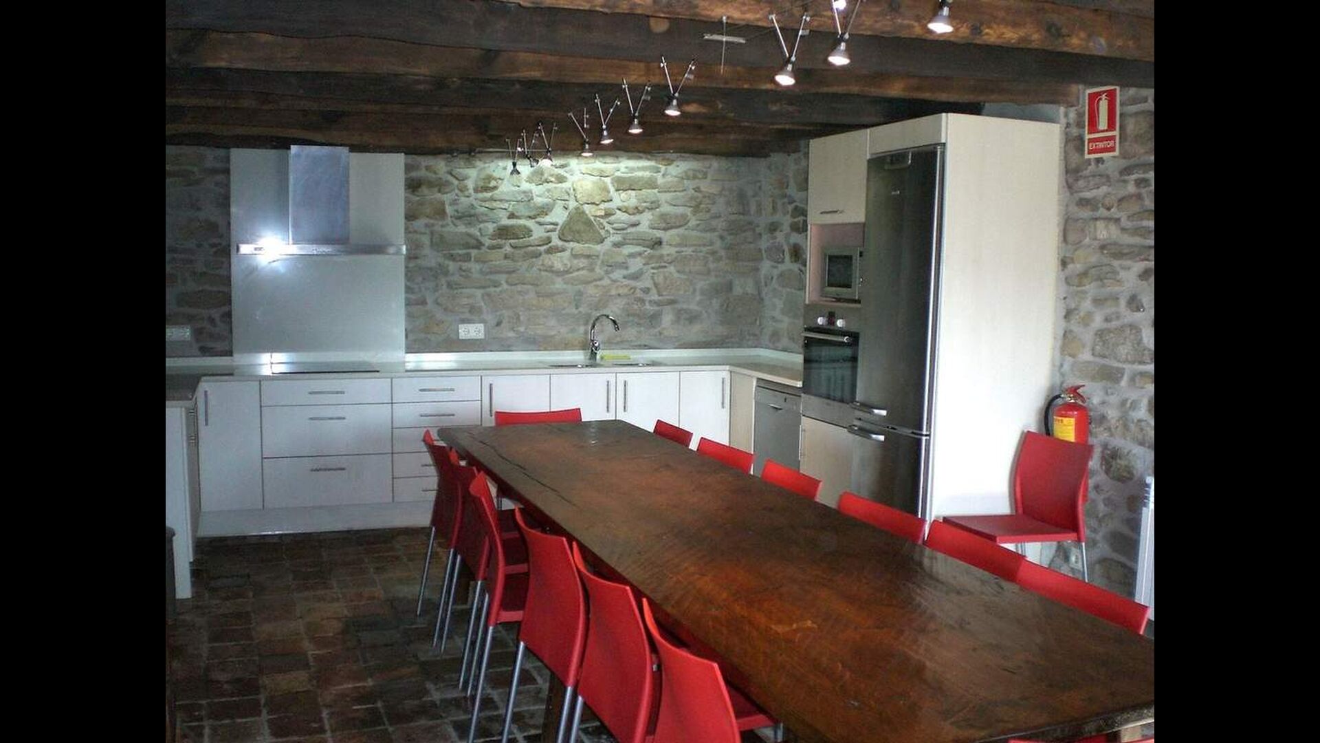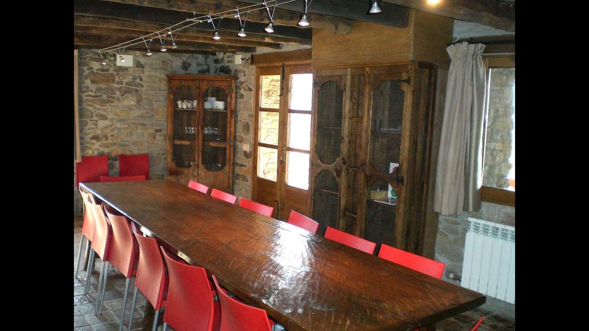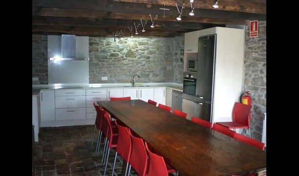 Casa Ferrera blends traditional Catalan architecture with modern conveniences. The ground floor offers a warm and inviting living room with fireplace and TV, a generous dining area perfect for long shared meals, and a fully equipped kitchen designed to comfortably accommodate groups. A bathroom with washing machine adds extra practicality for longer stays.