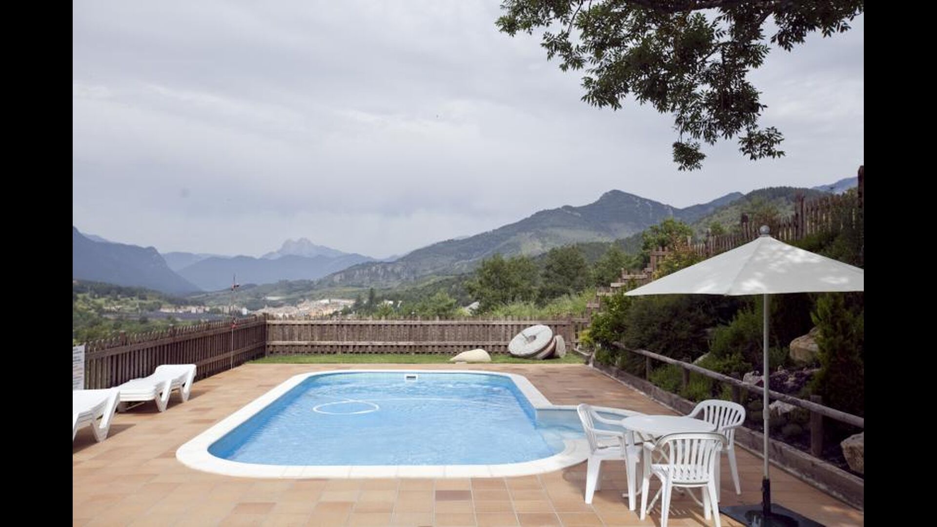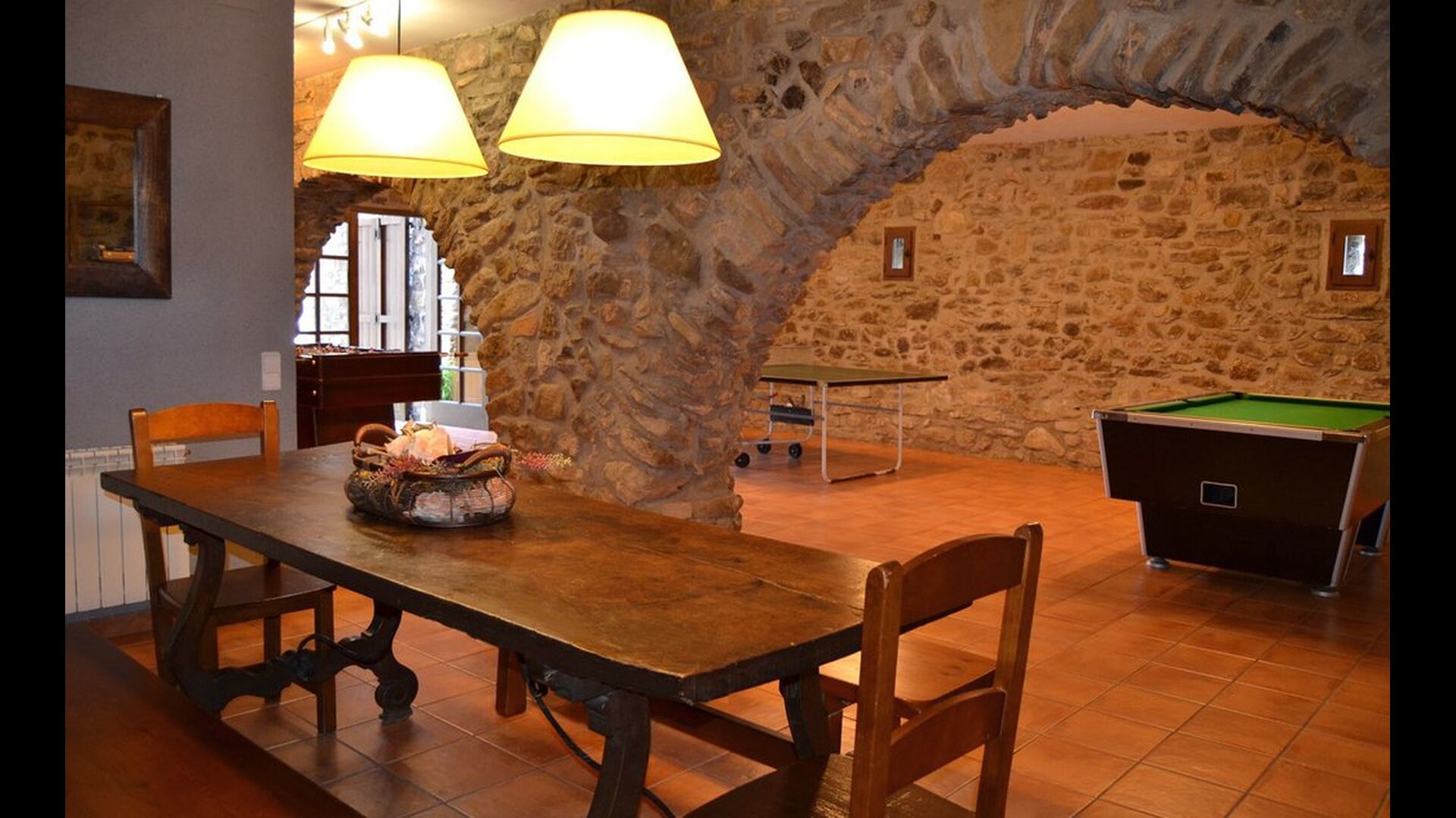 Outside, the cosy court yard between the house and the second building, at the moment unused, has been utilized to make an outdoor terrace with barbecue, which is usually the preferred location in the warm Catalan evenings. Also, there is access to the pool-area with the swimming pool of 8 x 4 meters and with sunloungers where you can relax in the sun and enjoy the mountain view. The house is perfect for families with small children, as the pool area is fenced and the swimming pool has roman steps, so the smallest can enter themselves, little by little.