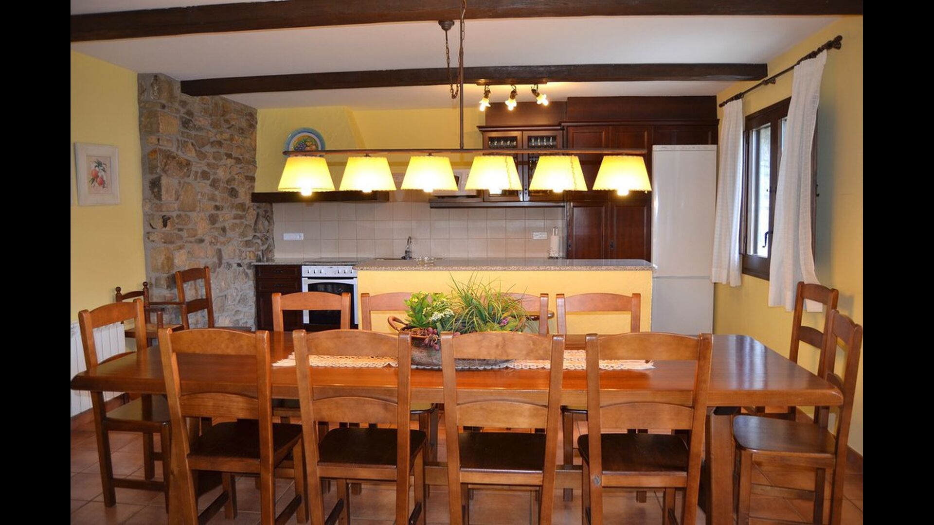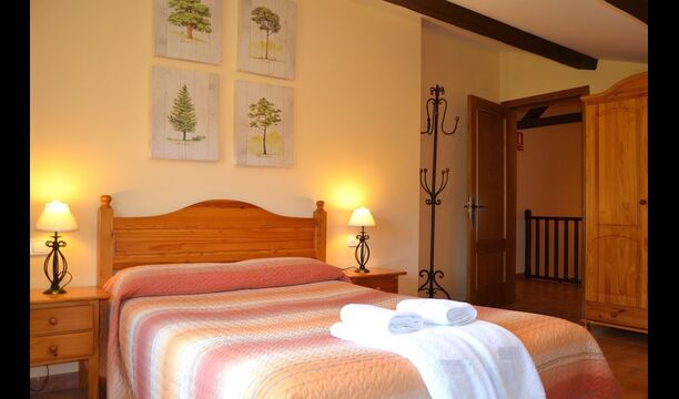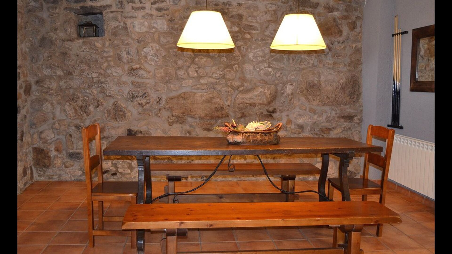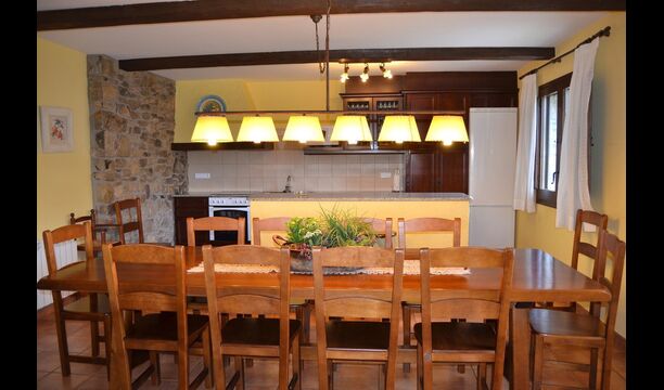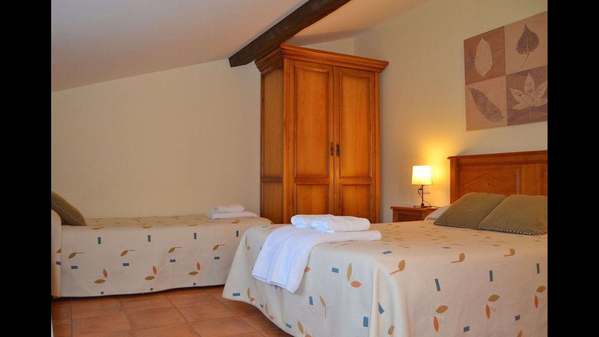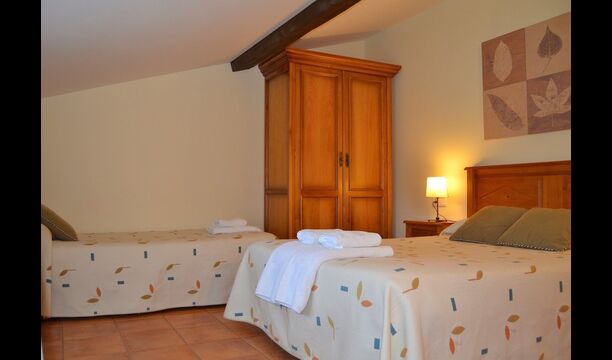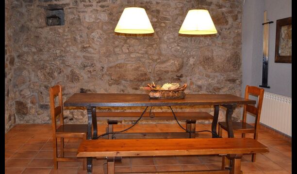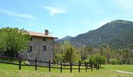 Located 2.5 kilometres from the village, surrounded by a magnificent landscape of forests and meadows, in an area that invites you to take part in nature activities or just relax in the beauty of the countryside. The three hundred square-metre farmhouse is completely built of stone and is divided into three floors. The furniture is rustic in style, while being comfortable, hardwearing and practical. Antique pieces combined with modern rustic style.