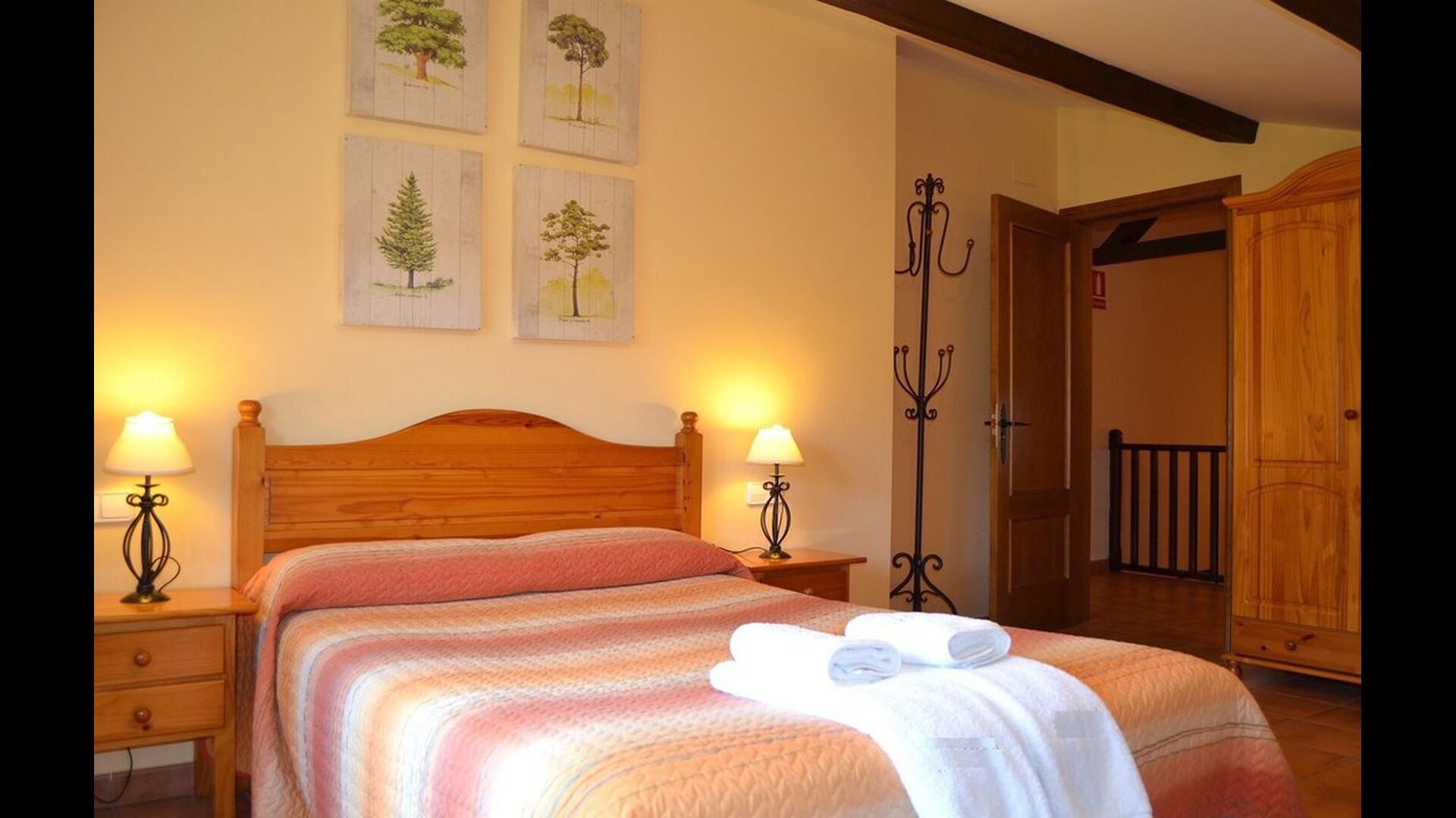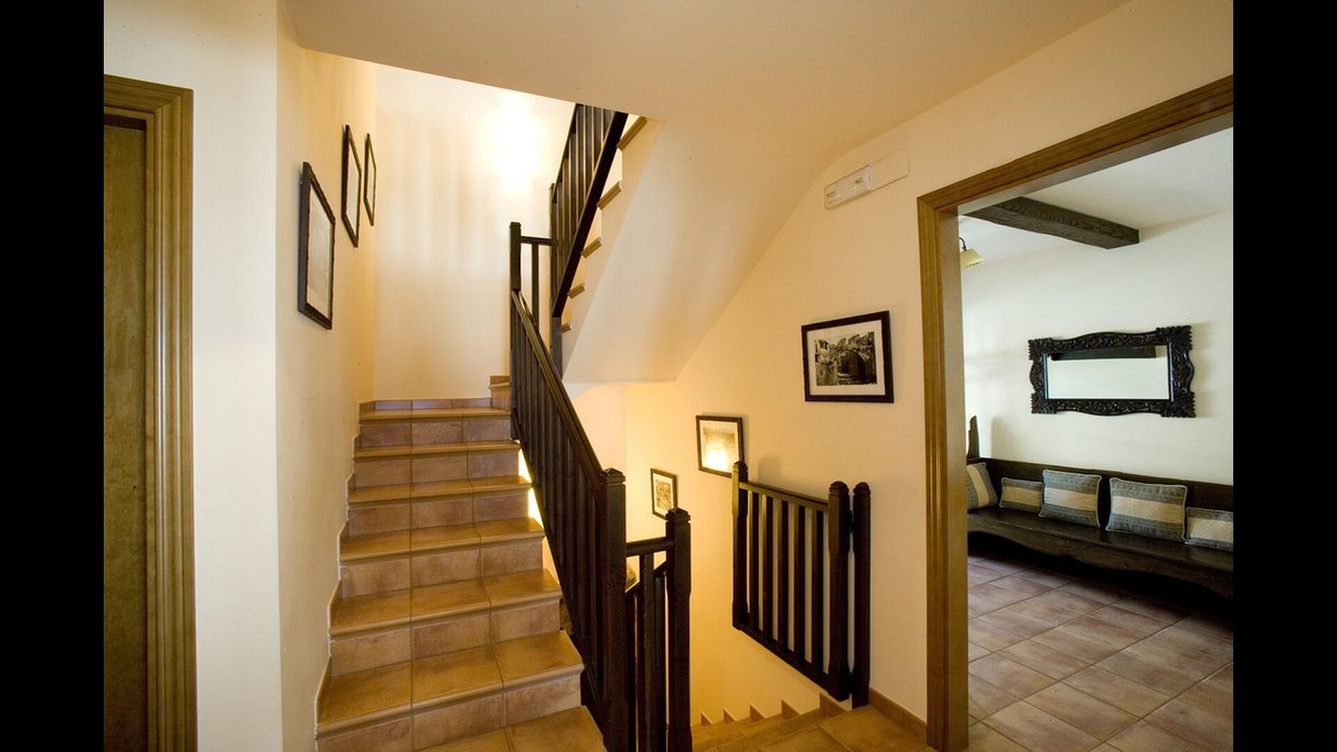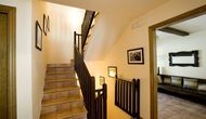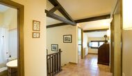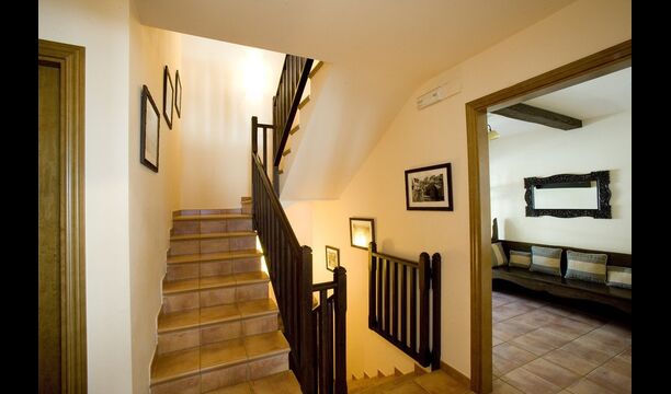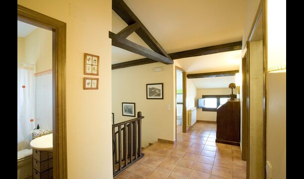 The upper floor is the rest area. It has a double room with 2 single beds and three triple rooms, two with 1 double bed and 1 single bed and one with 3 single beds. All are furnished with modern rustic-style furniture and comfortable beds. There are two bathrooms, one with shower and one with a bath tub.