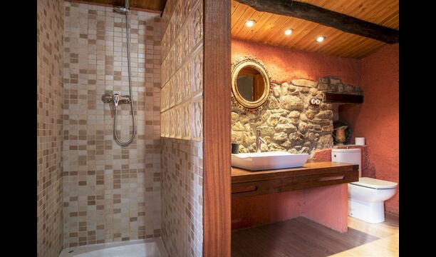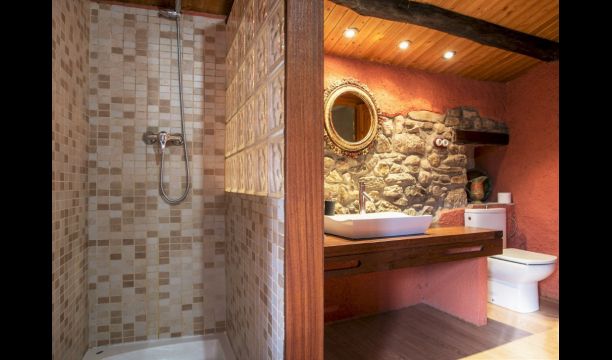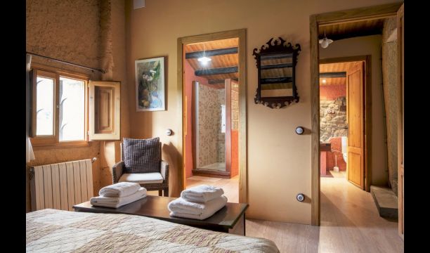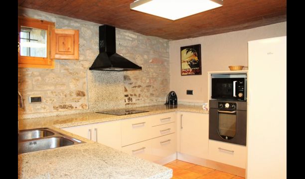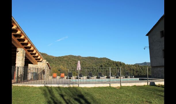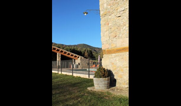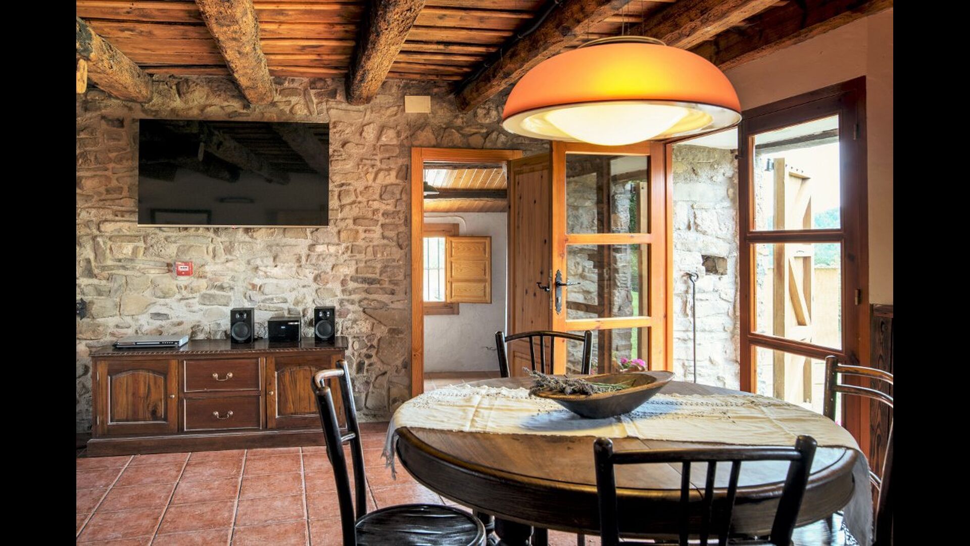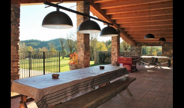In the holiday home, you live beautifully situated atop a small hill, so from the property you have many views of the surrounding forested areas. To the north, the majestic Pyrenees rise. Here, you are at some distance from the typical mass tourism and the typical bustle that usually follows with it. However, there is only 4 km to Borreda, which is a small cosy town, where you can find grocery shops and restaurants.