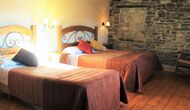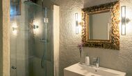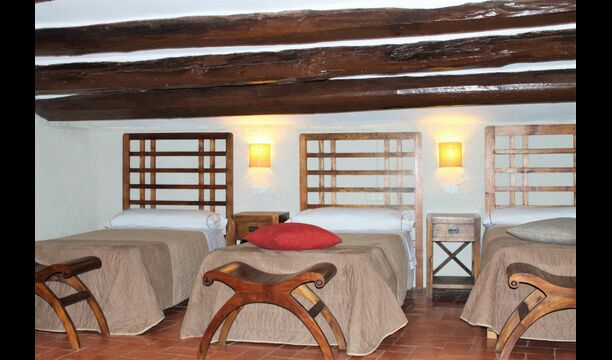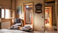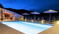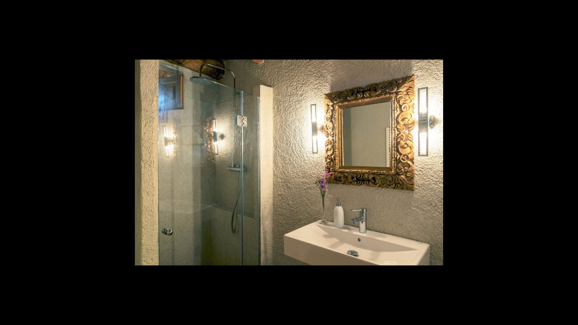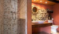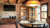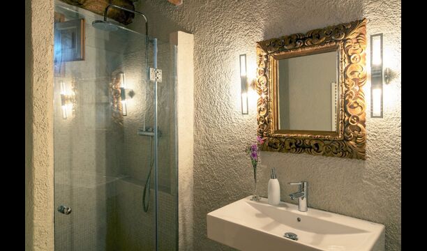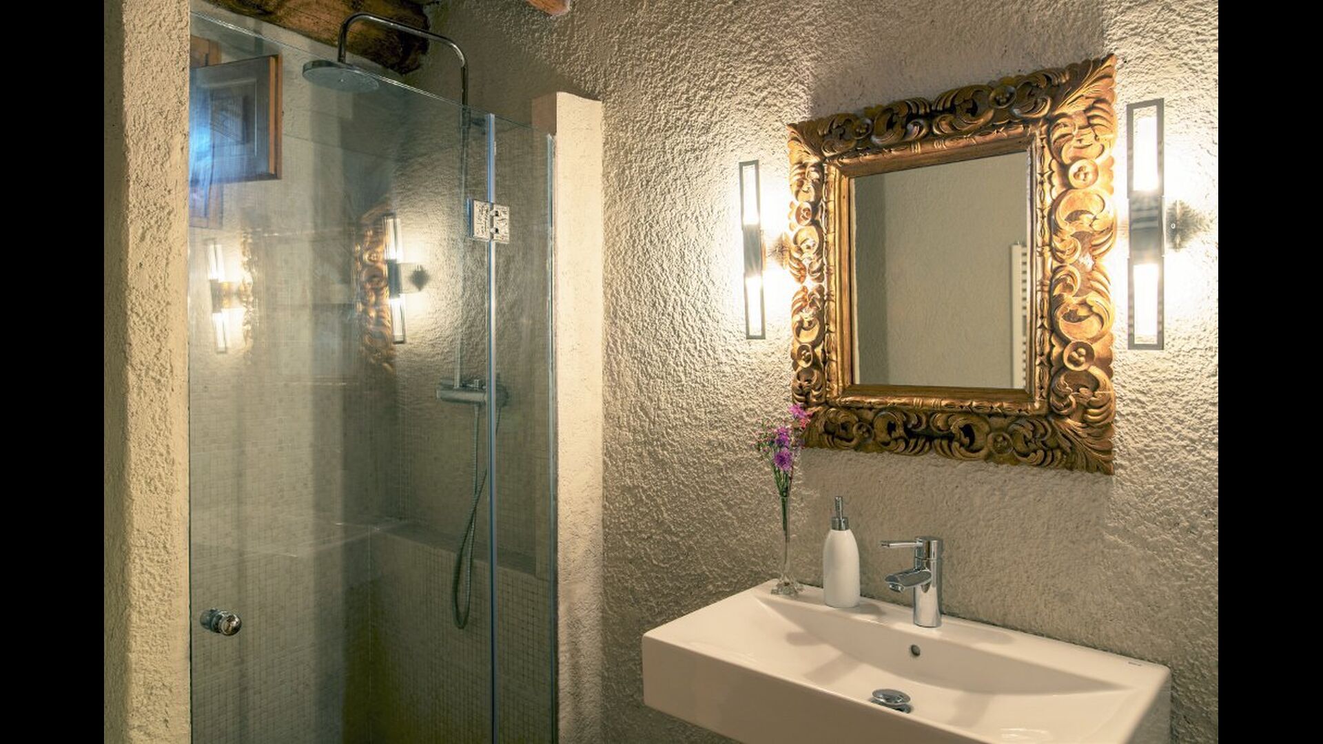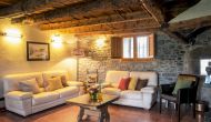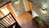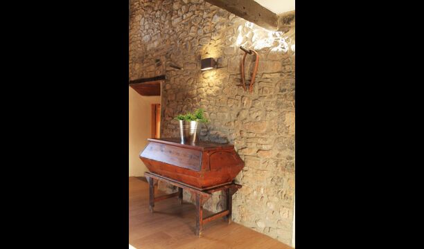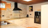 When you enter through the main door, there is a cosy living room with leather sofa, sitting area and large flat-screen TV. There are beautiful stone walls and beamed ceiling. Next to this, there is a well equipped kitchen with two refrigerators, large freezer, microwave, oven, coffee machine, dishwasher and much more. Connected to the kitchen, there is a cosy dining room with a nice table carved from one piece of wood and direct access to the garden