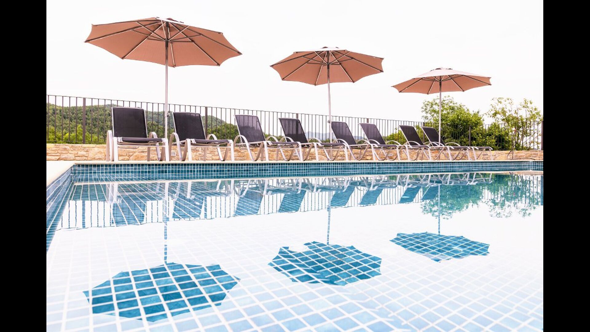 The pool area is great. The swimming pool has a width of 4 meters and a length of 9 meters and there are stairs into the water, which makes it easy for all age groups to enjoy the cooling water. There are plenty of sun loungers and parasols, so you are able to keep an eye on the young children in the pool while you relax. The pool is also fenced for safety reasons.