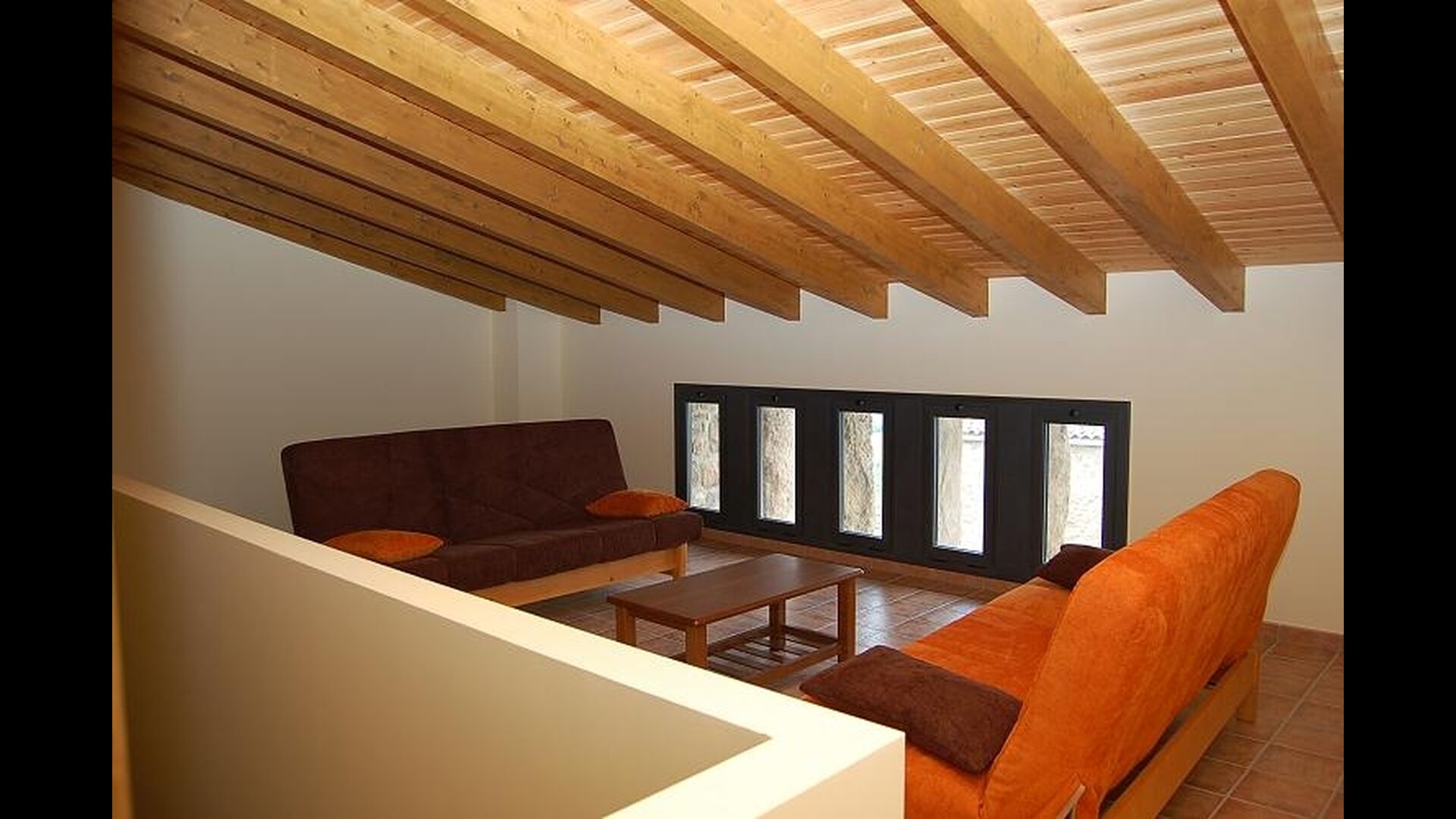 The bedrooms are located on the two top floors. On the second floor you will find two of the bedrooms which both have ensuite bathrooms. On the third floor you will find the remaining two bedrooms which share a bathroom. There is also an extra common area with two sofa beds on the third floor.