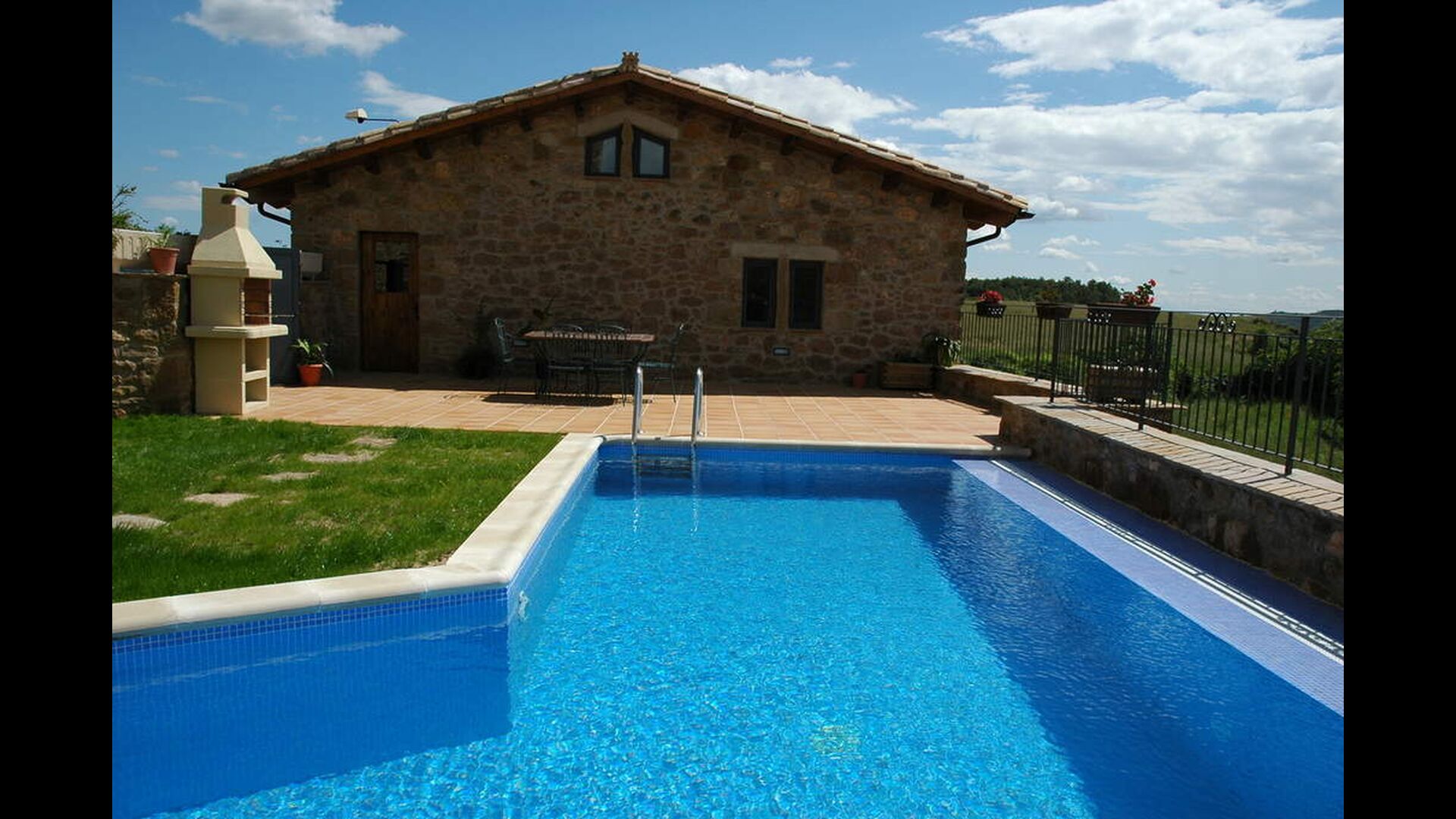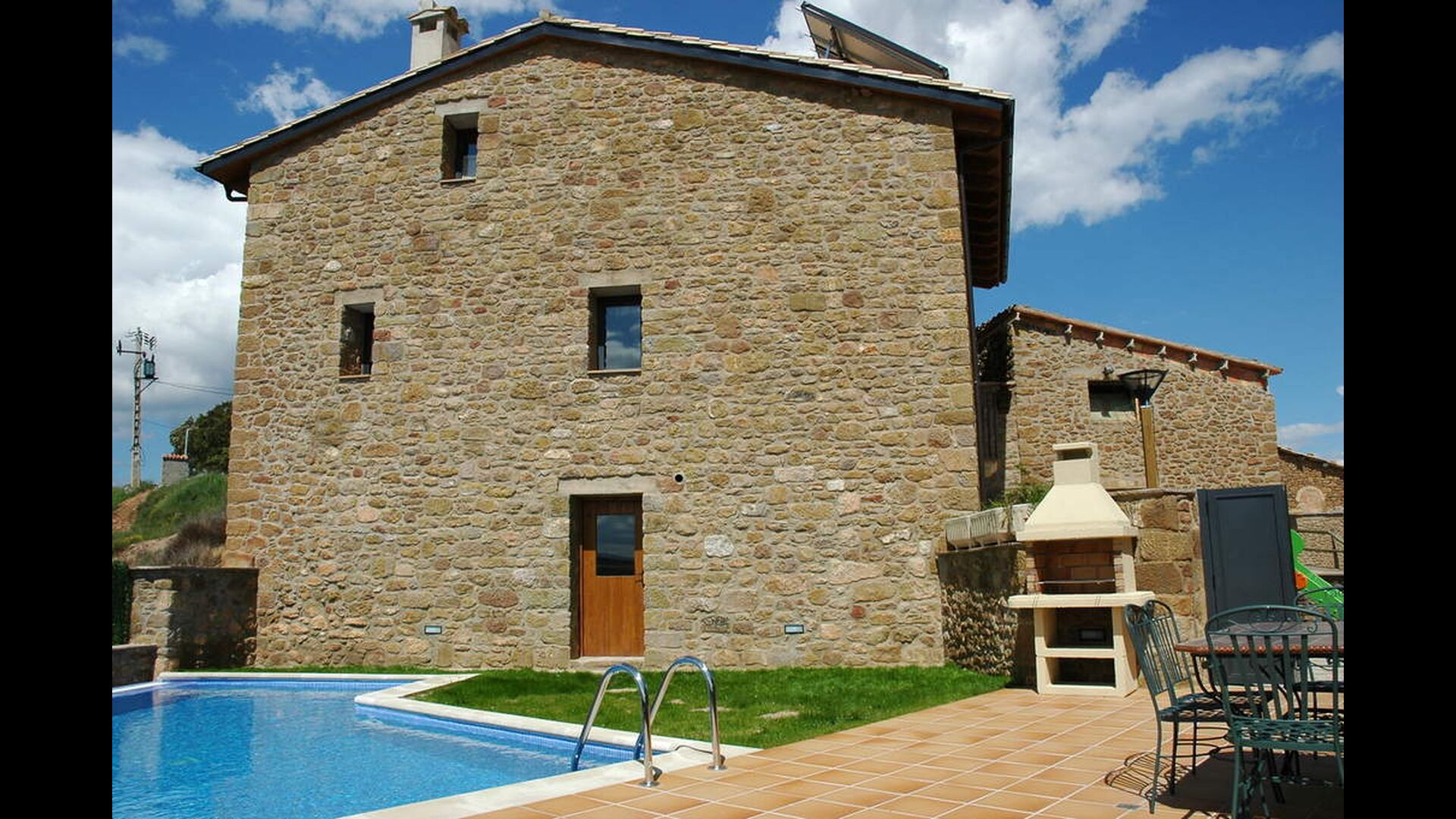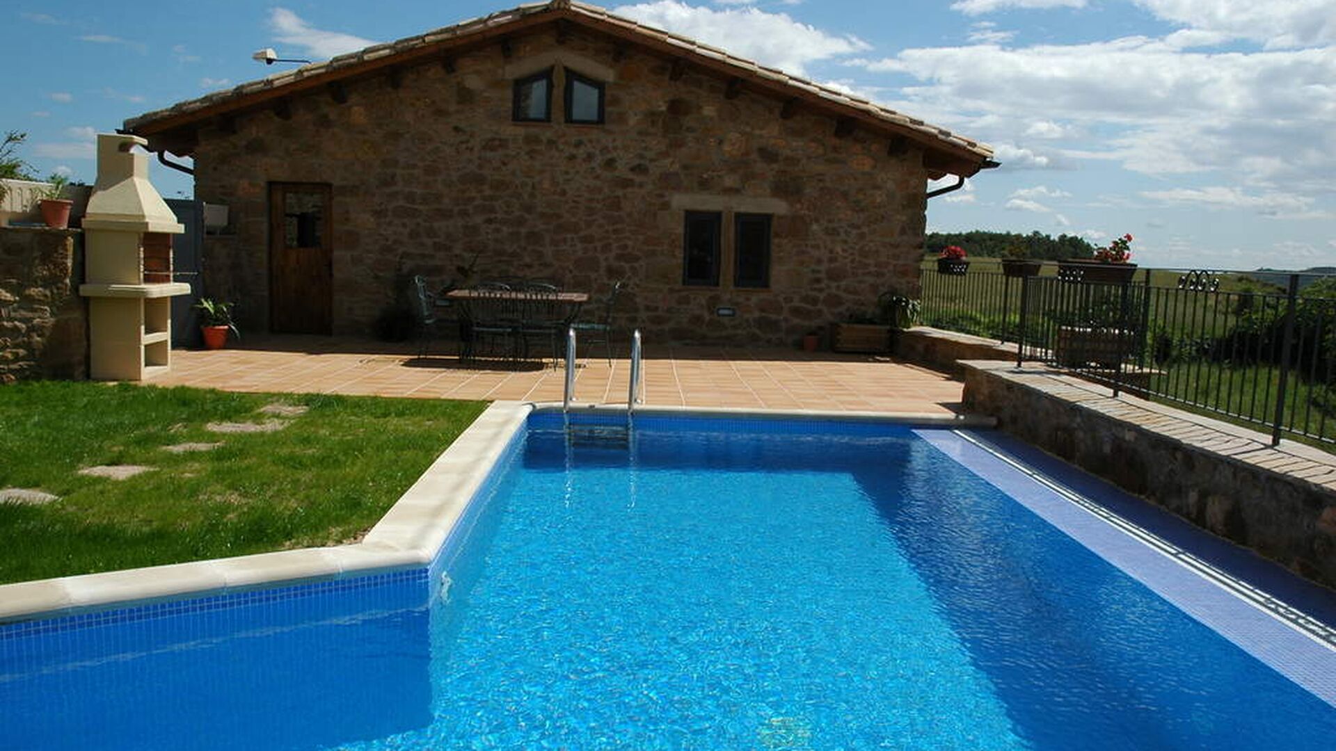 Casa Megar's outdoor facilities are very nice and include a small garden-terrace with a the most important feature: the swimming pool! The terrace has an excellent view over the landscape and is perfect for outside dining during the warm Catalan summers. There is also a barbecue where you can cook delicious meals. For the young children there is also a playground and table tennis.