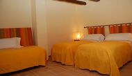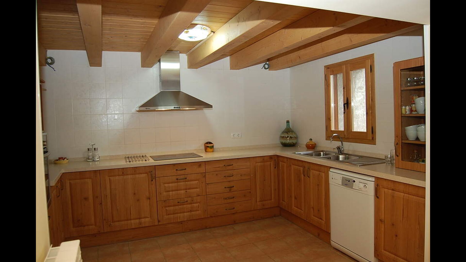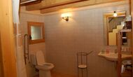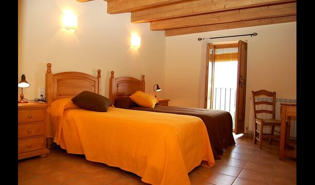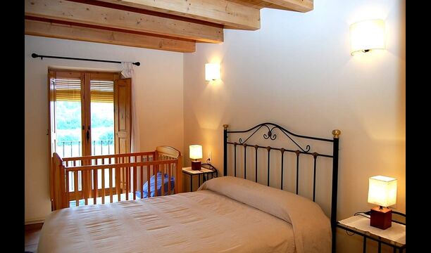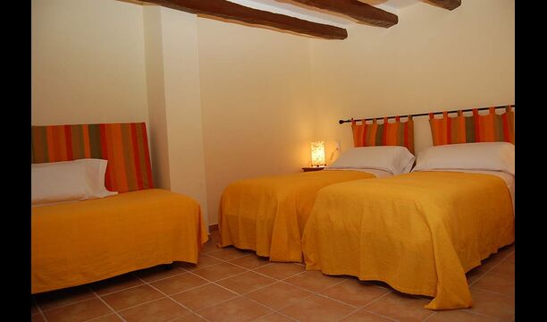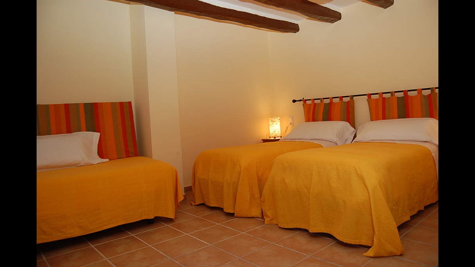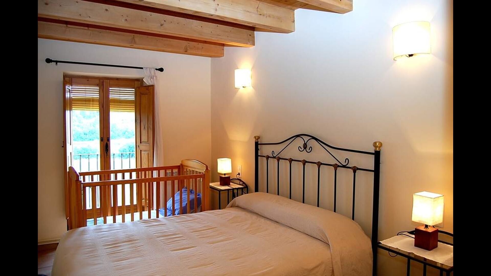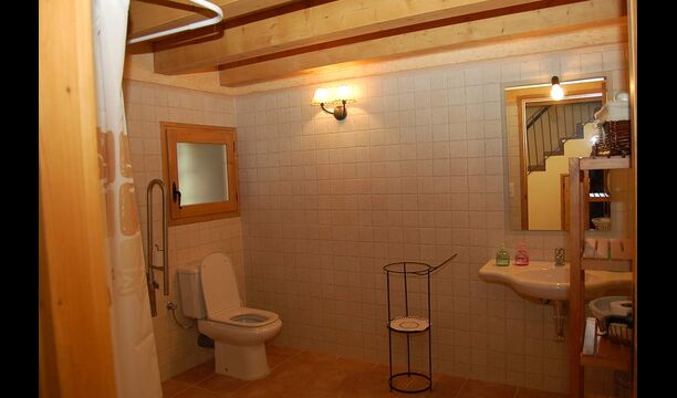 From this floor you have access to two different areas. One of these takes us to the rooms which traditionally were used to have the animals and nowadays are used for leaving our mountain bikes. From here you can go straight to the swimming pool and to the outside courtyard. The other takes us to the first floor where we can find five big, comfortable double bedrooms and three fully equipped toilets.