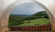 The property is structured in three levels. Entering the house from the garden, you will find a big living room area with armchairs and sofas, a wonderful fireplace and a dining room. Next to this through another room with another fireplace, you will access the kitchen and a terrace with a big arch from where you can observe and enjoy the impressive views over the valley. On this floor you will find a double room and a renovated toilet for disabled people.