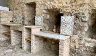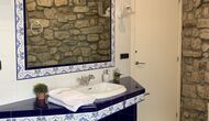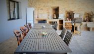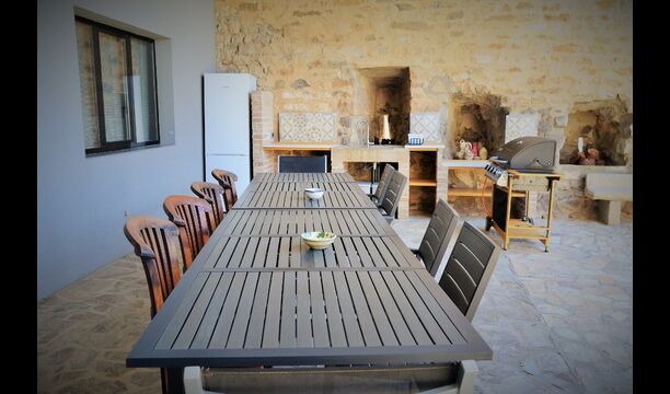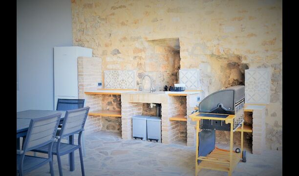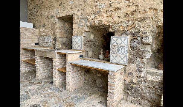 The pool area is very well designed: It has a courtyard, surrounded by the original ring wall with the pool of 40 m2 centrally located. In addition, there are two covered terrace areas by the pool area. One of them has an outdoor kitchen with refrigerator, sink, utensils and gas grill. This is very nice when you want to enjoy the warm evening sun. The second area is dedicated to relaxation. Here, you can enjoy the shade in the chill-out area’s comfortable seating furniture when the sun is high in the sky. You can of course also cool off in the pool - something that the children probably will enjoy very much. There is also a bathroom with a shower in the same level as the pool area.