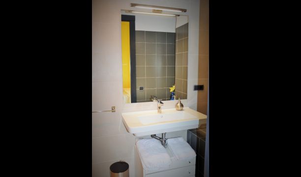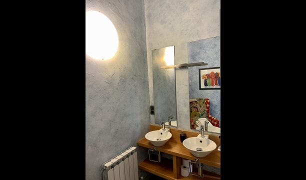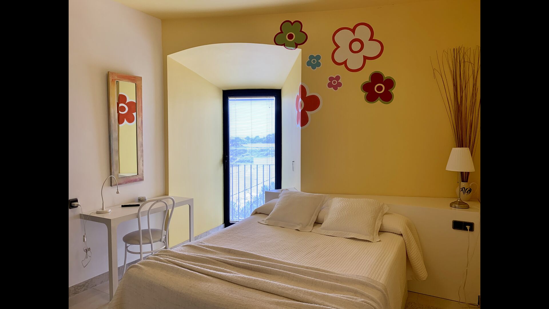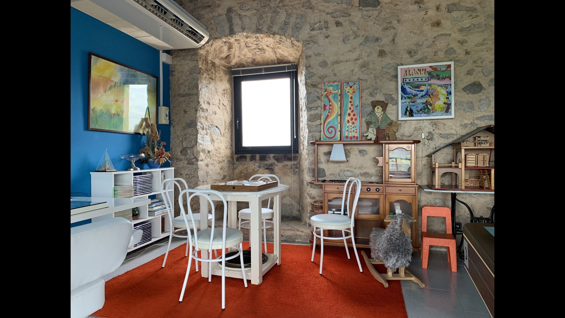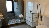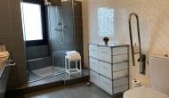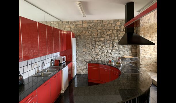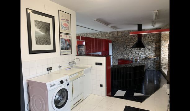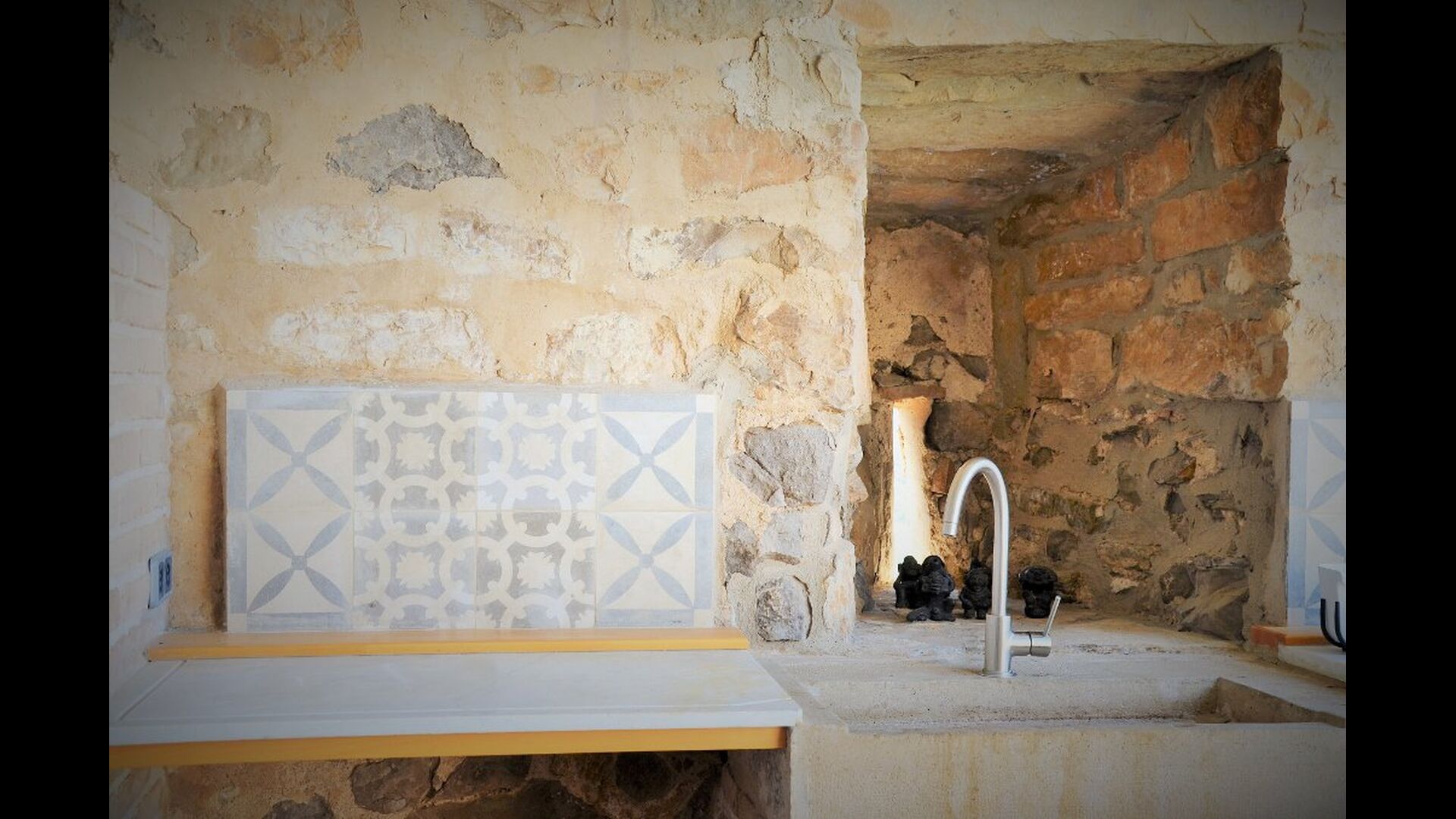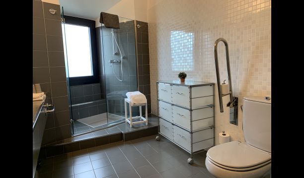 On the first floor, there is a spacious and prettily designed kitchen. It is fully equipped, so you can easily prepare meals at home. Furthermore, there is a lift up to the first floor, which is convenient when you have shopped groceries or when you arrive with suitcases. In addition, you can also buy wine and cava from the wine fields in the area.